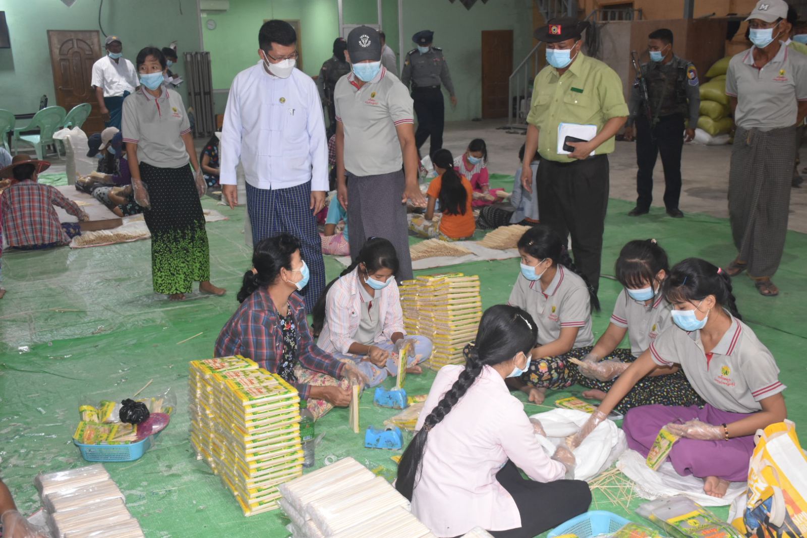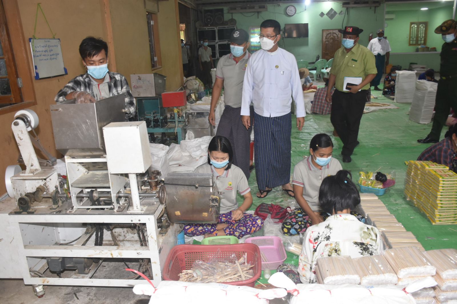 ထို့နောက် ငါးသိုင်းချောင်းမြို့ရှိ ဝင်းဧရာဝါးတူစက်ရုံနှင့် Aung Family သင်၊ ကြိမ်၊ ဝါး၊ ဗေဒါရိုး လက်မှုပစ္စည်းအရောင်းဆိုင်နှင့် ရေကြည်မြို့ရှိ ဒေါ်အေးနံ့သာ ကြိမ်အချောထည်လုပ်ငန်းများသို့သွားရောက်၍ ဝါးတူထုတ်လုပ်မှုအဆင့်ဆင့်နှင့် ဖြန့်ဖြူးရောင်းချနေမှု၊ သင်၊ ကြိမ်၊ ဝါး၊ ဗေဒါရိုးတို့ဖြင့်ပြုလုပ်သည့် ဖိနပ်၊ လက်ကိုင်အိတ်အမျိုးမျိုး၊ ခမောက်၊ ဦးထုတ်၊ခြင်း၊ တစ်ရှုးဘောက်၊ အလှပန်းအိုးထုတ်လုပ်ရောင်းချမှုအခြေအနေများ၊ ကြိမ်ဖြင့် အပူခံပြား၊ တစ်ရှူးဘောက်၊ခြင်း၊ထိုင်ခုံ၊ ပန်းအိုးများပြည်တွင်းပြည်ပဈေးကွက်များသို့ ထုတ်လုပ်ရောင်းချနေမှုများကိုကြည့်ရှုစစ်ဆေးခဲ့ပြီး ဒေသထွက်ကုန်ကြမ်းများအသုံးပြုမှု၊ ဒေသခံပြည်သူများအလုပ်အကိုင်အခွင့်အလမ်းရရှိမှုအခြေအနေများကိုမေးမြန်းခဲ့ပြီး လုပ်ငန်းမျတိုးချဲ့ဆောင်ရွက်နိုင်ရေး၊ လက်မှုပစ္စည်းများ ဆန်းသစ်တီထွင်ဆောင်ရွက်စေရေးမှာကြားခဲ့ပါသည်။