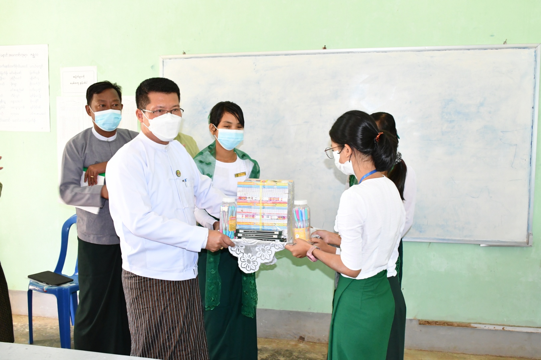 ဆက်လက်၍ တက္ကသိုလ်ဝင်တန်း အောင်ချက်မြင့်မားရေးအတွက် ကျောင်းသား ကျောင်းသူ များကို အချိန်ပိုသင်ကြားပို့ချပေးလျက်ရှိသည့် ဟိုင်းကြီးကျွန်းမြို့ရှိ အခြေခံပညာ အထက်တန်းကျောင်း(စံထူး-စံပြ-အဏ္ဏဝါ) နှင့် အခြေခံပညာအထက်တန်းကျောင်း(ဟိုင်းကြီး)သို့ သွားရောက်၍ ကျောင်းသားကျောင်းသူများနှင့် ဆရာ၊ဆရာမများအား ရင်းရင်းနှီးနှီး တွေ့ဆုံ အားပေးခဲ့ပြီး ကျောင်းသုံးဗလာစာအုပ်များနှင့် စာရေးကိရိယာများ ထောက်ပံ့ပေးအပ်ခဲ့ပါသည်။