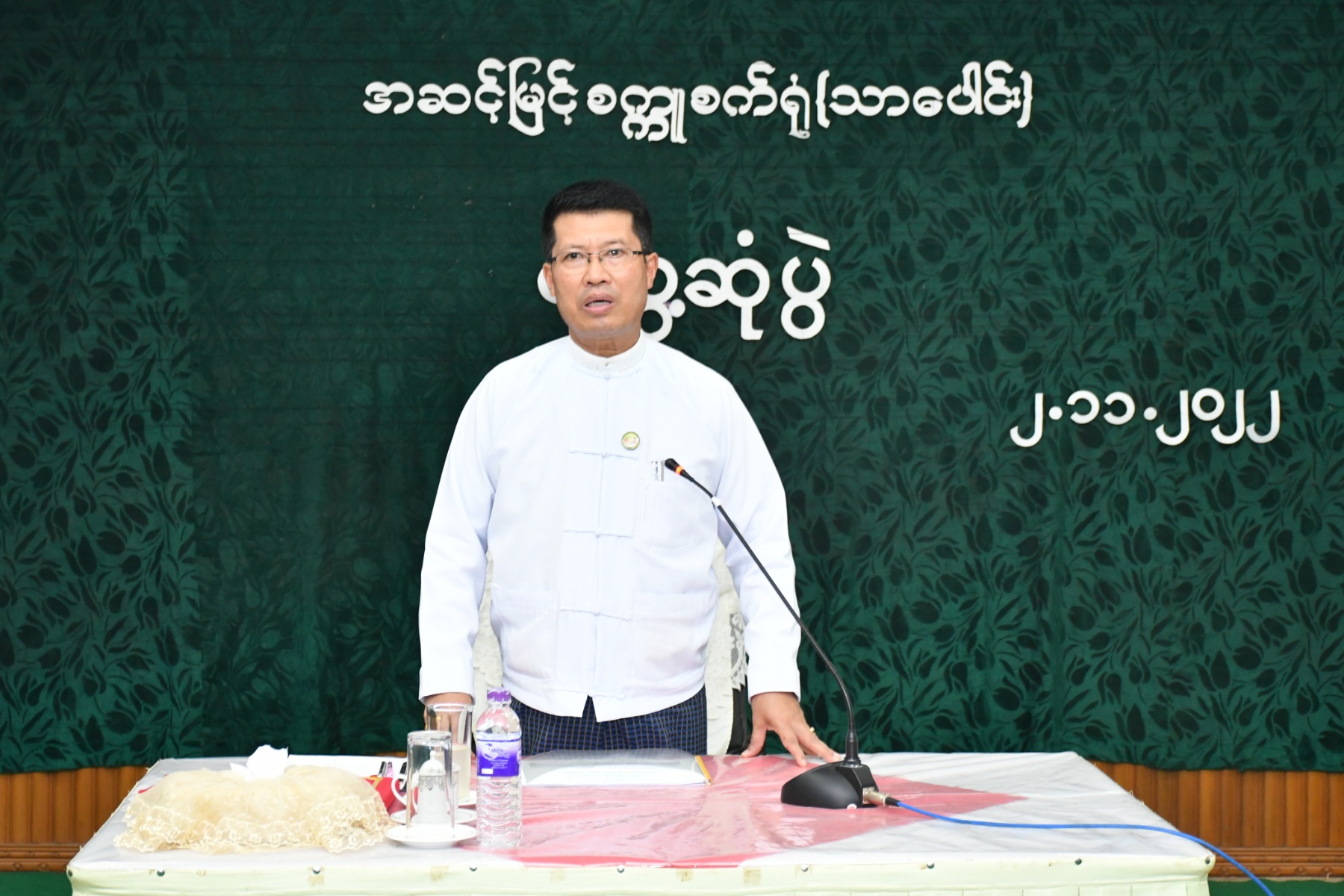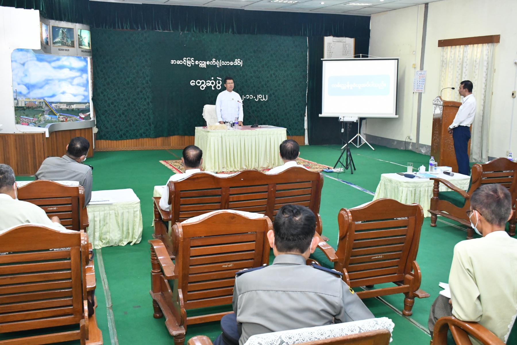ဧရာဝတီတိုင်းဒေသကြီး ဝန်ကြီးချုပ်ဦးတင်မောင်ဝင်းသည် တာဝန်ရှိသူများလိုက်ပါလျှက် နိုဝင်ဘာလ ၂ ရက်နေ့က သာပေါင်းမြို့ အဆင့်မြင့်စက္ကူစက်ရုံ (သာပေါင်း)နှင့် သတင်းစာစက္ကူစက်ရုံ(သာပေါင်း)သို့သွားရောက်၍ စက်ရုံဝန်ထမ်းများနှင့် တွေ့ဆုံခဲ့ရာ စက်ရုံမှူးက စက်ရုံဆိုင်ရာ အချက်အလက်များအား ပါဝါပွိုင့်ဖြင့်ရှင်းလင်း တင်ပြသည်။