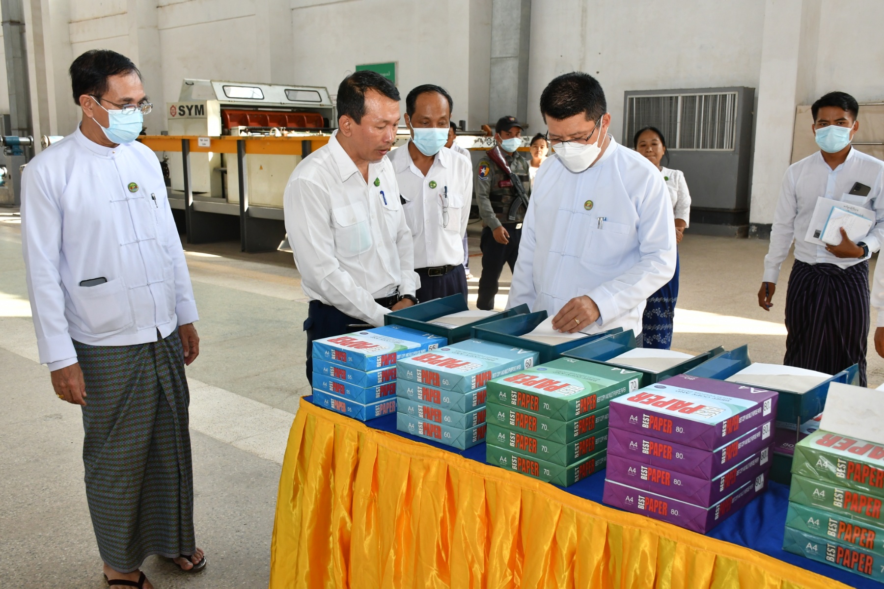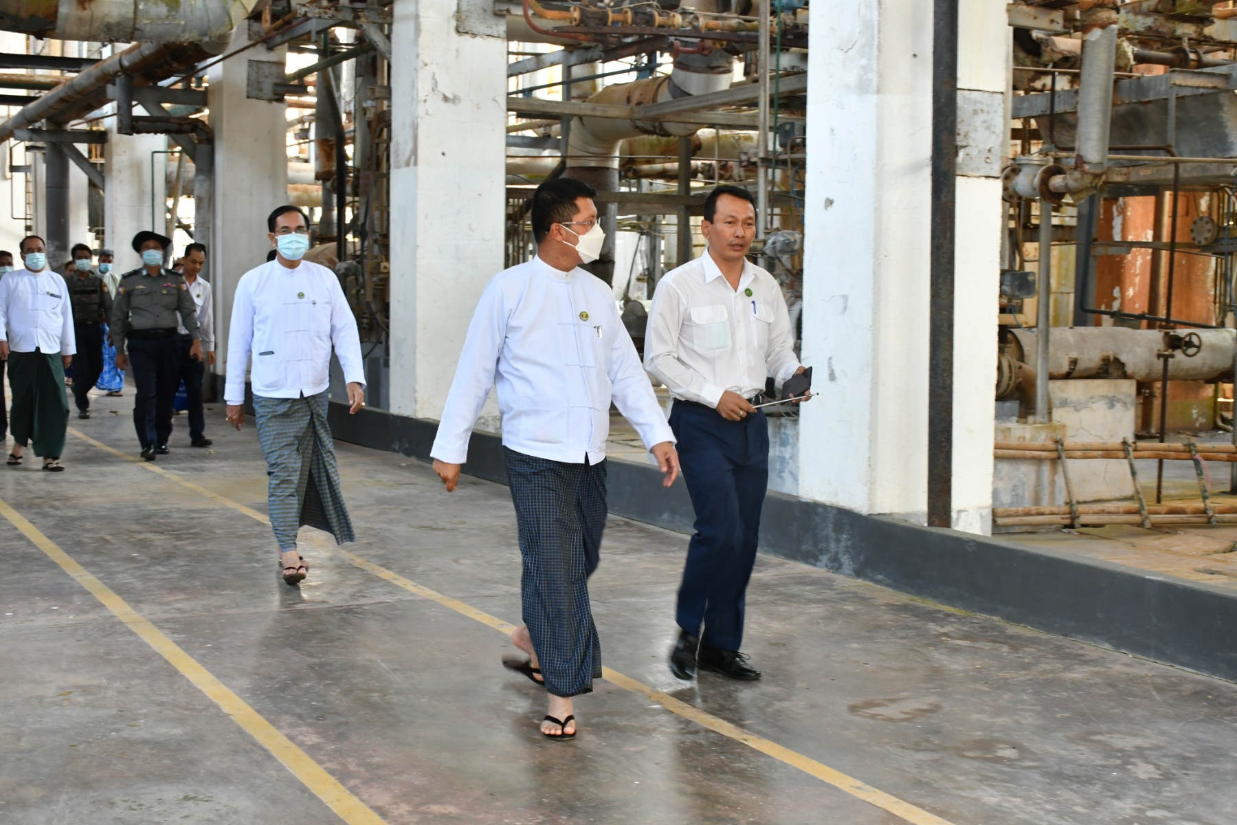 ဆက်လက်၍ တိုင်းဒေသကြီးဝန်ကြီးချုပ်နှင့် တာဝန်ရှိသူများသည် စက္ကူစက်ရုံနှင့် သတင်းစာစက္ကူစက်ရုံသို့ လှည့်လည်ကြည့်ရှုစစ်ဆေးခဲ့ရာ စက်ရုံမှူးက လည်ပတ်မှုအဆင့်ဆင့်နှင့် ထုတ်လုပ်မှုအဆင့်ဆင့်တို့အား လိုက်လံရှင်းလင်းပြသခဲ့ပြီး တိုင်းဒေသကြီးဝန်ကြီးချုပ်မှ လိုအပ်သည်မျာကို လမ်းညွှန်မှာကြားခဲ့ကြောင်း သတင်းရရှိသည်။
