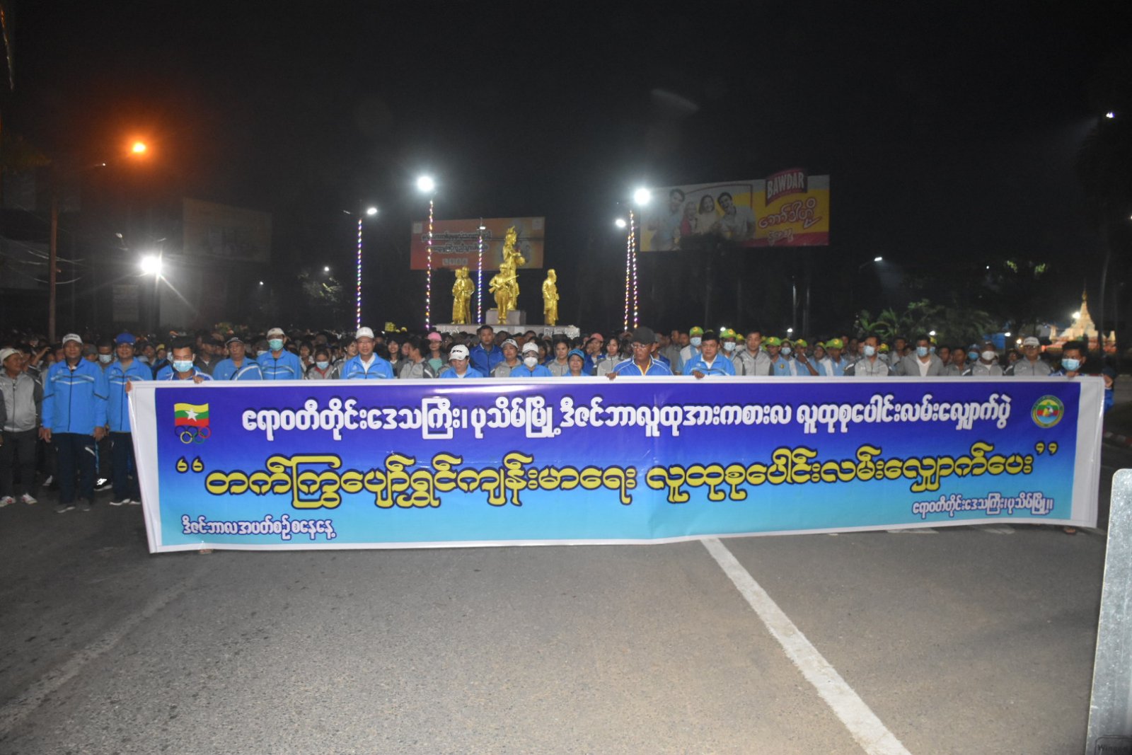 တစ်မျိုးသားလုံးကျန်းမာသန်စွမ်းပြီး ကိုယ်လက်ကြံ့ခိုင်ရေးအတွက် တစ်နိုင်ငံလုံးအတိုင်းအတာဖြင့် ဒီဇင်ဘာလအား လူထုလှုပ်ရှား အားကစားလအဖြစ် သတ်မှတ်၍ နှစ်စဉ်နှစ်တိုင်း စုပေါင်းလမ်းလျှောက်ပွဲကို ပြုလုပ်လျှက်ရှိရာ ဧရာဝတီတိုင်းဒေသကြီး၊ပုသိမ်မြို့တွင်လည်း စုပေါင်းလမ်းလျှောက်ပွဲအား ယနေ့နံနက်ပိုင်းက ရွှေရုပ်တုအဝိုင်းရှေ့တွင်ပြုလုပ်ခဲ့ရာ တိုင်းဒေသကြီး ဝန်ကြီးချုပ်ဦးတင်မောင်ဝင်းနှင့်ဇနီး၊တိုင်းဒေသကြီးတရာသူကြီးချုပ်၊ အစိုးရအဖွဲ့ဝင် ဝန်ကြီးများနှင့်ဇနီးများ၊ဌာနဆိုင်ရာများ၊ပြည်သူများပါဝင်ဆင်နွှဲခဲ့ကြသည်။ စုပေါင်းလမ်းလျှောက်ပွဲအား ရွှေရုပ်တုအဝိုင်းရှေ့မှစတင်၍ မဟာဗန္ဓုလလမ်းမကြီးအတိုင်း ကိုးသိန်းအားကစားကွင်းသို့ တပျော်တပါး စုပေါင်းလမ်းလျှောက်ခဲ့ကြပြီး ကိုယ်လက်လှုပ်ရှားလေ့ကျင့်ခန်းများအား စုပေါင်းဆောင်ရွက်ခဲ့ကြသည်။အဆိုပါစုပေါင်းလမ်းလျှောက်ပွဲသို့ ဌာနဆိုင်ရာများ၊လူမှုရေးအသင်းအဖွဲ့များနှင့် ဒေသခံပြည်သူများအပါအဝင် အင်အား (၂၁၀၀ )ဦးခန့်က တပျော်တပါး ပါဝင်ဆင်နွှဲခဲ့ကြသည်။