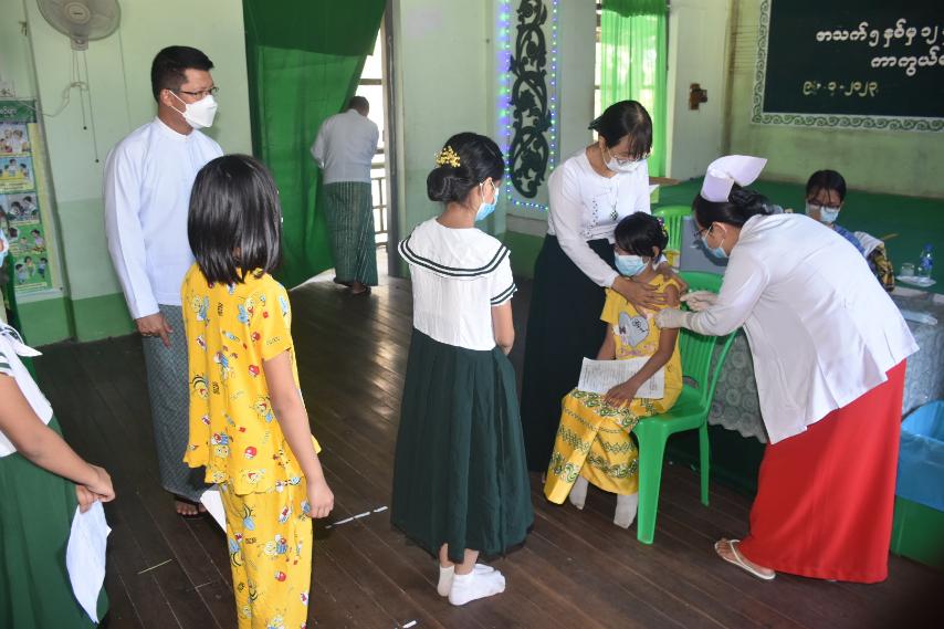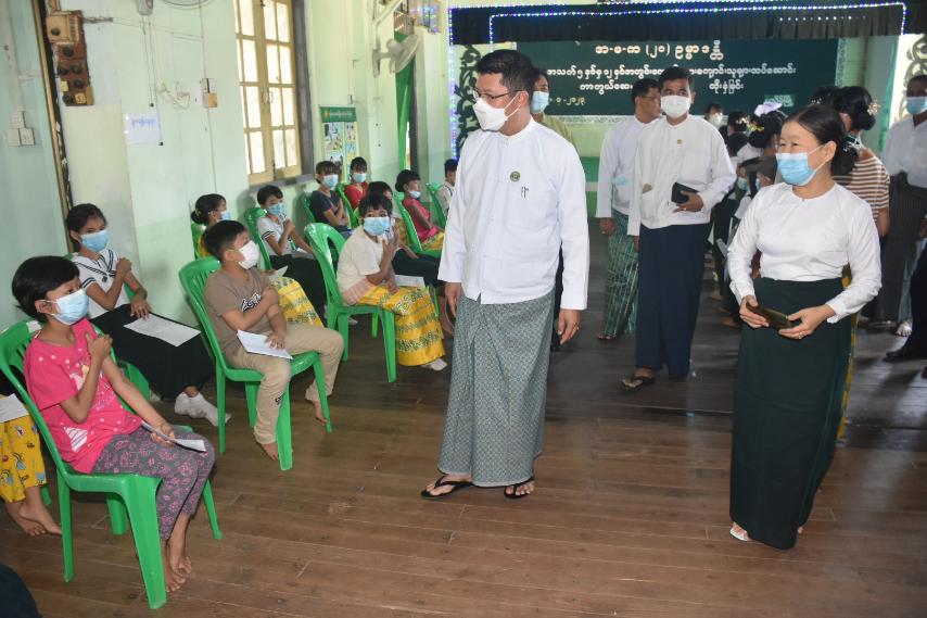 ဧရာဝတီတိုင်းဒေသကြီး ဝန်ကြီးချုပ် ဦးတင်မောင်ဝင်းသည် အမှတ်(၄)ရပ်ကွက်၊ အမှတ်(၂၀)အခြေခံပညာအထက်တန်းကျောင်း၊ ဥမ္မာဒန္တီခန်းမ၌ပြုလုပ်သည့် အသက်၅နှစ်မှ ၁၂နှစ်အတွင်း ကျောင်းသား၊ကျောင်းသူများအား ကိုဗစ် ၁၉ ရောဂါထပ်ဆောင်းကာကွယ်ဆေး Booster Dose ထိုးနှံနေမှု ကြည့်ရှုအားပေးခဲ့ပြီး ကာကွယ်ဆေးထိုးနှံရာတွင် သတ်မှတ်ထားသည့် ကျောင်းသား၊ ကျောင်းသူများ ကာကွယ်ဆေး အပြည့်အဝထိုးနှံပြီးစီးရေးမှာကြားခဲ့သည်။