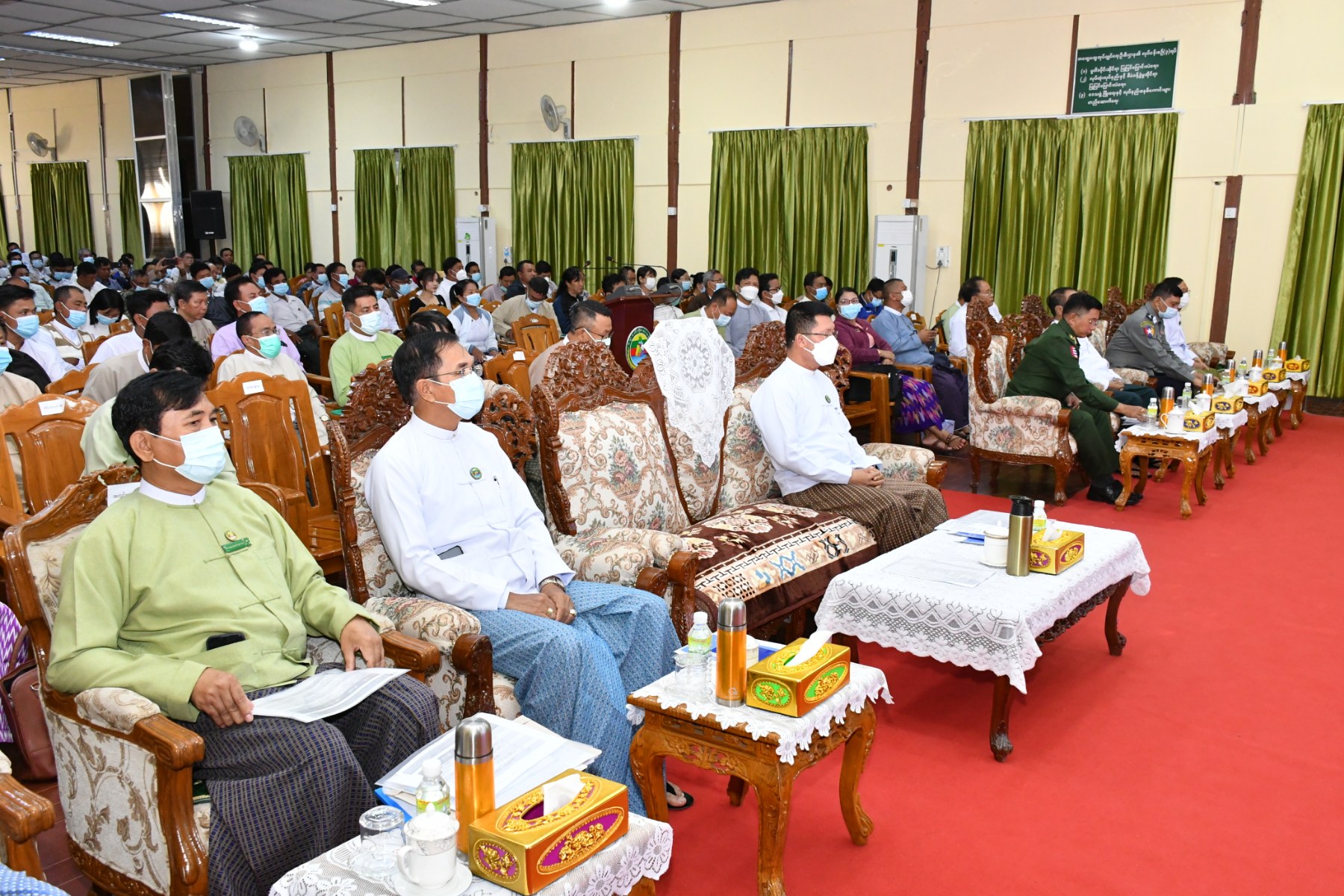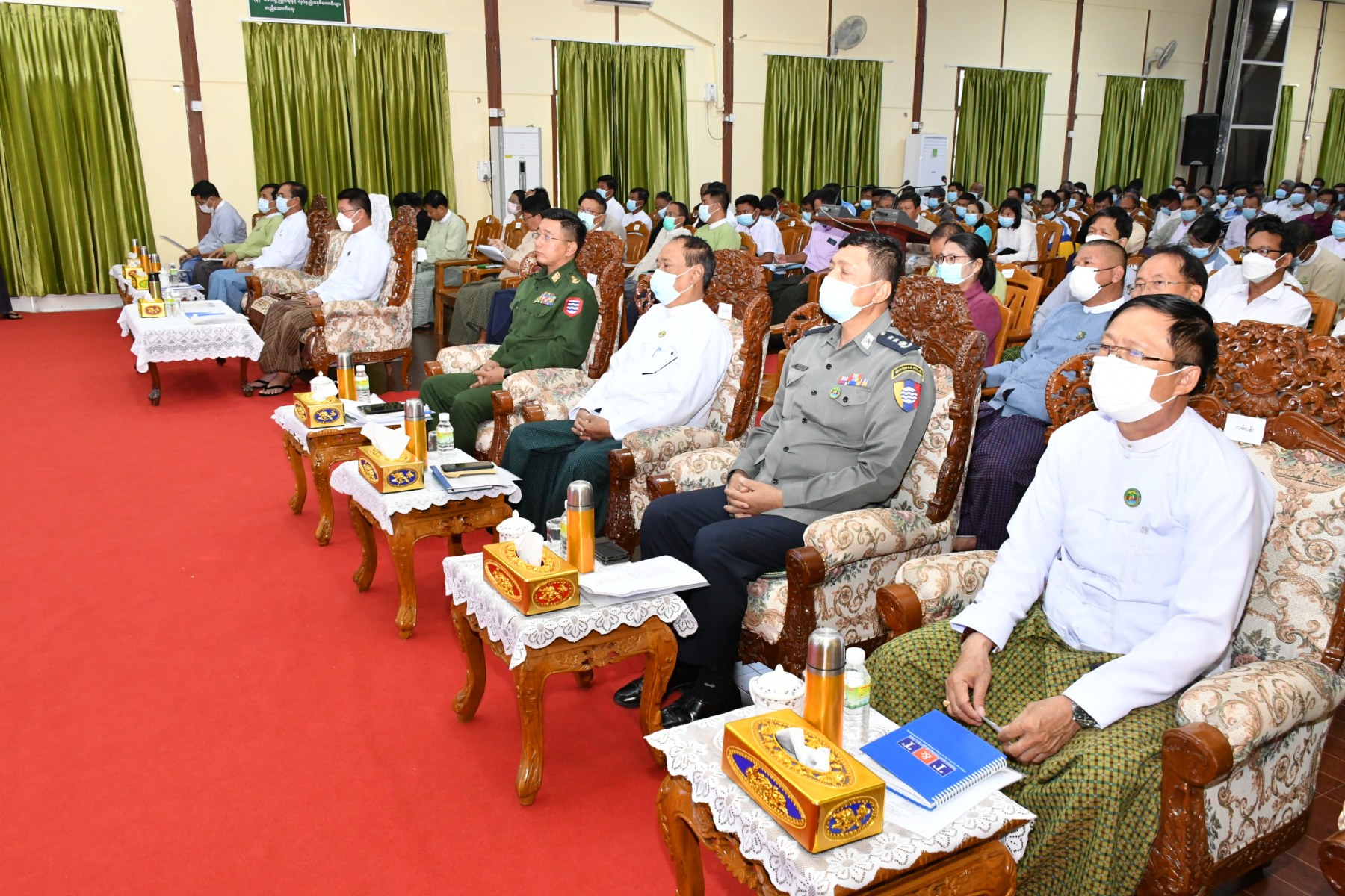 စားရေရိက္ခါဖူလုံရေးအလုပ်ရုံဆွေးနွေးပွဲကို ယနေ့နံနက်ပိုင်းက ပုသိမ်မြို့၊ ဧရာရွှေဝါခန်းမ၌ ကျင်းပပြုလုပ်ရာ တိုင်းဒေသကြီးအစိုးရအဖွဲ့ဝန်ကြီးချုပ်ဦးတင်မောင်ဝင်း၊ အစိုးရအဖွဲ့ဝင်များ၊ တက္ကသိုလ်ပါမောက္ခချုပ်များ၊ တိုင်း၊ ခရိုင်၊ မြို့နယ်ဌာနဆိုင်ရာများ၊ တောင်သူလယ်သမားဒေသခံကိုယ်စားလှယ်များ၊ ဆန်စက်လုပ်ငန်းရှင်များ၊ ဆန်ကုန်သည်များအသင်းမွေးမြူရေးလုပ်ငန်းရှင်များ၊ မွေးမြူရေးလုပ်ငန်းကုမ္ပဏီများ တက်ရောက်ခဲ့ကြသည်။