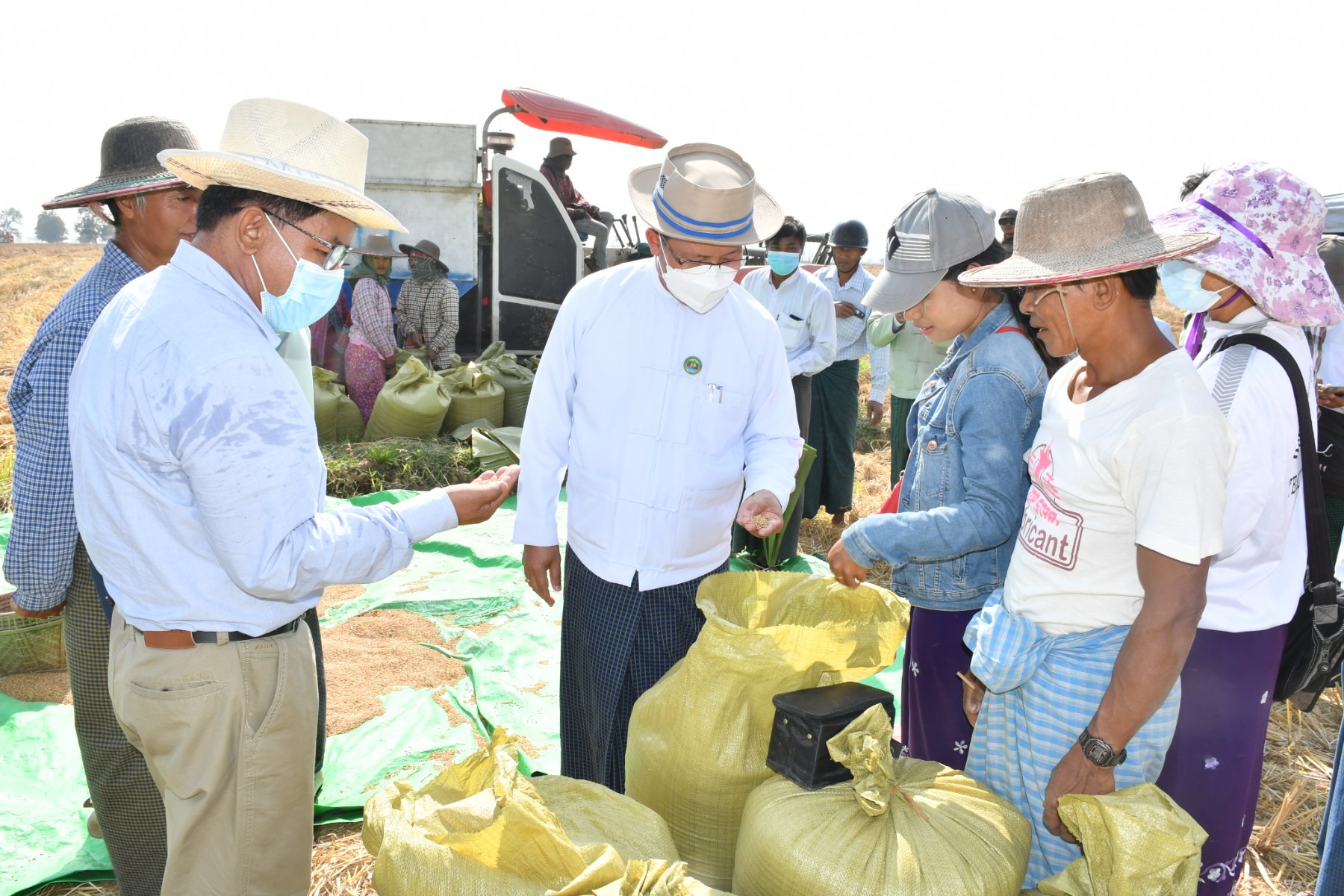 ထို့နောက်ရေကြည်မြို့နယ်၊ နွားရေတိုက်ကျေးရွာတွင် ကျင်းပပြုလုပ်သည့် စိုက်ပျိုးရေးသုတေသနဦးစီးဌာန၊ ဒေသသုတေသနဗဟိုဌာန(မြောင်းမြ)၏ကြီးကြပ်မှုဖြင့် သဘာဝမြေသြဇာကိုအသုံးပြု၍ စိုက်ပျိုးထားသည့် ပေါ်ဆန်းကြီးစပါး စံကွက်ရိတ်သိမ်းပွဲ တက်ရောက်ခဲ့ပြီး ရိတ်သိမ်းခြွေလှေ့စက်ကြီးများဖြင့် စံကွက်ရိတ်သိမ်းနေမှုကို ကြည့်ရှုအားပေးခဲ့ကာ ပေါ်ဆန်းစပါးအရည်အသွေးကောင်းမွန်စေရေး၊ စျေးကွက်ထိုးဖောက်နိုင်ရေးနှင့် အထွက်နှုန်းတိုးစေရေးကြိုးစားဆောင်ရန်မှာကြားခဲ့သည်။ အဆိုပါ ပေါ်ဆန်းကြီးစပါး စံကွက်ရိတ်သိမ်းရိတ်သိမ်းခဲ့ရာ တစ်ဧက တင်း (၁၀၀)ထွက်ရှိခဲ့ကြောင်းသိရသည်။
