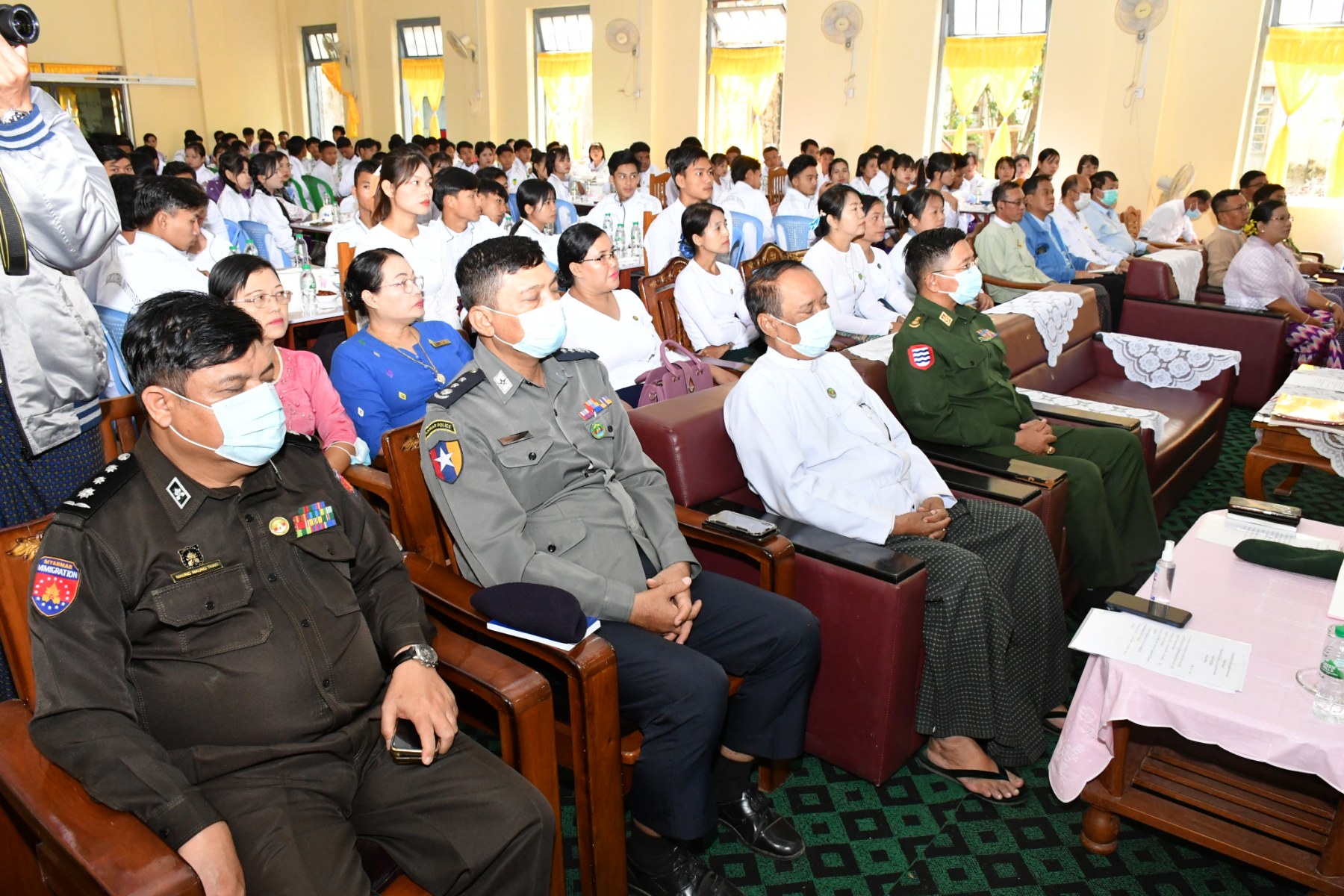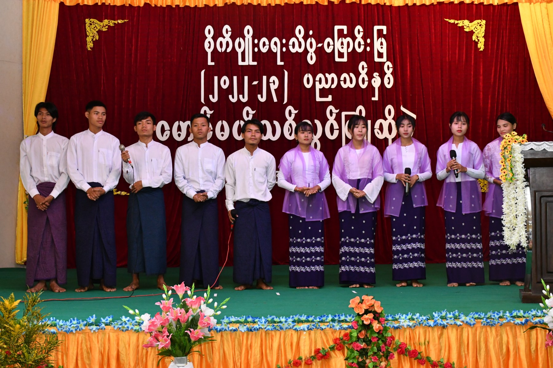 ဧရာဝတီတိုင်းဒေသကြီးဝန်ကြီးချုပ်နှင့်အဖွဲ့သည် စိုက်ပျိုးရေးဦးစီးဌာန၊ စိုက်ပျိုးရေးသိပ္ပံ(မြောင်းမြ)၊ မြကျွန်းရွှေဝါခန်းမတွင် ကျင်းပပြုလုပ်သည့် ၂၀၂၂-၂၀၂၃ ပညာသင်နှစ်(ပထမနှစ်) မောင်မယ်သစ်လွင်ကြိုဆိုပွဲအခမ်းအနားတက်ရောက်ခဲ့ရာ သင်တန်းသားသင်တန်းသူများမှ "အလှပန်းအစဉ်ဖြာဝေ" ကျောင်းသီချင်းဖြင့် စတင်သီဆိုဖွင့်လှစ်ခဲ့ပြီး တိုင်းဒေသကြီးဝန်ကြီးချုပ်မှ ကြိုဆိုနှုတ်ခွန်းဆက်အမှာစကားပြောကြားရာတွင်