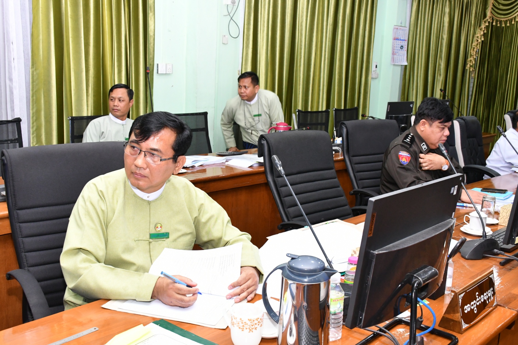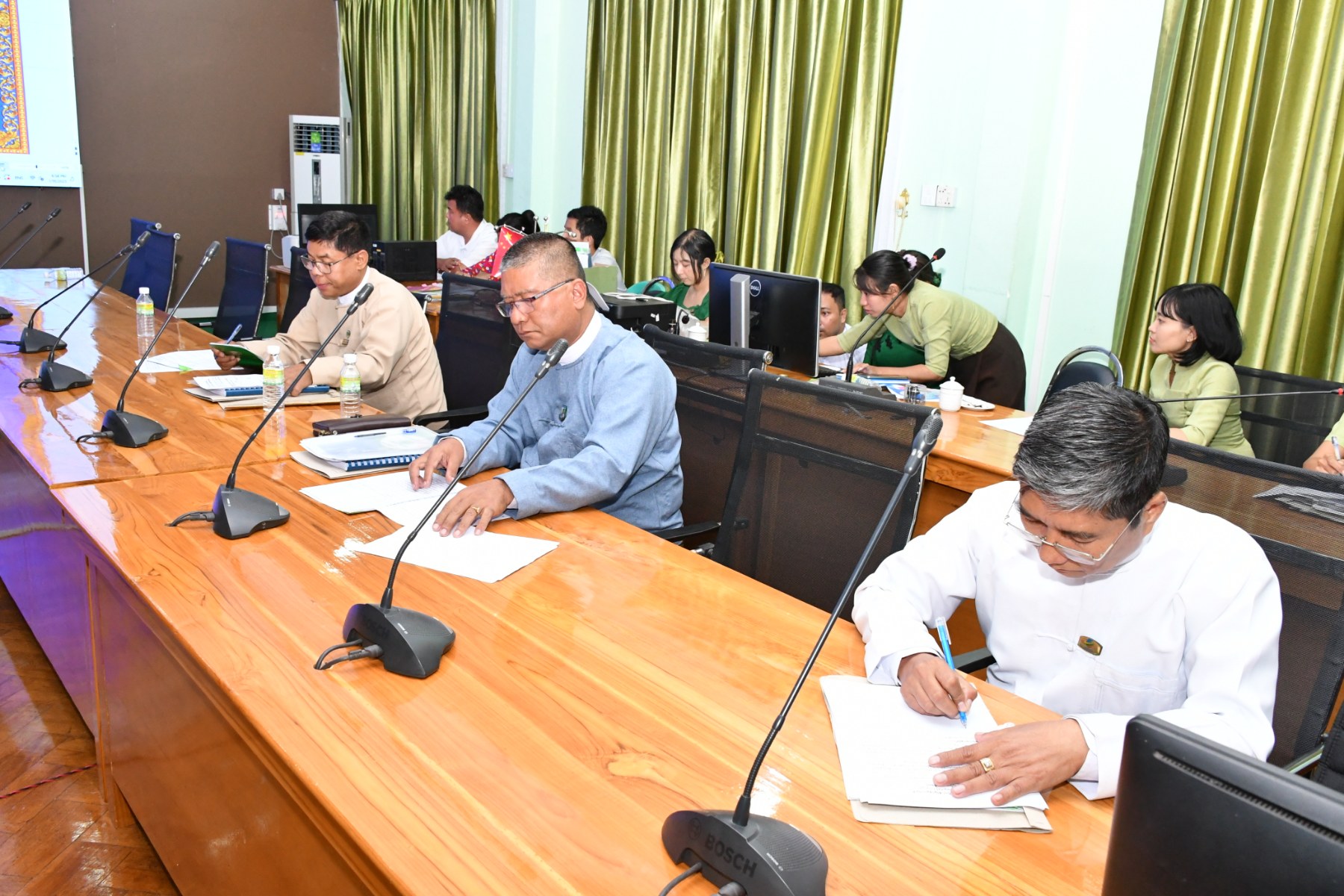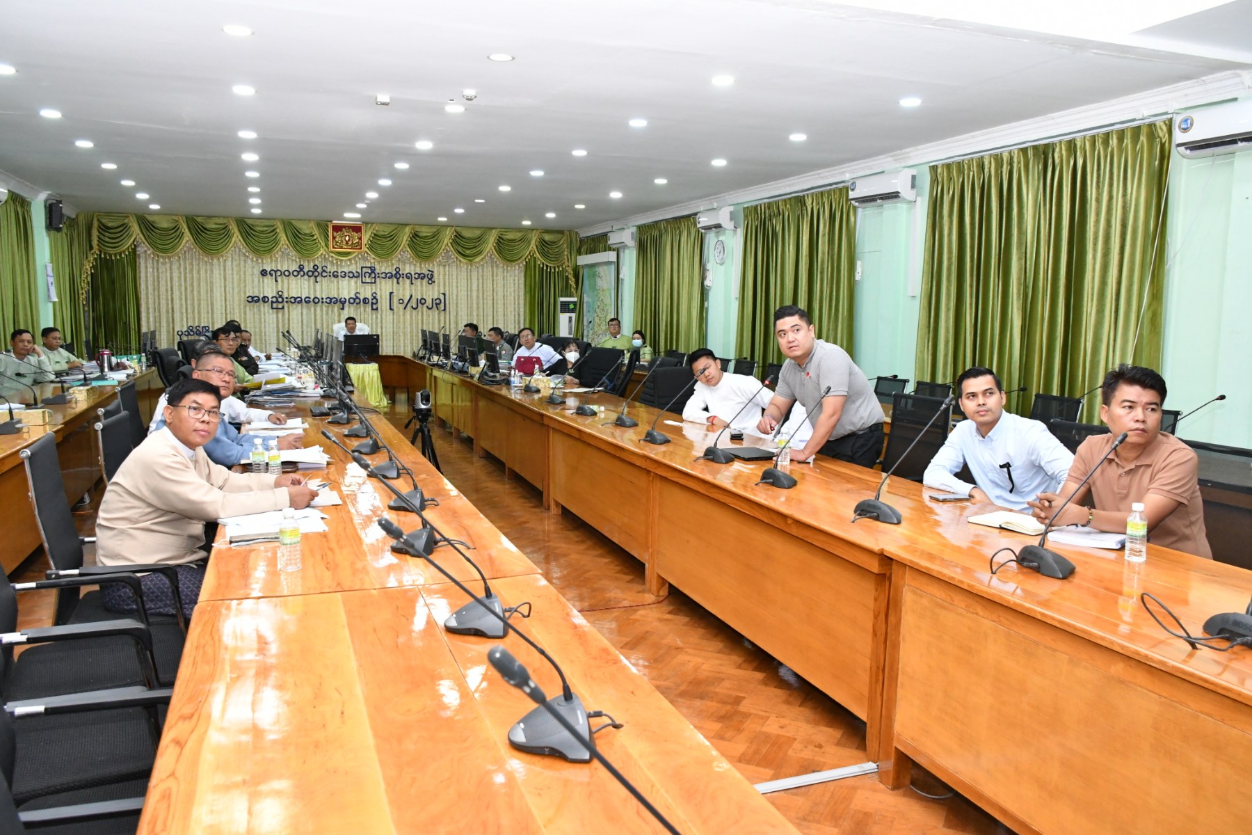 ယင်းနောက် တိုင်းဒေသကြီး ရင်းနှီးမြှုပ်နှံမှု ကော်မတီအတွင်းရေးမှူးက Green Shine Company Limited ၏ ရာခိုင်နှုန်းပြည့် မြန်မာနိုင်ငံသား ရင်းနှီးမြှုပ်နှံမှုဖြင့် ဆန်၊ ပြောင်း ကြိတ်ခွဲထုတ်လုပ်တင်ပို့ ရောင်းချခြင်းလုပ်ငန်းအား မြန်မာနိုင်ငံရင်းနှီးမြှုပ်နှံမှု ဥပဒေနှင့်အညီ အတည်ပြု လျှောက်ထားလွှာတင်ပြလာခြင်းကိစ္စနှင့် Myanmar Global Business Association Company Limited ၏ ရာခိုင်နှုန်းပြည့် မြန်မာနိုင်ငံသား ရင်းနှီးမြှုပ်နှံမှုဖြင့် အိမ်ရာဆောက်လုပ်ငှားရမ်းရောင်းချခြင်း လုပ်ငန်းကို မြန်မာနိုင်ငံရင်းနှီးမြှုပ်နှံမှု ဥပဒေနှင့်အညီတည်ဆောက်ရေးကာလ တိုးမြှင့်ခွင့်ပြုပါရန် တင်ပြလာခြင်း ကိစ္စရပ်များအား လင်းတင်ပြခဲ့သည်။