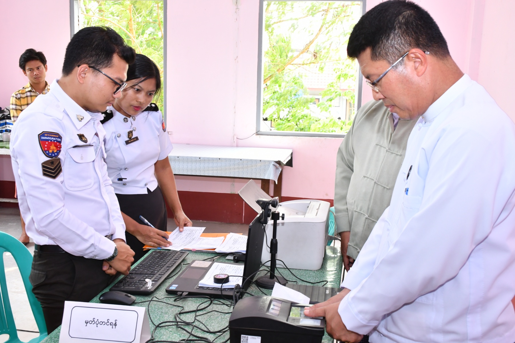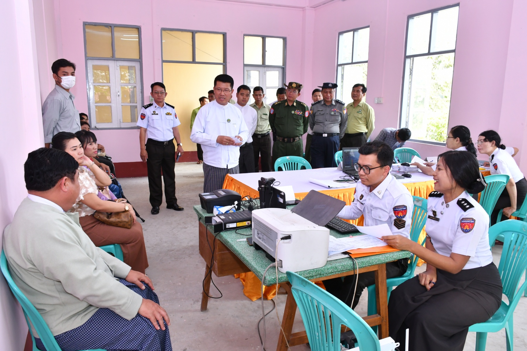 ဧရာဝတီတိုင်းဒေသကြီး အစိုးရအဖွဲ့ဝန်ကြီးချုပ်ဦးတင်မောင်ဝင်းသည် အစိုးရအဖွဲ့ဝင် ဝန်ကြီးများနှင့်အတူ ယနေ့ မွန်းလွဲပိုင်းက ပုသိမ်မြို့၊ မှတ်(၁၅)၊ မြက်တိုရပ်ကွက်စုပေါင်းရုံးရှိ မြို့နယ်အထွေထွေအုပ်ချုပ်ရေးဦးစီးဌာန၌ e-ID စနစ်ဖြင့် Data Based ရေးသွင်းထားသည့် အိမ်ထောင်စု လူဦးရေစာရင်း များအားမြေပြင်အိမ်ထောင်စုလူဦးရေစာရင်း နှင့်တိုက်ဆိုင်စစ်ဆေးခြင်းလုပ်ငန်းဆောင်ရွက်နေမှုများကို ကြည့်ရှုစစ်ဆေးခဲ့ပြီး အချက်အလက်များ တိုက်ဆိုင်စစ်ဆေးခြင်းအားတိကျမှန်ကန်စွာဖြည့်သွင်းရေး၊ အချက်အလက်များမြန်ဆန် မှန်ကန်စွာ စနစ်တကျစိစစ် ဆောင်ရွက်ဖြည့်သွင်းစေရေးနှင့်သတ်မှတ်ကာလအတွင်း အချိန်မီပြီးစီးရေးမှာကြားခဲ့ပြီး ဧရာဝတီတိုင်းဒေသကြီးတွင် Pilot Projectဖြင့်ဆောင်ရွက်လျက်ရှိသည့် Biometric data များကောက်ယူခြင်းလုပ်ငန်း ဆောင်ရွက်နေမှုများအား ကြည့်ရှုအားပေးခဲ့ကာ အချက်အလက်များ မှန်ကန်မြန်ဆန်စွာဖြည့်သွင်းစေရေးနှင့်စနစ်တကျမှတ်တမ်းထားဆောင်ရွက်စေရေး မှာကြားခဲ့သည်။