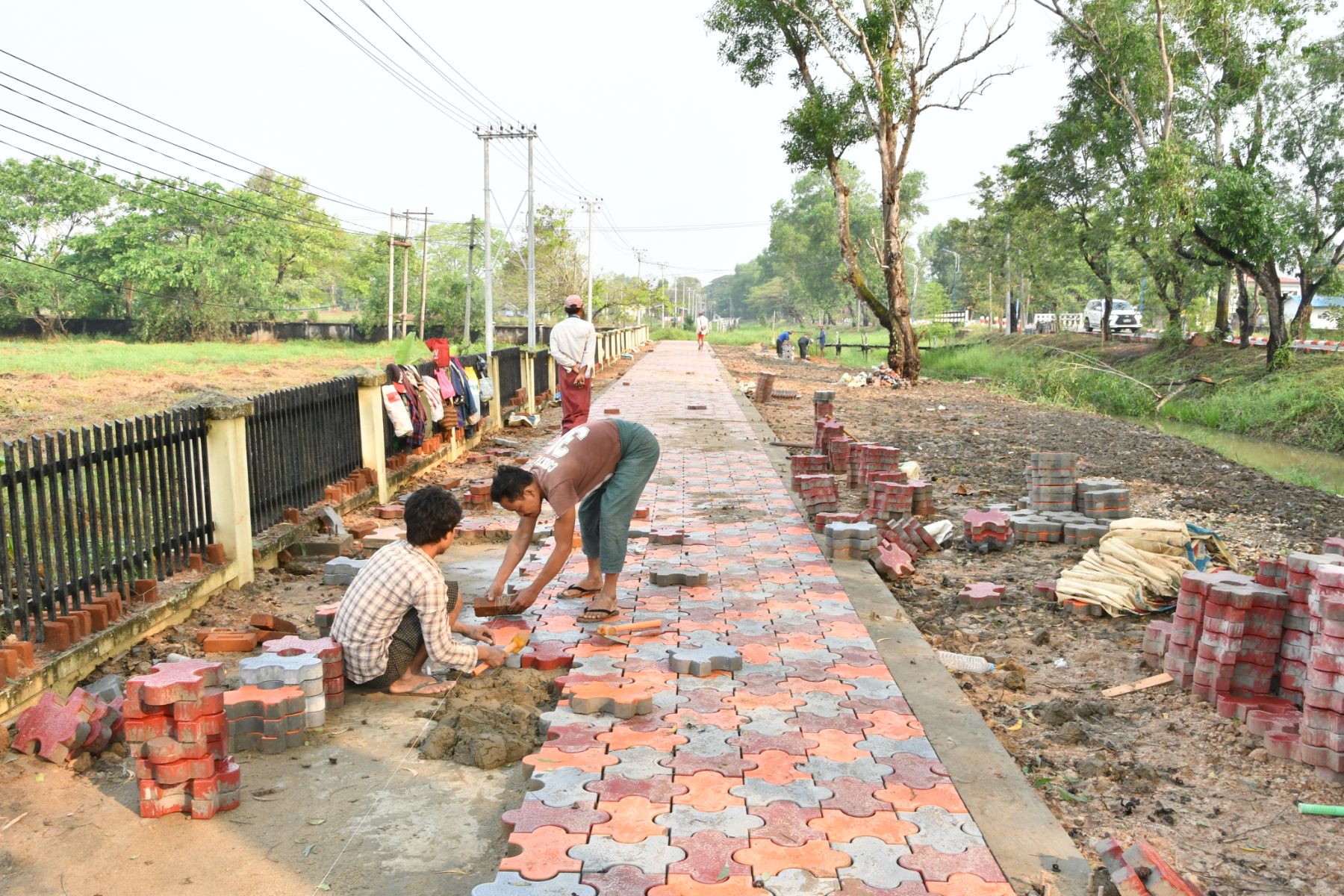ဦးစွာ တိုင်းဒေသကြီး ဝန်ကြီးချုပ်သည် ပုသိမ်တက္ကသိုလ်အဝင်မုခ်ဦးမှ ငါးအောက်ချောင်းအထိ အလျား(၆၁၀)ပေ၊အကျယ်( ၈)ပေ အားကွန်ကရစ်ခင်းခြင်း၊ Colour Brick ခင်းခြင်းနှင့် လက်ယန်းတပ်ဆင်ခြင်းလုပ်ငန်းများဆောင်ရွက်နေမှုများအား ကြည့်ရှုစစ်ဆေးခဲ့ပြီး စနစ်တကျနှင့်အချိန်မီပြီးစီးစေရေးနှင့် ပုသိမ်တက္ကသိုလ်မုဒ်ဦးရှေ့မှ အင်ကြင်းဆောင်ရှေ့အထိ အလျား ၁၇၀၀ပေ×အကျယ်၈ပေကွန်ကရစ်လူသွားလမ်းအား ရေရှည်ခိုင်ခံ့စေရေးနှင့် ပန်းအလှပင်များနှင့် မြက်ပင်များစိုက်ပျိုးနေမှုများ သန့်ရှင်းသပ်ရပ်စွာ စနစ်တကျစိုက်ပျိုးထားရှိရေးနှင့် စိမ်းလန်းသာယာမှုရှိစေရေးတို့အား မှာကြားခဲ့သည်။