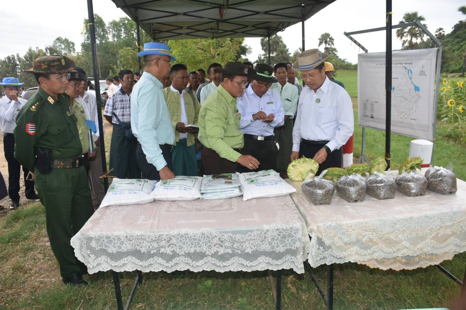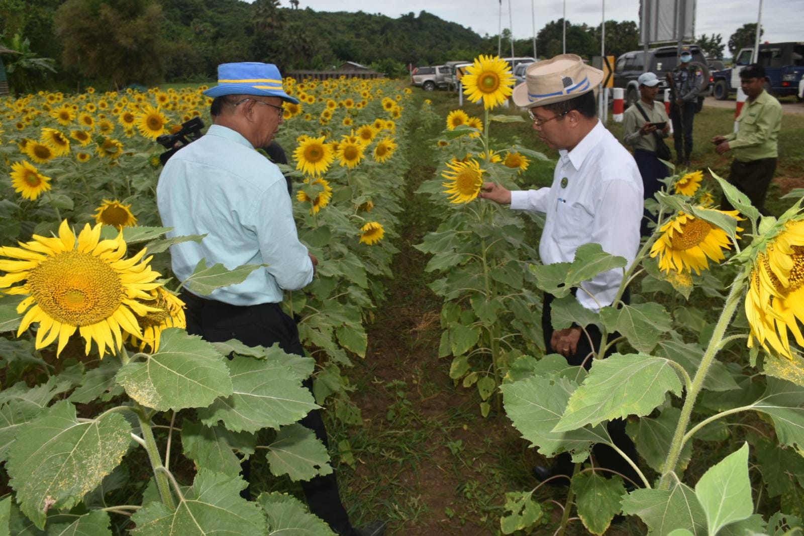 ဧရာဝတီတိုင်းဒေသကြီး ဝန်ကြီးချုပ်ဦးတင်မောင်ဝင်းသည် အစိုးရအဖွဲ့ဝင် ဝန်ကြီးများ၊ တိုင်း၊ ခရိုင်၊ မြို့နယ်ဌာနဆိုင်ရာများနှင့်အတူ ယနေ့နံနက်ပိုင်းက မြန်အောင်ခရိုင်၊ ကြံခင်းမြို့နယ်အတွင်းရှိ မိုးနေကြာစိုက်ခင်းများ ဖြစ်ထွန်းအောင်မြင်နေမှုများကို ကြည့်ရှုစစ်ဆေးခဲ့သည်။