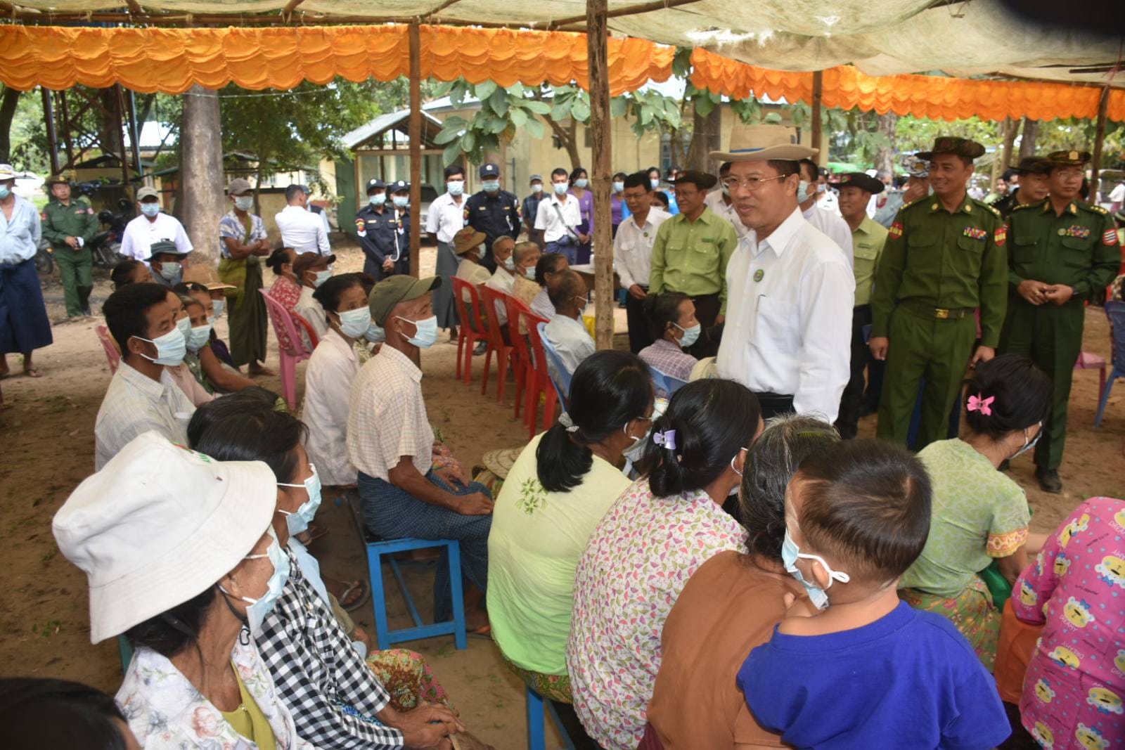 ဆက်လက်၍ တိုင်းဒေသကြီး ဝန်ကြီးချုပ်နှင့်အဖွဲ့သည် မြန်အောင်ခရိုင်၊ မြန်အောင်မြို့နယ်ရှိ နတ်ပီတိကျေးရွာ အုပ်စု၊ စိုက်ပျိုးရေးဦးစီးဌာနမှဆည်မြောင်း တာဘောင်၌ စိုက်ပျိုးထားသည့် သစ်စိမ်းမြေသြဇာ(ပိုက်ဆံလျှော်) မျိုးစေ့ထုတ် စိုက်ခင်းအား ကြည့်ရှုအားပေးခဲ့သည်။