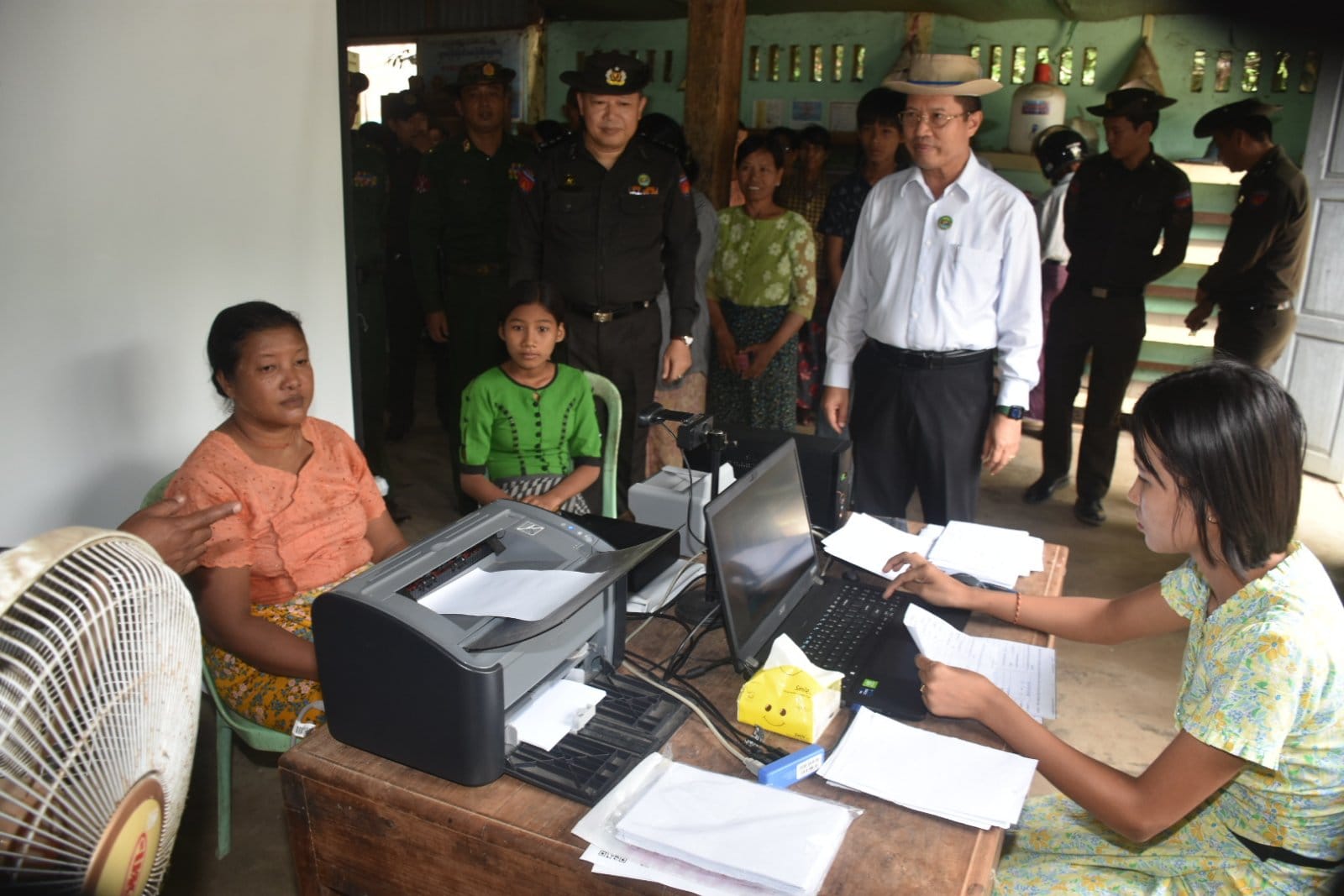 ဆက်လက်၍ တိုင်းဒေသကြီးဝန်ကြီးချုပ်နှင့်အဖွဲ့သည် ကြံခင်းမြို့နယ်၊ ဆုံလဲကုန်းကျေးရွာအုပ်စုရှိ ကျေးရွာအုပ်ချုပ်ရေးမှူးရုံးသို့ သွားရောက်၍ လူဝင်မှု ကြီးကြပ်ရေးနှင့်ပြည်သူ့အင်အားဝန်ကြီးဌာန၊ ကြံခင်းမြို့နယ်ဦးစီးမှူးရုံးမှ ပန်းခင်းစီမံချက်ဖြင့် အိမ်ထောင်စုလူဦးရေစာရင်းနှင့် နိုင်ငံသားစိစစ်ရေးကတ်ပြား ဆောင်ရွက်ပေးနေမှုများအား ကြည့်ရှုစစ်ဆေးခဲ့ပြီး မြို့နယ်ဦးစီးမှူးက လုပ်ငန်းဆောင်ရွက်မှု အခြေအနေများ ရှင်းလင်းတင်ပြခဲ့ရာ တိုင်းဒေသကြီးဝန်ကြီးချုပ်က စာရင်းရေးသွင်းရာတွင် အချက်အလက်များမှားယွင်းမှုမရှိစေရေး၊ ဆောင်ရွက်ပြီးစီးသည့် နိုင်ငံသားစိစစ်ရေးကတ်ပြား များအားပြည်သူများထံအမြန်ဆုံးရရှိစေရေး ဆောင်ရွက်ရန် မှာကြားခဲ့ပြီး ပြည်သူများထံသို့ တိုင်းဒေသကြီးဝန်ကြီးချုပ်၊ လုံခြုံရေးနှင့်နယ်စပ်ရေးရာ ဝန်ကြီးနှင့် လူမှုရေးရာဝန်ကြီးတို့က ပြုလုပ်ပြီးစီးသည့် နိုင်ငံသားစိစစ်ရေးကတ်ပြားများပေးအပ်ခဲ့သည်။