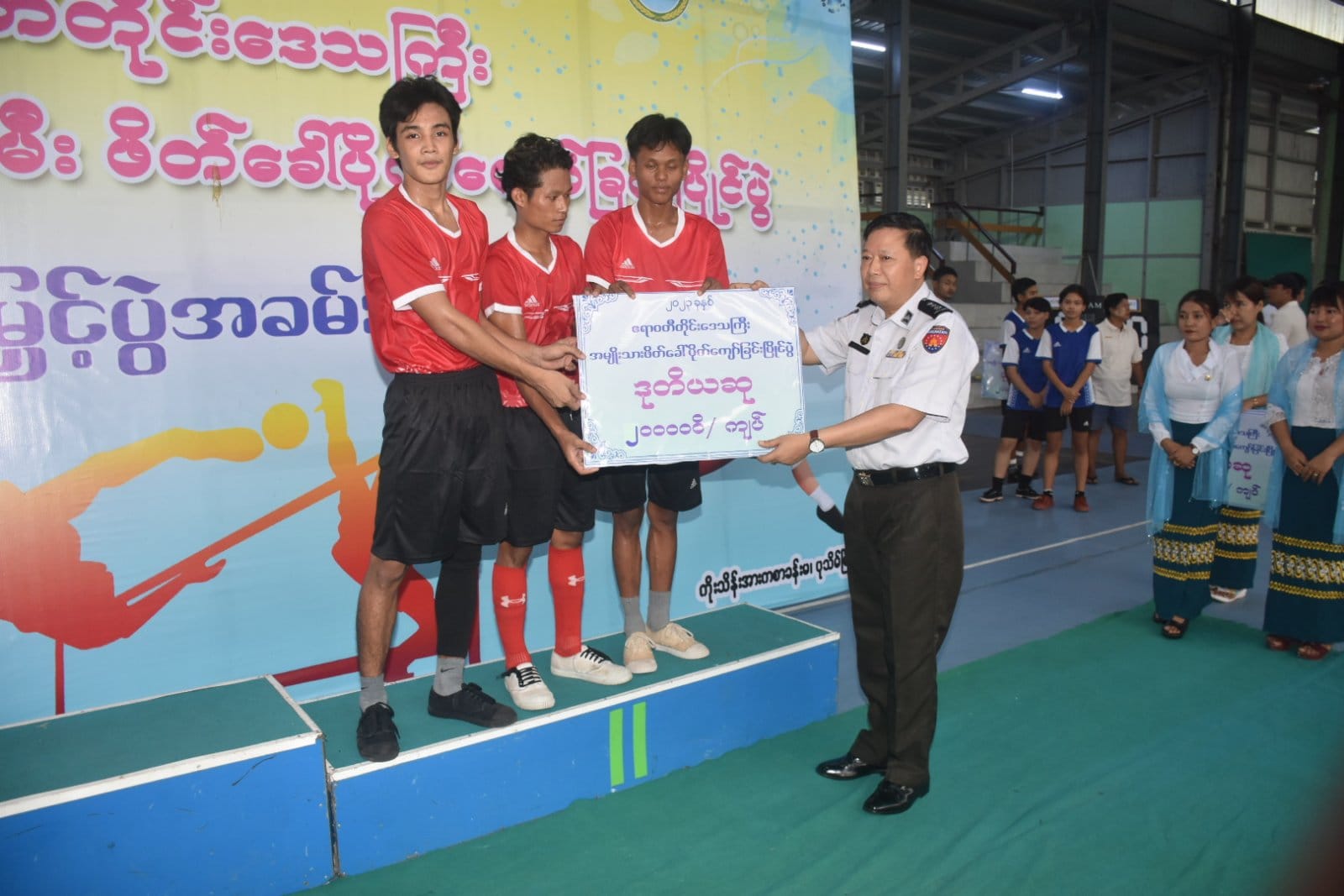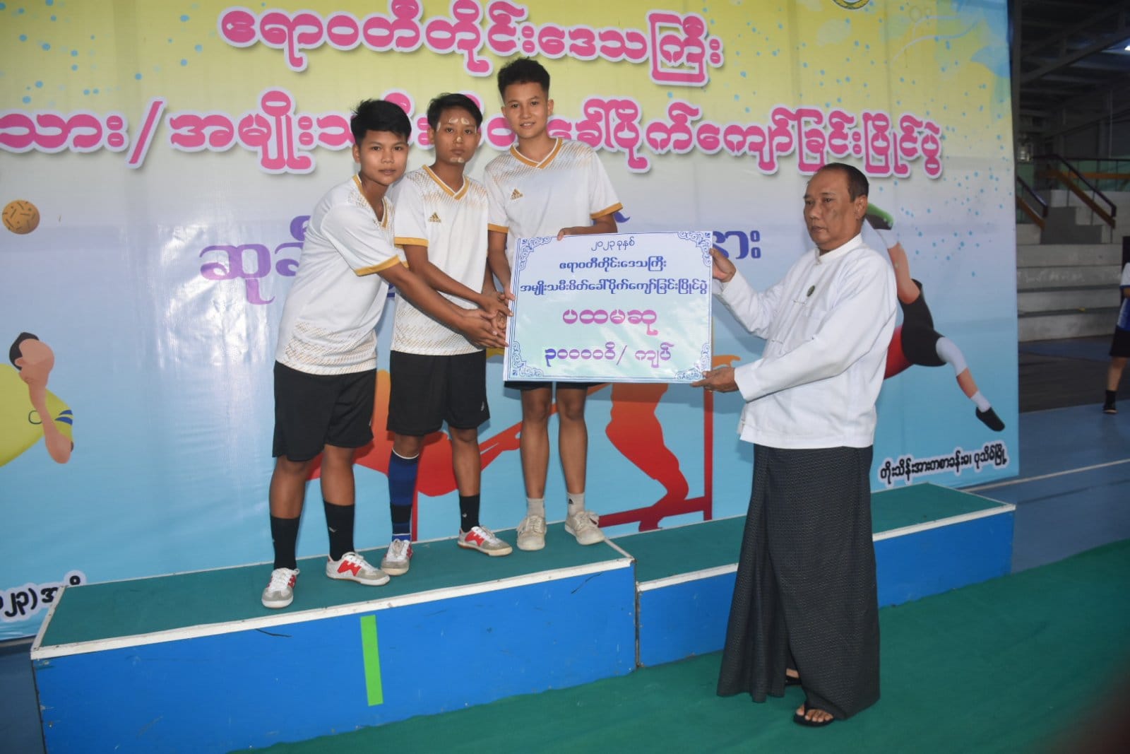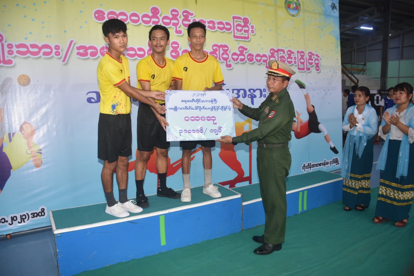 ထို့နောက် ဆုချီးမြှင့်ပွဲအခမ်းအနားအား ဆက်လက်ပြုလုပ်ရာ အမျိုးသမီးနှစ်ယောက်တွဲပြိုင်ပွဲတွင် ဒုတိယဆုရရှိသည့် ရွှေဧရာ(ခ)အသင်းမှ အားကစားသမားအား ငွေသားဆုကို တိုင်းရင်းသားရေးရာ ဝန်ကြီးကလည်းကောင်း၊ အမျိုးသားနှစ်ယောက်တွဲပြိုင်ပွဲတွင် ဒုတိယဆု ရရှိသည့် ရွှေဧရာ(ခ)အသင်းမှ အားကစားသမားများအား ငွေသားဆုကို လူမှုရေးရာဝန်ကြီးက လည်းကောင်း၊ အမျိုးသမီးနှစ်ယောက်တွဲပြိုင်ပွဲတွင် ပထမဆုရရှိသည့် ရွှေဧရာ(က) အသင်းမှ အားကစားသမားအား ငွေသားဆုကို သယံဇာတရေးရာဝန်ကြီးကလည်းကောင်း၊ အမျိုးသား နှစ်ယောက်တွဲပြိုင်ပွဲတွင် ပထမဆုရရှိသည့် ရွှေဧရာ(က )အသင်းမှ အားကစားသမားများအား ငွေသားဆုကို လုံခြုံရေးနှင့်နယ်စပ်ရေးရာဝန်ကြီးက လည်းကောင်း ဆုများအသီးသီးချီးမြှင့် ခဲ့ကြပြီး တိုင်းဒေသကြီးဝန်ကြီးချုပ်က နှစ်ယောက်တွဲအမျိုးသမီးပြိုင်ပွဲနှင့် အမျိုးသားပြိုင်ပွဲတို့ တွင်ပထမဆုရရှိသည့် ရွှေဧရာ(က)အမျိုးသမီးအသင်းနှင့်အမျိုးသားအသင်းတို့အား ဆုဖလားများ ချီးမြှင့်ခဲ့ကြောင်းသိရသည်။