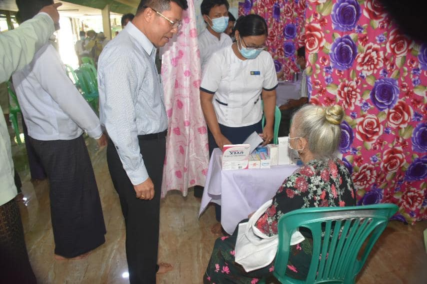 ဦးစွာ တိုင်းဒေသကြီးဝန်ကြီးချုပ်သည် ပုသိမ်မြို့မှ အထွေထွေရောဂါကုသမားတော်ကြီး၊ မျက်စိအထူးကုဆရာဝန်ကြီး၊ အရိုးအထူးကုဆရာဝန်ကြီး၊ နားနှာခေါင်းလည်ချောင်းအထူးကုဆရာဝန်ကြီး၊ ကလေးအထူးကုဆရာဝန်ကြီး၊ သွားဖက်ဆိုင်ရာအထူးကုဆရာဝန်ကြီး၊ သားဖွားမီးယပ်အထူးကုဆရာဝန်ကြီး၊ ခွဲစိတ်အထူးကုဆရာဝန်ကြီး၊ ဓါတ်မှန်/အာထရာဆောင်း အထူးကုဆရာဝန်ကြီးများမှ အခမဲ့ဆေးကုသမှုပေးနေမှုများအား ကြည့်ရှုအားပေးခဲ့ကာ အထူးကုဆရာဝန်ကြီးများအားလက်ဆောင်ပစ္စည်းများနှင့်ဆေးလာရောက်ကုသသည့် လူနာများအတွက်စားသောက်ဖွယ်ရာများ ပေးအပ်ခဲ့သည်။