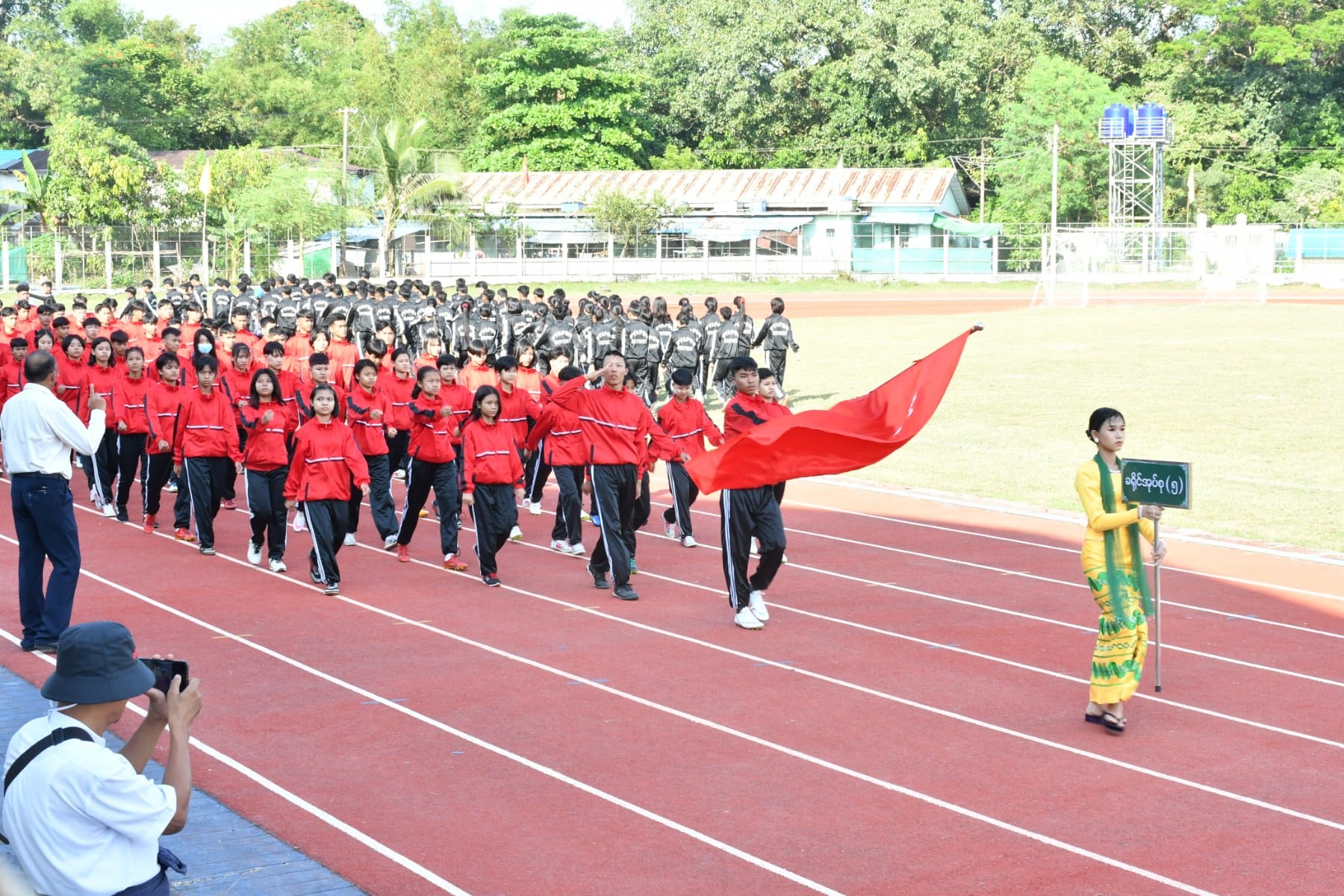 ဆက်လက်၍ စစ်ကြောင်းမှူးဦးဆောင်သည့် အားကစားအဖွဲ့များက တိုင်းဒေသကြီးဝန်ကြီးချုပ်အား အလေးပြုခြင်းနှင့် အားကစားသစ္စာအဓိဌာန် (၄)ချက်အား ရွတ်ဆိုခြင်းများကို ဆောင်ရွက်ခဲ့ကြပြီးနောက် ပြိုင်ပွဲဝင်အသင်းများက ကွင်းအတွင်းမှ ပြန်လည် ထွက်ခွာခဲ့ကြသည်။ ယင်းနောက် တိုင်း ဒေသကြီးဝန်ကြီးချုပ်နှင့်ဧည့်သည်တော်များသည် ကျောင်းသူလေးများ၏ ကိုယ်ကာယကြံ့ခိုင်မှုလေ့ကျင့်ခန်းနှင့် Fitness Danceများဖြင့် သရုပ်ပြဖျော်ဖြေမှုကို ကြည့်ရှုအားပေးခဲ့သည်။