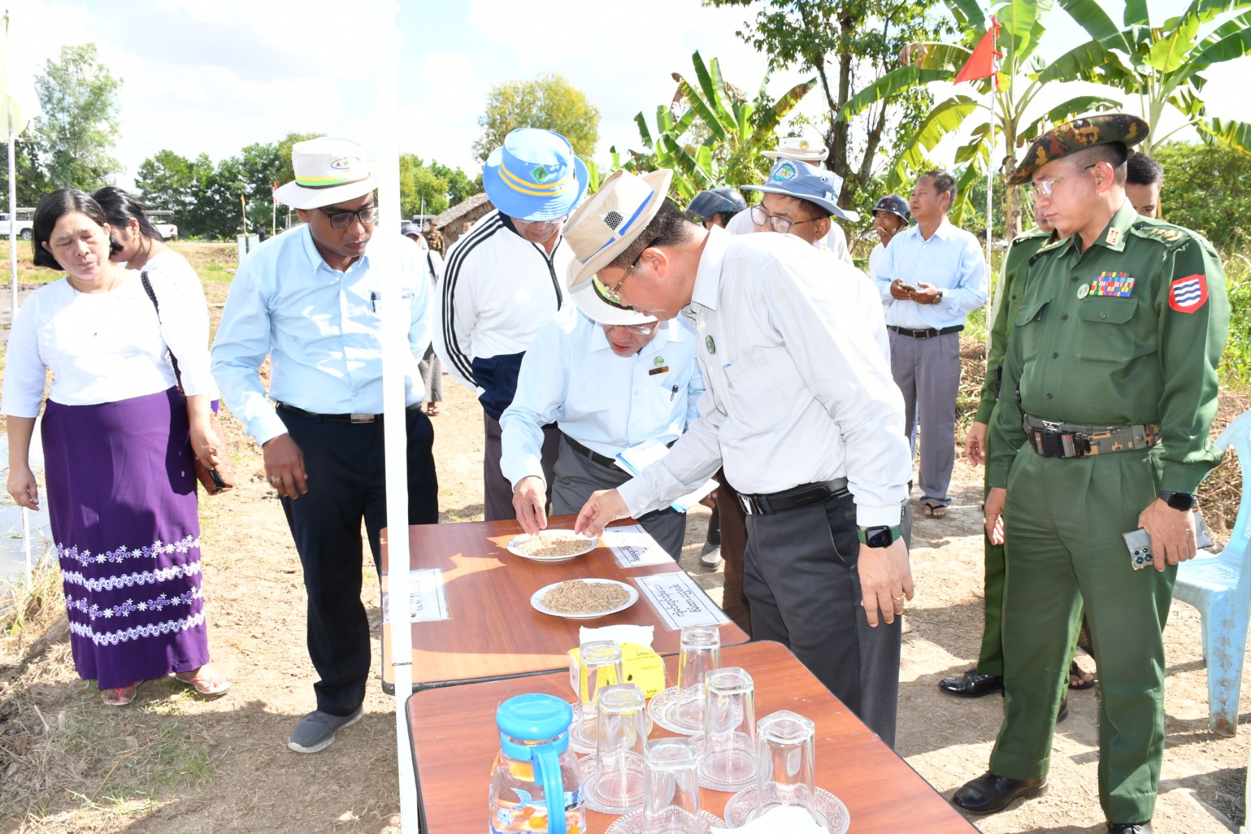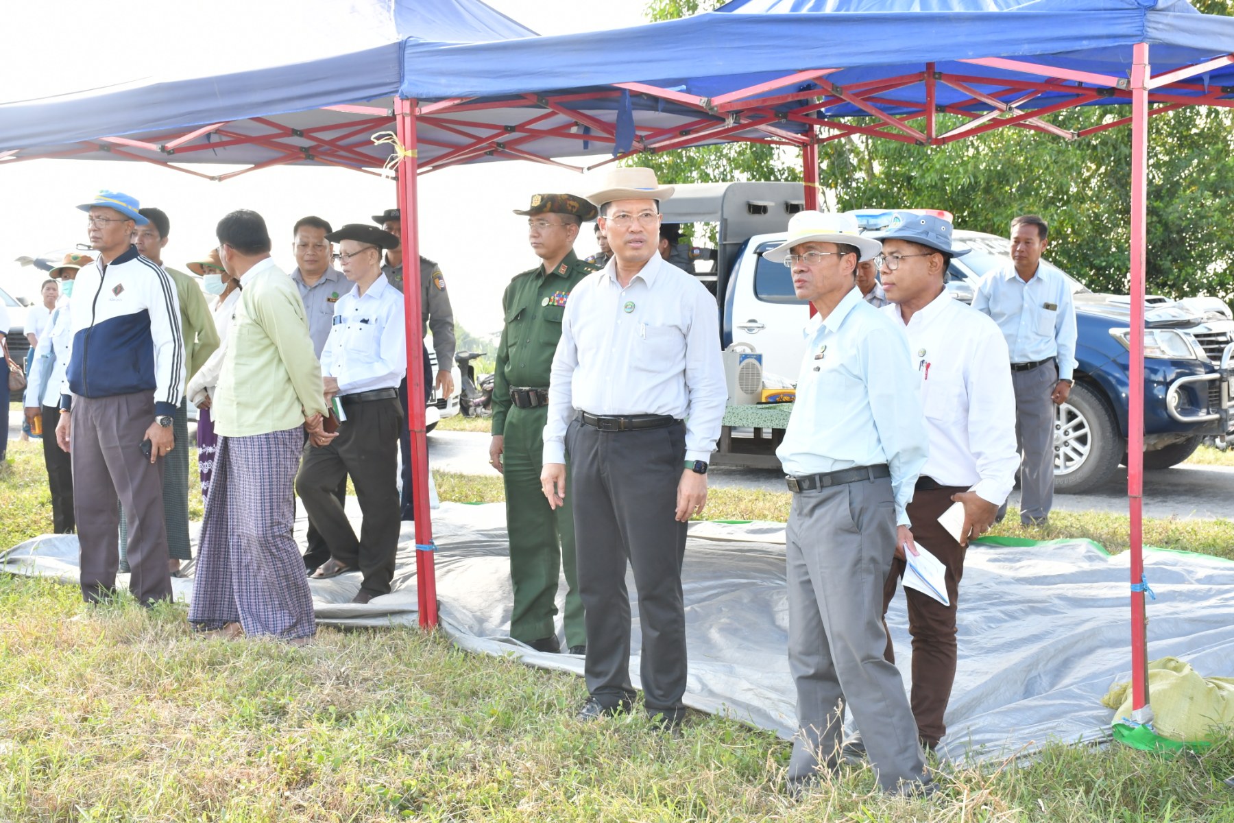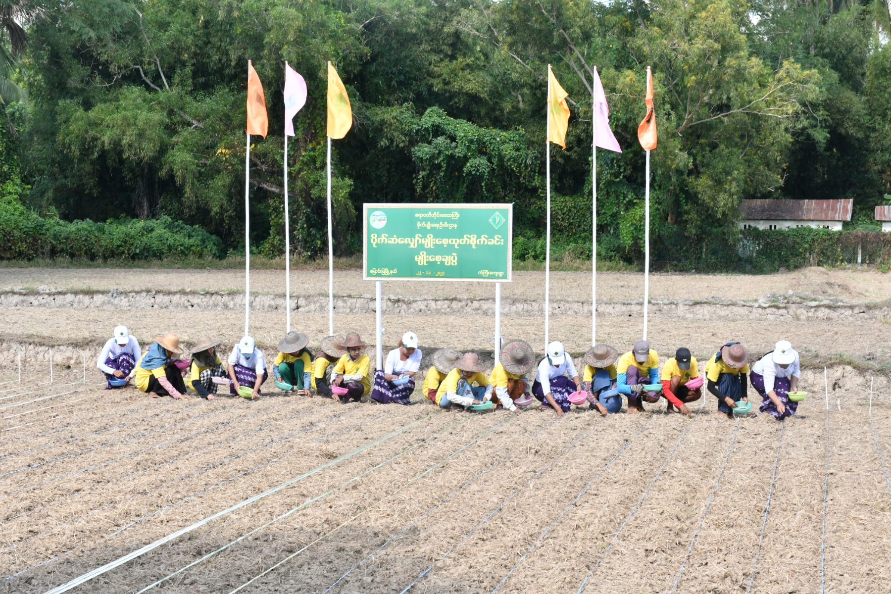 ဧရာဝတီတိုင်းဒေသကြီးဝန်ကြီးချုပ်ဦးတင်မောင်ဝင်းသည် တိုင်းဒေသကြီးအစိုးရအဖွဲ့ဝင် ဝန်ကြီးများ၊ ဌာနဆိုင်ရာများနှင့်အတူ ယနေ့နေ့လယ်ပိုင်းတွင် မြောင်းမြမြို့နယ်၊ ကွယ်လွယ်ကျေးရွာအုပ်စု၌ ပြုလုပ်သည့် ပိုက်ဆံလျှော်မျိုးစေ့ထုတ် ကျေးရွာစုပေါင်းစိုက်ခင်း (၃၀)ဧကတွင် စုပေါင်းစိုက်ပျိုးနေမှုအားလည်းကောင်း၊ ကြာဖူးငုံလက်ပံကျေးရွာရှိ တောင်သူဦးမောင်မောင်ဝင်း၏ လယ်မြေ (၃)ဧက၌ပြုလုပ်သည့် စက်မှုလယ်ယာဦးစီးဌာန၊ အမှတ်(၃၈)စက်မှုလယ်ယာစခန်း၊ မြောင်းမြမြို့မှ (၁၀)တန်းသွားမျိုးစေ့ချကိရိယာဖြင့် GW-11 မျိုးစပါး မျိုးစေ့ချစိုက်ပျိုးနေမှုအားလည်းကောင်း၊ ကံကြီးကျေးရွာရှိ တောင်သူဦးစိုးမြင့်၏လယ်မြေတွင် ဆိုလာစနစ်ဖြင့် နွေစပါးရေတင်ခြင်းနှင့် လယ်မြေ(၂၀)ဧကအား နွေစပါးစုပေါင်းထွန်ယက်ပွဲအားလည်းကောင်း၊ တောင်သူဦးမိုးဝင်း၏ လယ်မြေ(၅)ဧက၌ပြုလုပ်သည့် ဆီထွက်သီးနှံနေကြာ ဆင်းရွှေကြာ(၂) မျိုးစေ့ထုတ်စိုက်ခင်းနှင့် အထက(ခွဲ)ကံကြီးကျေးရွာ အခြေခံပညာအထက်တန်းကျောင်းပိုင်လယ်မြေ(၄)ဧကတွင် ပိုက်ဆံလျှော်မျိုးစေ့ထုတ်စိုက်ခင်း မျိုးစေ့ချပွဲအားလည်းကောင်း၊ အိမ်မဲမြို့နယ်၊ ပွဲစားဂုံညှင်းတန်းကျေးရွာရှိတွင် ပိုက်ဆံလျှော်မျိုးစေ့ထုတ် ကျေးရွာစုပေါင်းစိုက်ခင်း (၅)ဧက ပိုက်ဆံလျှော် မျိုးစေ့ချစိုက်ပွဲအားလည်းကောင်း၊ အိမ်မဲမြို့နယ်၊ တကောကျေးရွာအုပ်စုရှိ တောင်သူဦးရဲမြတ်အောင်နှင့် ဦးသံချောင်းတို့၏ စိုက်ဧက(၈)ဧက၌ပြုလုပ်သည့် ၂၀၂၃ ခုနှစ်၊ ဆောင်းသီးနှံနေကြာ super sun 41 မျိုးအား မျိုးစေ့ချကိရိယာဖြင့် စိုက်ပျိုးပွဲအားလည်းကောင်း ကြည့်ရှု အားပေးခဲ့ပြီး ဆီဖူလုံမှုရှိစေရေး၊ စိုက်ပျိုးသည့်သီးနှံများ အောင်ရေရရှိရေး၊ စိုက်ဧကများ ပြည့်မီရေး၊ လာမည့်မိုးစပါးစိုက်ရာသီတွင် ရေတော်မိုးတော်စိုက်ဧက(၂၇)သိန်းအား ပိုက်ဆံလျှော်များအပြည့်အဝ စိုက်ပျိုးမည်ဖြစ်၍ ပိုမိုတိုးချဲ့စိုက်ပျိုးနိုင်ရေးတို့ကို လမ်းညွှန်မှာကြားခဲ့ပြီး ဒေသခံတောင်သူများအား ရင်းရင်းနှီးနှီး နှုတ်ဆက်ခဲ့ပါသည်။