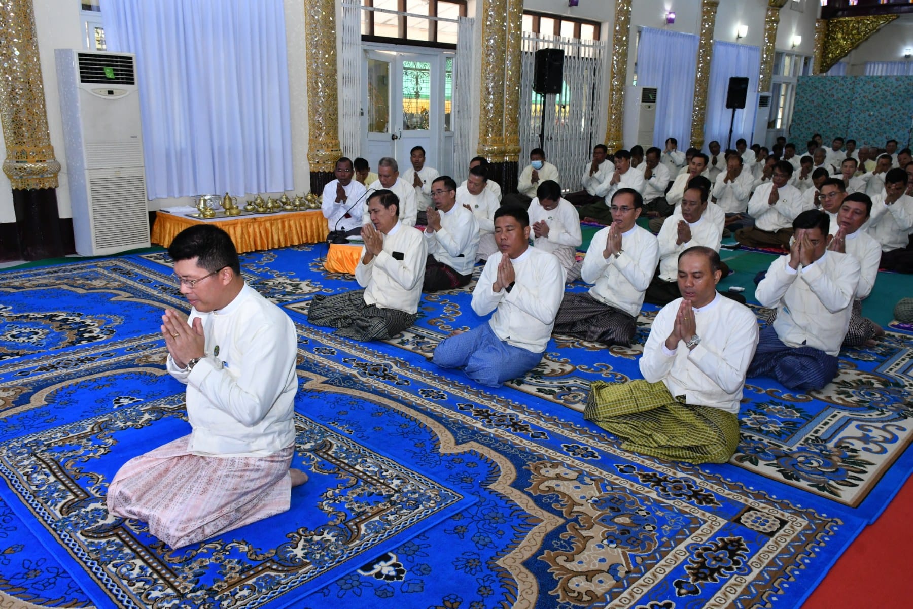 ဦးစွာ အခမ်းအနားအား “နမောတဿ” (၃)ကြိမ် ရွတ်ဆိုဘုရားကန်တော့၍ဖွင့်လှစ်ခဲ့ပြီး နိုင်ငံတော်ဩဝါဒါစရိယ၊ ပုသိမ်မြို့၊ ညောင်ပင်သာပရိယတ္တိစာသင်တိုက် ပဓာနနာယက ဆရာတော် ဘဒ္ဒန္တဝိဿုတ (အဘိဓဇမဟာရဋ္ဌဂုရု၊ အဂ္ဂမဟာပဏ္ဍိတ၊ အဂ္ဂမဟာသဒ္ဓမ္မဇောတိက ဓဇ)မဟာထေရ်မြတ်ထံမှ ဝန်ကြီးချုပ်နှင့် ဧည့်ပရိသတ်များကငါးပါးသီလ ခံယူဆောက်တည်ခဲ့ကြကာ ဆရာတော်သံဃာတော်အရှင်သူမြတ်များ ရွတ်ပွားသရဇ္ဈာယ် ချီးမြှင့်တော်မူသော ပရိတ်တရားတော်များကို နာယူကြည်ညိုကြသည်။