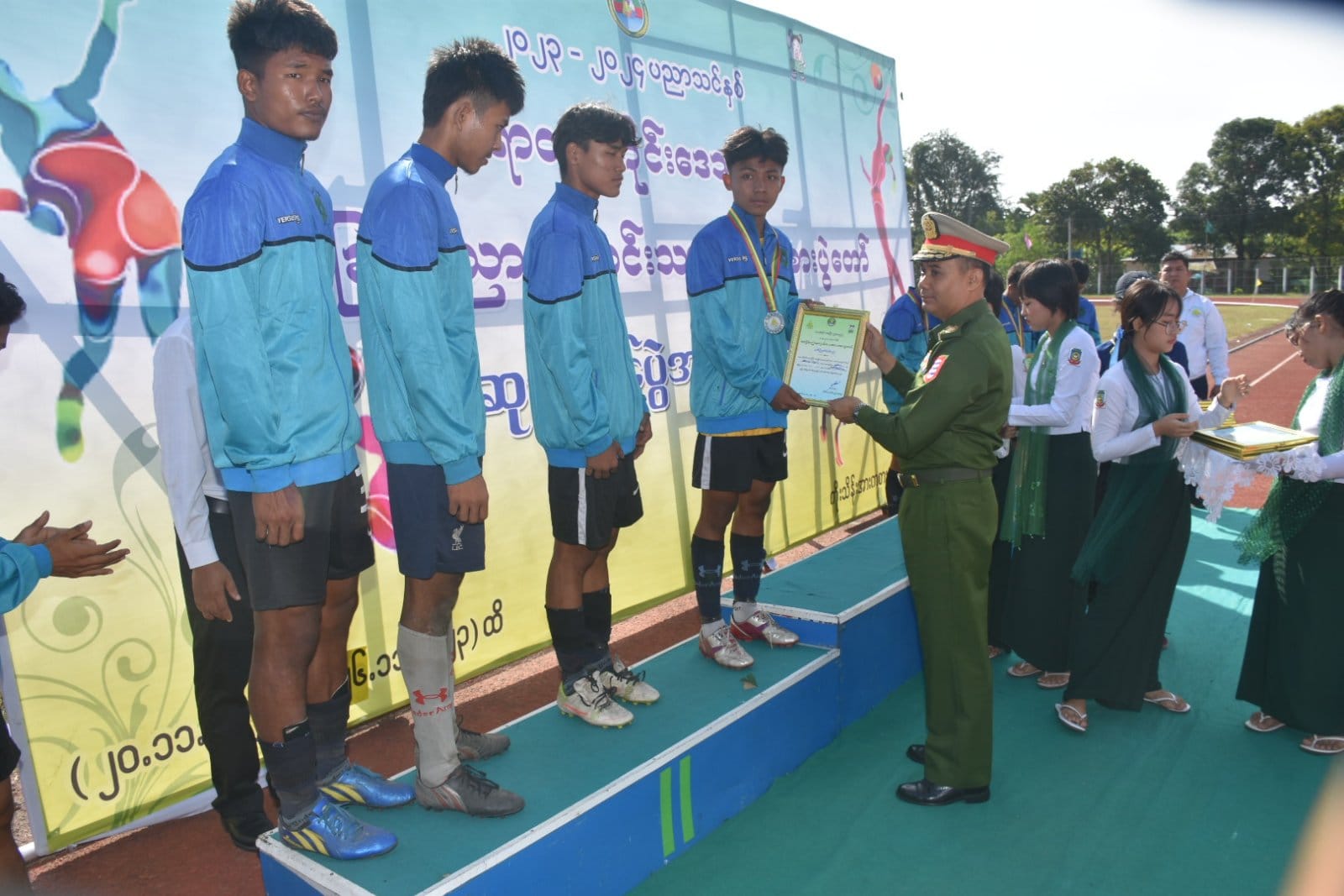 ဆက်လက်၍ ဆုချီးမြှင့်ပွဲအခမ်းအနားကို ပြုလုပ်ရာ အမျိုးသမီးဘောလုံးပြိုင်ပွဲတွင် ဒုတိယဆုရရှိသည့် ခရိုင်အုပ်စု(၄)အား တစ်ဦးချင်းဆုတံဆိပ်နှင့် ဂုဏ်ပြုလက်မှတ်များကို အနောက်တောင်တိုင်းစစ်ဌာနချုပ်တိုင်းမှူး၏ ဇနီးကလည်းကောင်း၊ အမျိုးသားဘောလုံးပြိုင်ပွဲတွင် ဒုတိယဆုရရှိသည့် ခရိုင်အုပ်စု(၃)အား တစ်ဦးချင်းဆုတံဆိပ်နှင့် ဂုဏ်ပြုလက်မှတ်များကို အနောက်တောင်တိုင်းစစ်ဌာနချုပ်တိုင်းမှူးလည်းကောင်း၊ အမျိုးသမီးဘောလုံးပြိုင်ပွဲတွင် ပထမဆုရရှိသည့် ခရိုင်အုပ်စု(၁)အား တစ်ဦးချင်းဆုတံဆိပ်၊ ဂုဏ်ပြုလက်မှတ်များနှင့် ဆုဖလားကို တိုင်းဒေသကြီးဝန်ကြီးချုပ်၏ ဇနီးကလည်းကောင်း၊ အမျိုးသားဘောလုံးပြိုင်ပွဲတွင် ပထမဆုရရှိသည့် ခရိုင်အုပ်စု(၁)အား တစ်ဦးချင်းဆုတံဆိပ်၊ ဂုဏ်ပြုလက်မှတ်များနှင့် ဆုဖလားကို တိုင်းဒေသကြီးဝန်ကြီးချုပ်ကလည်းကောင်း အသီးသီးဆုများချီးမြှင့်ခဲ့ကြပြီး ဆုရရှိသည့်အသင်းများနှင့်အတူ အမှတ်တရစုပေါင်းမှတ်တမ်းတင် ဓာတ်ပုံများရိုက်ကူးခဲ့ကြပြီးနောက် တိုင်းဒေသကြီး ဝန်ကြီးချုပ်က ဧရာဝတီတိုင်းဒေသသကြီး အခြေခံပညာကျောင်းသားအားကစားပွဲတော်အတွက် ထောက်ပံ့ငွေများကိုပေးအပ်ရာ တိုင်းဒေသကြီးပညာရေးမှူးနှင့် အားကစားပွဲတော်ကျင်းပရေး အဖွဲ့ခေါင်းဆောင်တို့ကလက်ခံရယူခဲ့သည်။