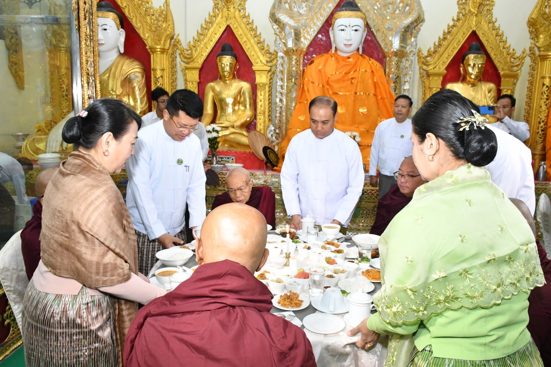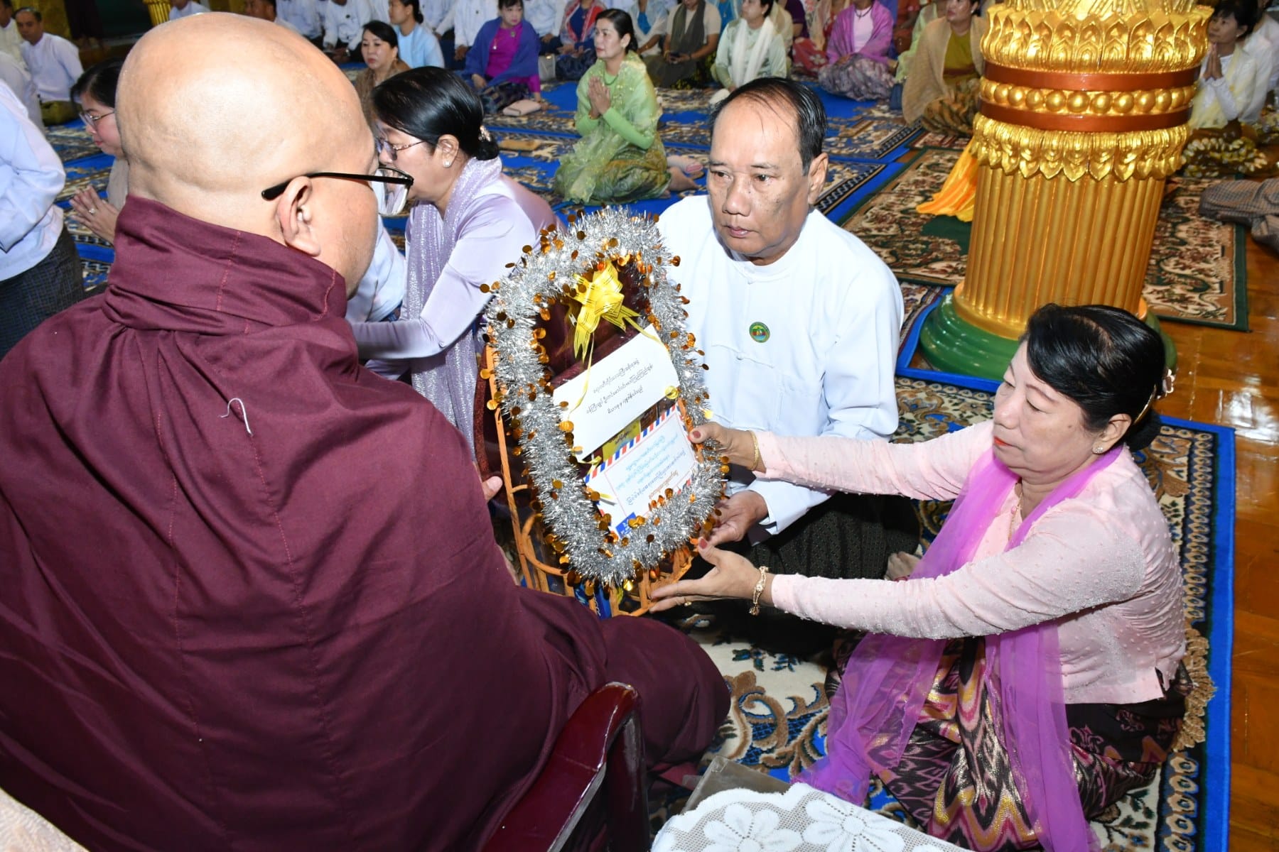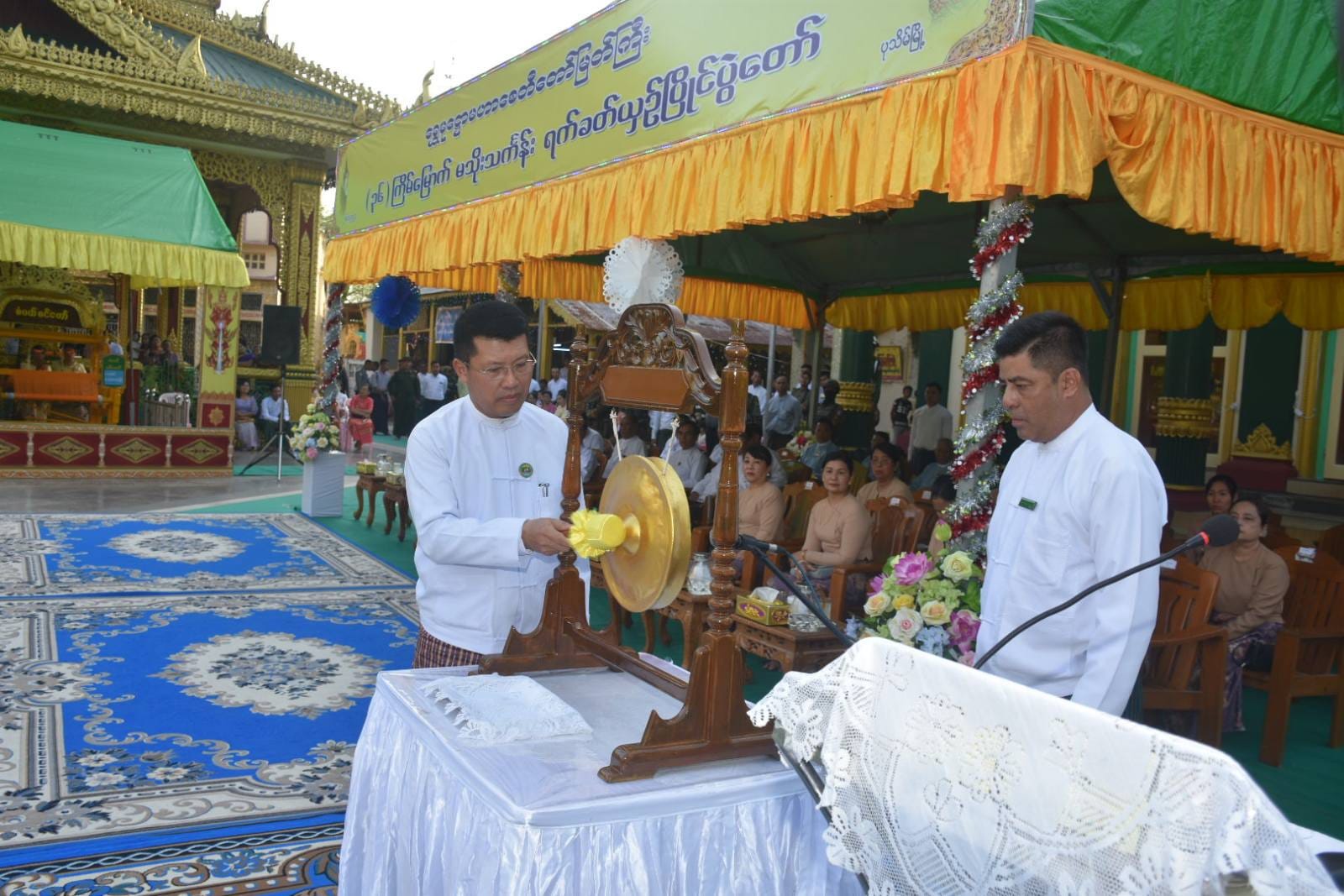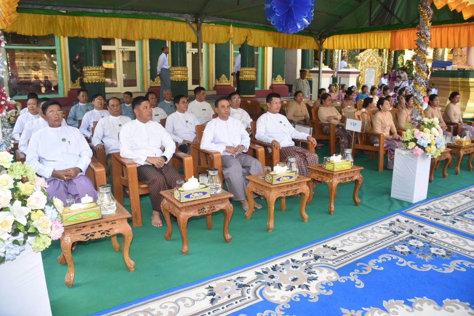 နိုဝင်ဘာလ ၂၇ရက်နေ့ နံနက်ပိုင်းတွင် ပုသိမ်မြို့၏ကျက်သရေဆောင် ရှေးဟောင်းသမိုင်းဝင် ရွှေမုဋ္ဌောစေတီတော်မြတ်ကြီး၌ (၃၆)ကြိမ်မြောက် မသိုးသင်္ကန်းကပ်လှူပွဲ ရေစက်ချမင်္ဂလာအခမ်းအနားကို စေတီတော်မြတ်ကြီး၏ ရင်ပြင်တော်ပေါ်ရှိ ဦးမောင်ကြီးတန်ဆောင်း၌ ပြုလုပ်ရာ တိုင်းဒေသကြီး ဝန်ကြီးချုပ်ဦးတင်မောင်ဝင်းနှင့်ဇနီး၊ အနောက်တောင်တိုင်းစစ်ဌာနချုပ် တိုင်းမှူးနှင့်ဇနီး၊ ပုသိမ်လေတပ်စခန်းဌာနချုပ်မှူးနှင့် ဇနီး၊ အစိုးရအဖွဲ့ဝင် ဝန်ကြီးများနှင့်ဇနီးများ၊ ဖိတ်ကြားထားသည့် ဧည့်သည်တော်များ တက်ရောက် ခဲ့ကြသည်။