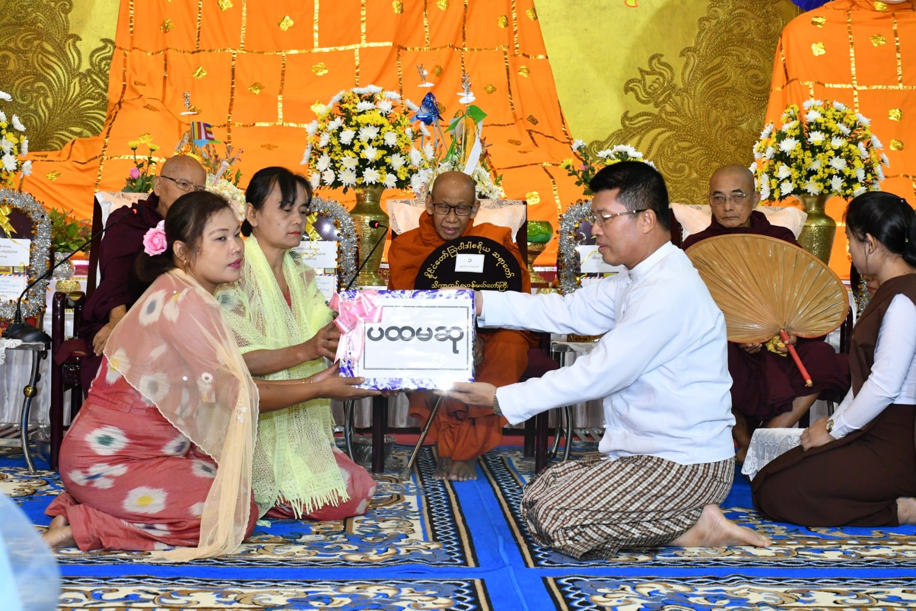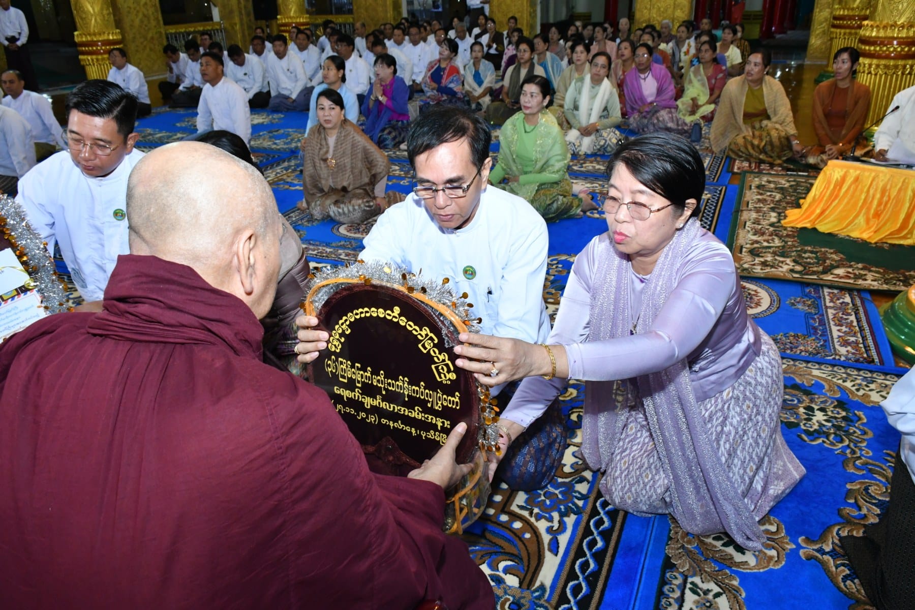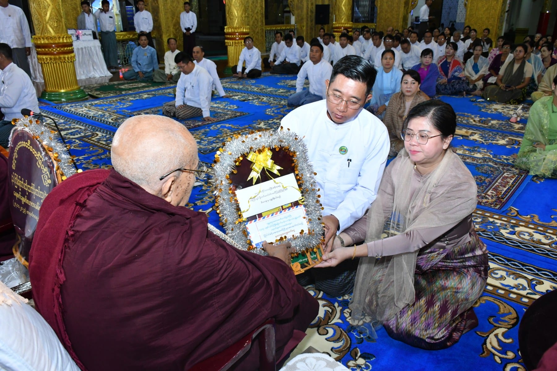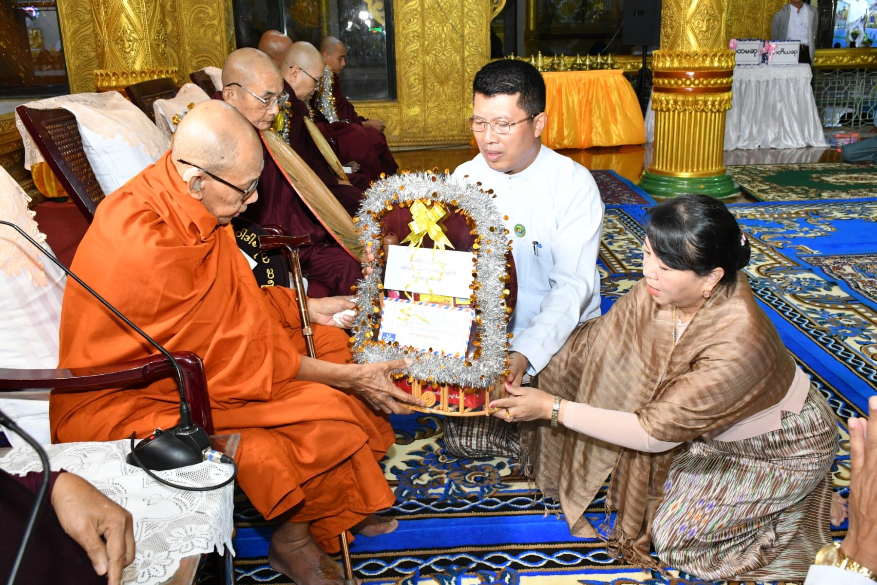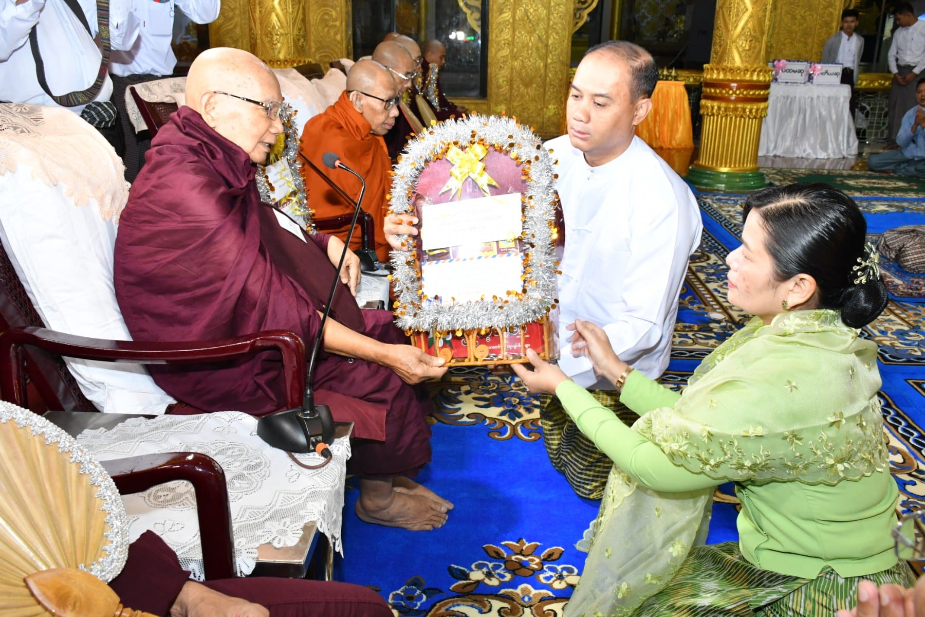 နိုဝင်ဘာလ ၂၇ရက်နေ့ နံနက်ပိုင်းတွင် ပုသိမ်မြို့၏ကျက်သရေဆောင် ရှေးဟောင်းသမိုင်းဝင် ရွှေမုဋ္ဌောစေတီတော်မြတ်ကြီး၌ (၃၆)ကြိမ်မြောက် မသိုးသင်္ကန်းကပ်လှူပွဲ ရေစက်ချမင်္ဂလာအခမ်းအနားကို စေတီတော်မြတ်ကြီး၏ ရင်ပြင်တော်ပေါ်ရှိ ဦးမောင်ကြီးတန်ဆောင်း၌ ပြုလုပ်ရာ တိုင်းဒေသကြီး ဝန်ကြီးချုပ်ဦးတင်မောင်ဝင်းနှင့်ဇနီး၊ အနောက်တောင်တိုင်းစစ်ဌာနချုပ် တိုင်းမှူးနှင့်ဇနီး၊ ပုသိမ်လေတပ်စခန်းဌာနချုပ်မှူးနှင့် ဇနီး၊ အစိုးရအဖွဲ့ဝင် ဝန်ကြီးများနှင့်ဇနီးများ၊ ဖိတ်ကြားထားသည့် ဧည့်သည်တော်များ တက်ရောက် ခဲ့ကြသည်။