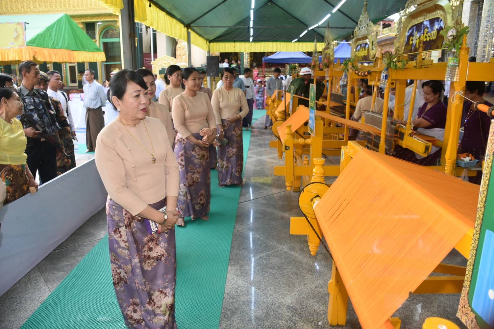 ယင်းနောက် တိုင်းဒေသကြီးဝန်ကြီးချုပ်နှင့် တာဝန်ရှိများက မသိုးသင်္ကန်းယှဉ်ပြိုင် ရက်ခတ်နေမှုများအား ကြည့်ရှုအားပေးခဲ့ပြီး ဖျော်ဖြေရေးအဖွဲ့များအား ချီးမြှင့်ငွေများပေးအပ်ခဲ့ပါသည်။ ထို့နောက် ယက်ကန်းပြိုင်ပွဲတွင် ဆုချီးမြှင့်နိုင်ရေးအတွက် တိုင်းဒေသကြီးဝန်ကြီးချုပ်နှင့် တာဝန်ရှိသူများ၊ ဒိုင်အဖွဲ့များမှ လိုက်လံကြည့်ရှုစစ်ဆေးခဲ့ပါသည်။ ရွှေမုဋ္ဌောမဟာစေတီတော်မြတ်ကြီး၏ (၃၆)ကြိမ်မြောက် မသိုးသင်္ကန်းရက်ခတ်ယှဉ်ပြိုင်ပွဲတွင် ရက်ကန်းစင်တော်(၉)စင် ပါဝင်ယှဉ်ပြိုင်ခဲ့ကြပြီး ဘုရားဖူးလာရောက်ကြသူများ မသိုးသင်္ကန်းယှဥ်ပြိုင်ရက်ခတ်မှုများအား လာရောက်ကြည့်ရှုလေ့လာသူများဖြင့် စည်ကားသိုက်မြိုက်စွာကျင်းပခဲ့ပါသည်။