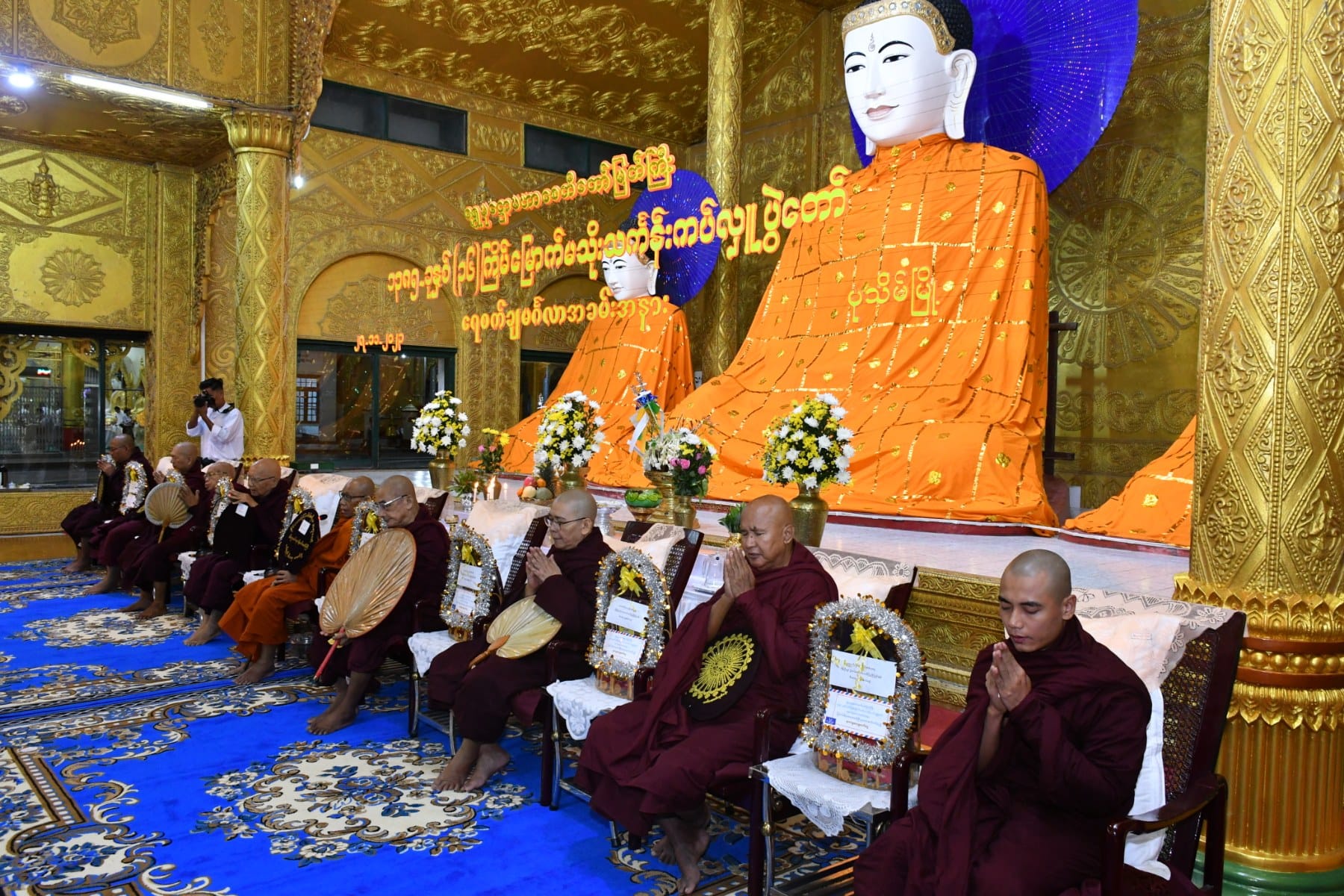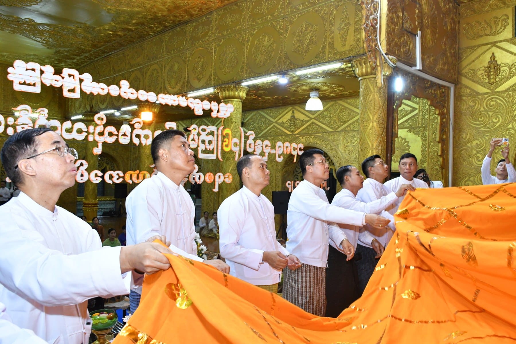 ဦးစွာ တိုင်းဒေသကြီးဝန်ကြီးချုပ်သည် ရွှေမုဋ္ဌောမဟာစေတီတော်မြတ်ကြီး၏ ဦးမောင်ကြီးတန်ဆောင်းတွင် ပန်း၊ ရေချမ်း၊ ဆီမီးများကပ်လှူပူဇော်ပူဇော်ကာ ရွှေမုဋ္ဌောမဟာစေတီတော်မြတ်ကြီးအား ဖူးမျှော်ကြည်ညို၍ မသိုးသင်္ကန်းယှဉ်ပြိုင်ရက်ခတ်မည့် ယာယီမဏ္ဍပ်သို့ ရောက်ရှိပြီးနောက် ရွှေမုဋ္ဌောမဟာစေတီတော် မြတ်ကြီး၊ ဘဏ္ဍာတော်ထိန်းဂေါပကအဖွဲ့မှ အလှည့်ကျသဘာပတိက မသိုးသင်္ကန်းဆိုင်ရာများနှင့် ပတ်သက်၍ ဆောင်ရွက်ထားရှိမှုများအား ရှင်းလင်းတင်ပြသည်။