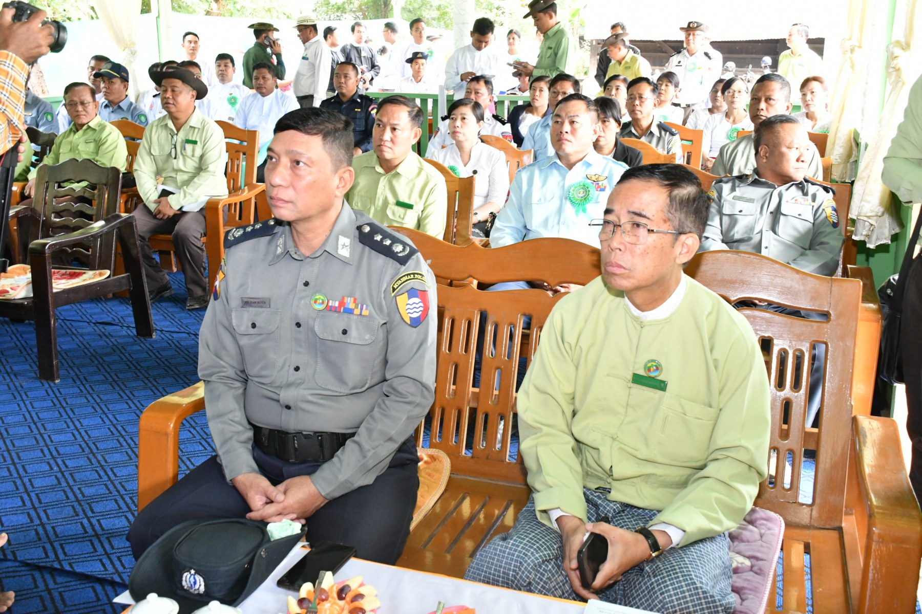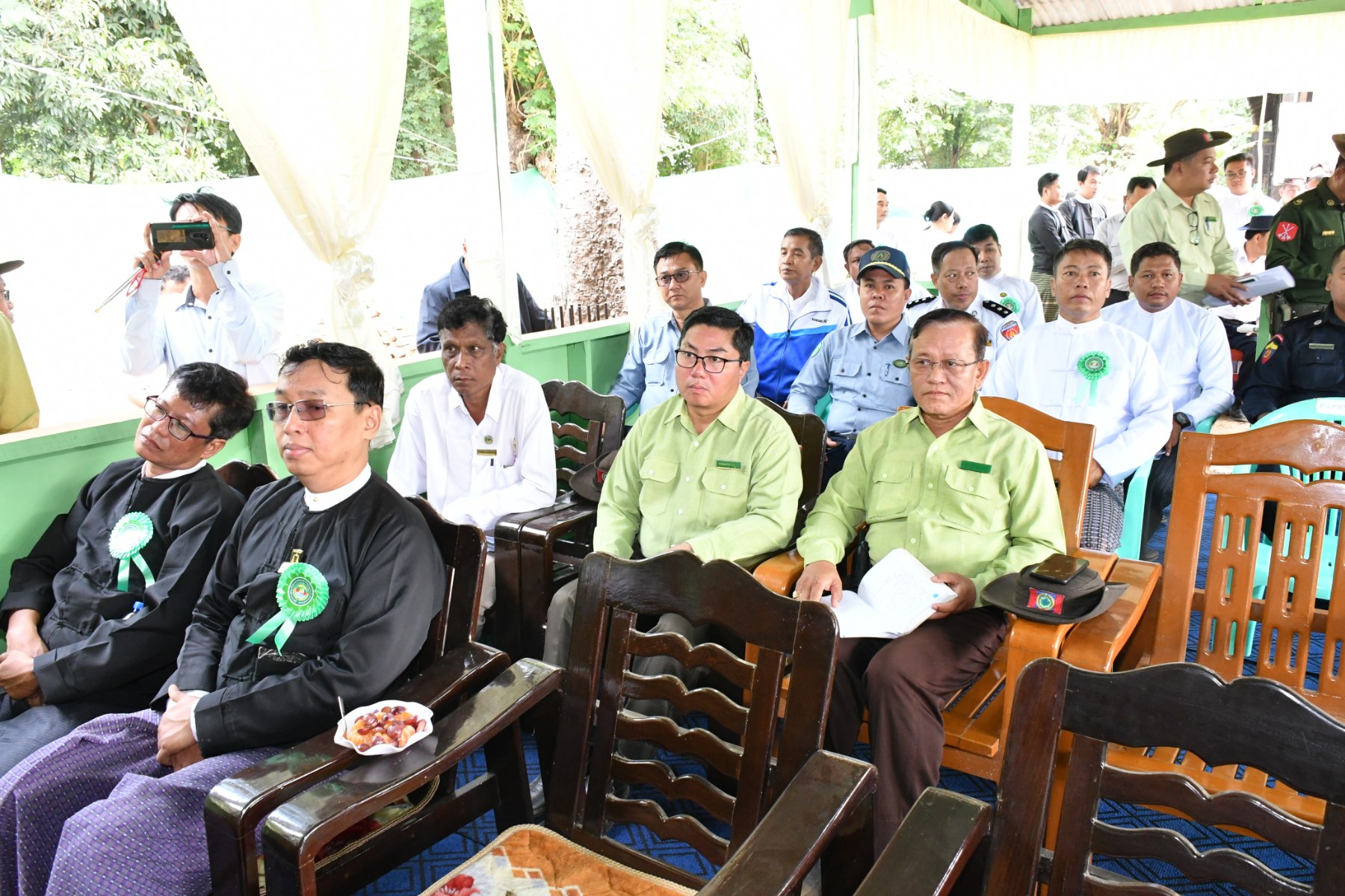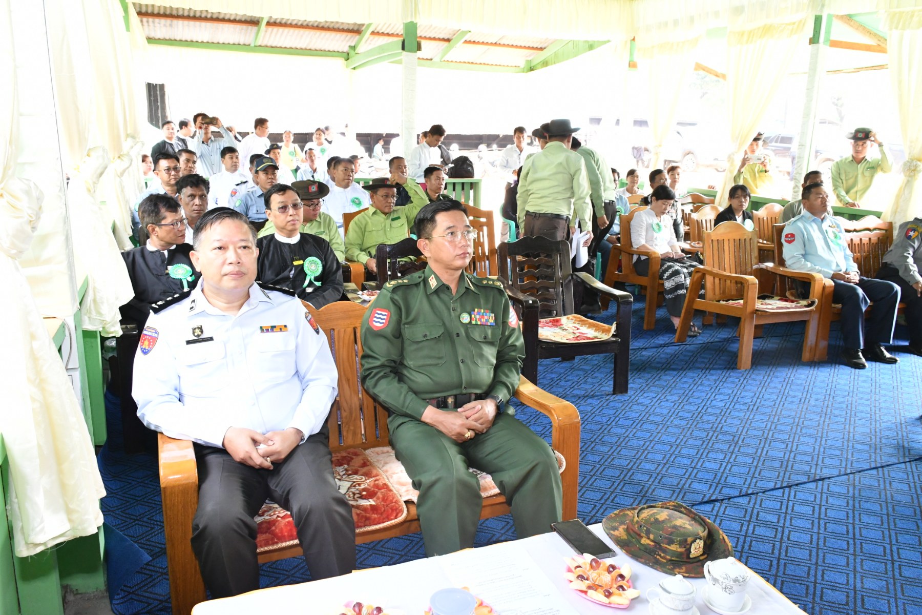 ၂၀၂၃-၂၀၂၄ ဘဏ္ဍာရေးနှစ် တိုင်းဒေသကြီးအစိုးရအဖွဲ့ ရန်ပုံငွေဖြင့် ဆောင်ရွက်သော မြန်အောင်ခရိုင်စုပေါင်းရုံး R.C.C သုံးထပ်အဆောက်အဦ ဆောက်လုပ်လုပ်ရန် မြေနေရာပန္နက်တင်မင်္ဂလာအခမ်းအနားကို ယနေ့နံနက်ပိုင်းက အဆိုပါစုပေါင်းရုံးဆောက်လုပ်မည့် မြေနေရာ၌ ပြုလုပ်ခဲ့ရာ အခမ်းအနားသို့ တိုင်းဒေသကြီးဝန်ကြီးချုပ်၊ အစိုးရအဖွဲ့ဝင် ဝန်ကြီးများ၊ ဌာနဆိုင်ရာများ တက်ရောက်ခဲ့ကြသည်။