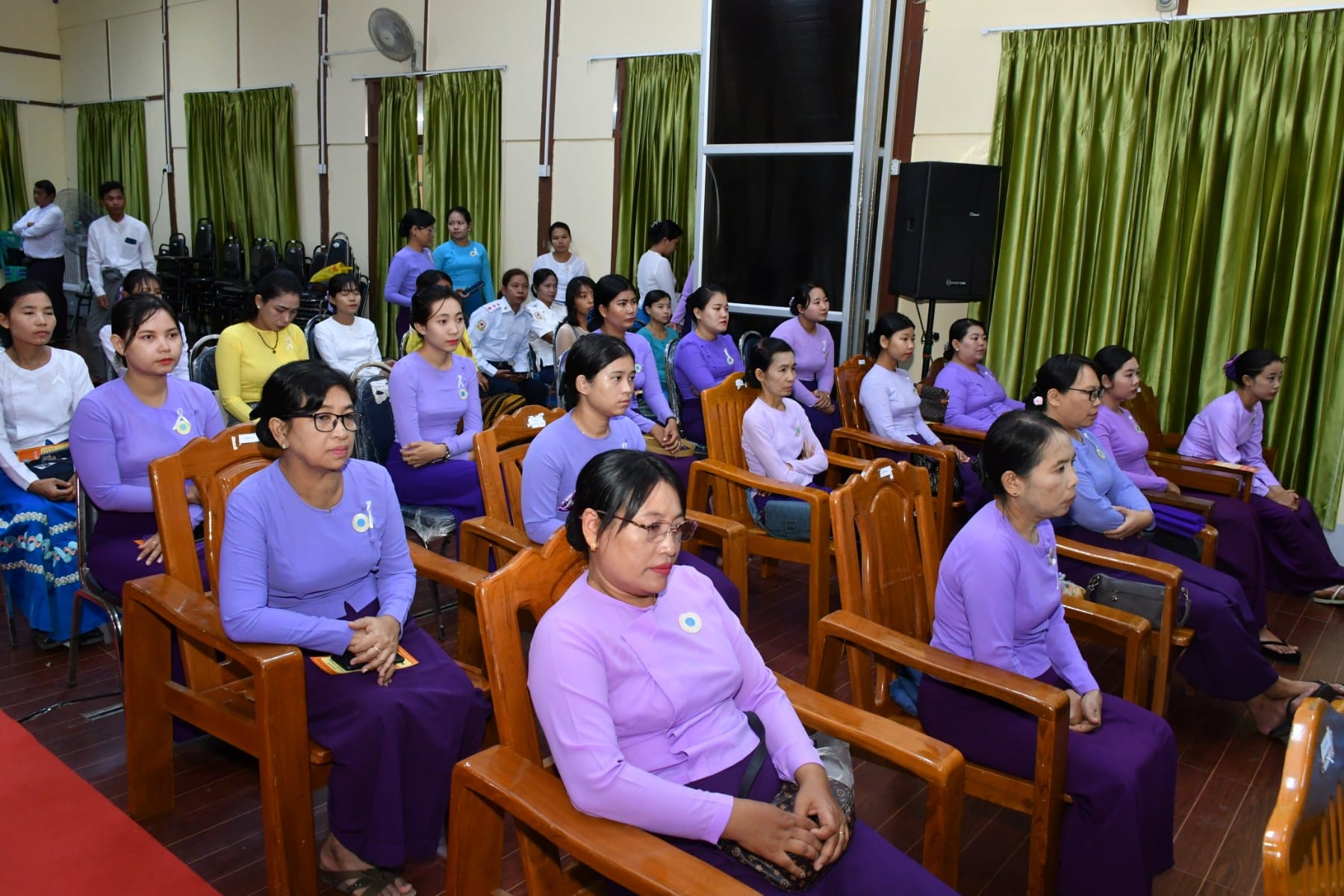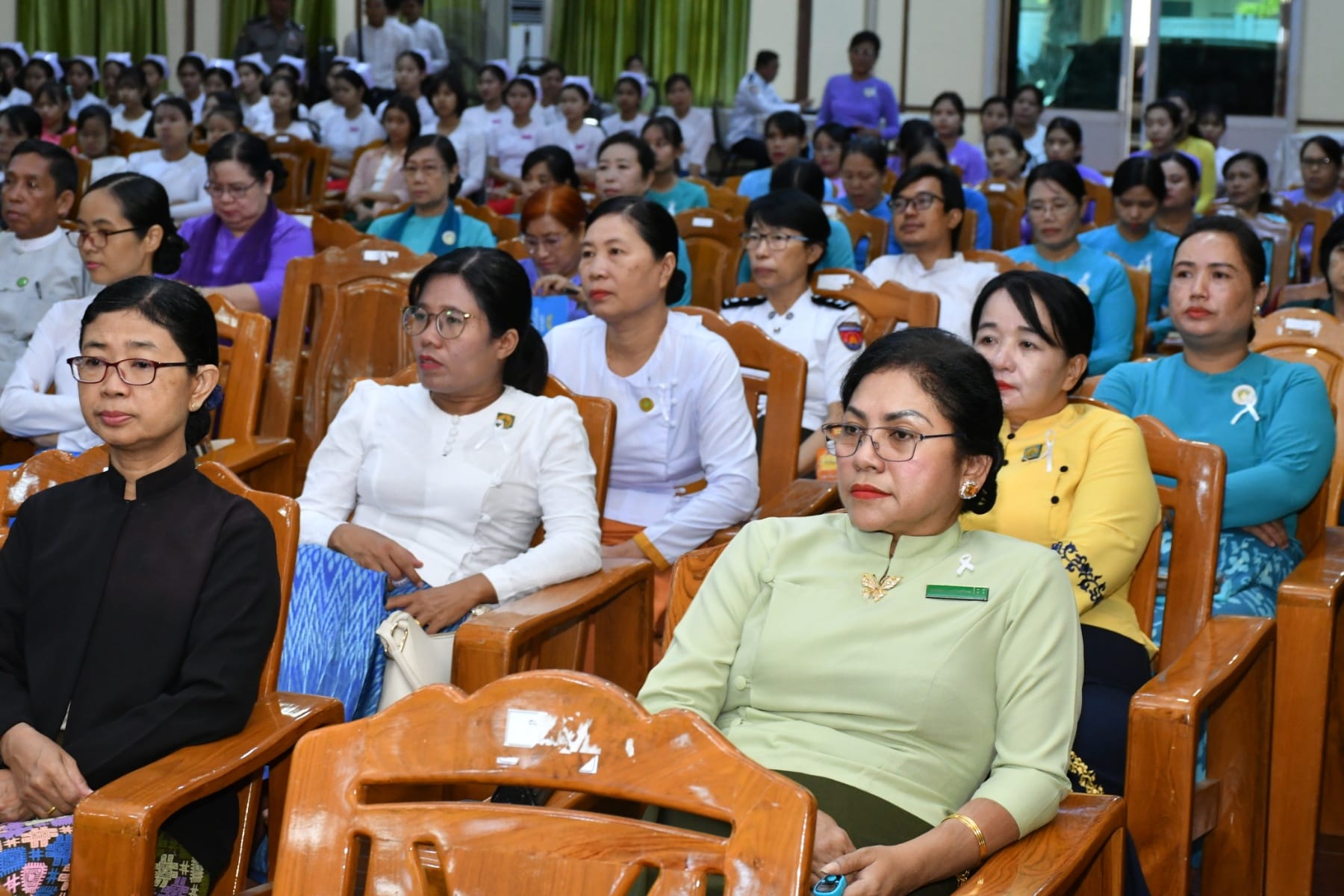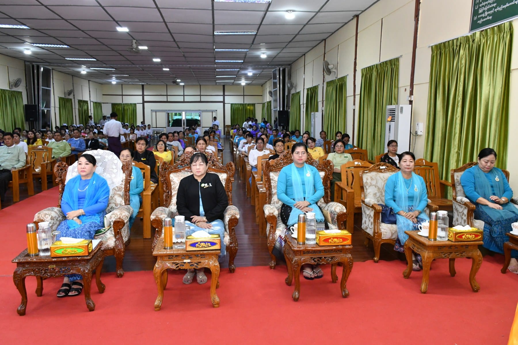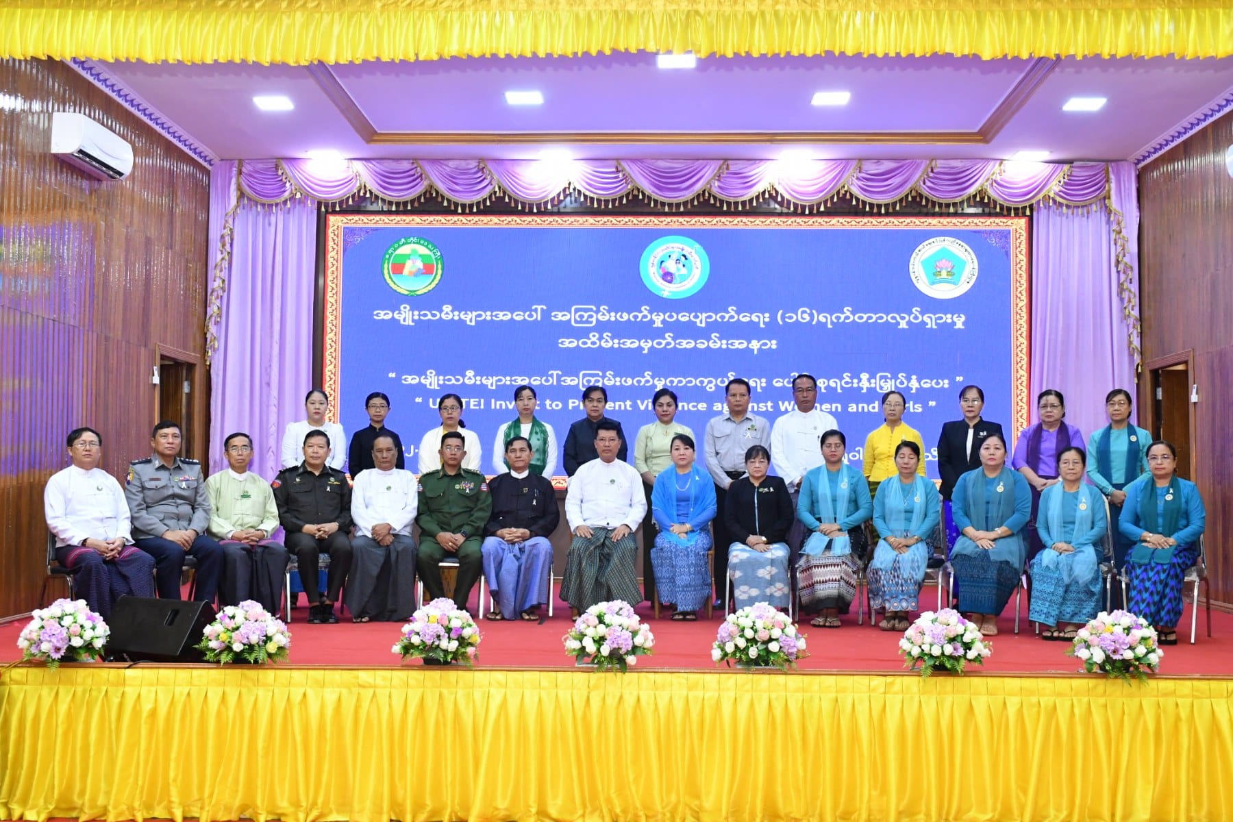 အမျိုးသမီးများအပေါ် အကြမ်းဖက်မှုပပျောက်ရေး (၁၆)ရက်တာလှုပ်ရှားမှု အထိမ်းအမှတ်အခမ်းအနားကို ယနေ့နံနက်ပိုင်းက ပုသိမ်မြို့၊ ဧရာရွှေဝါခန်းမတွင် ပြုလုပ်ခဲ့ရာ အခမ်းအနားသို့ တိုင်းဒေသကြီးဝန်ကြီးချုပ် ဦးတင်မောင်ဝင်းနှင့်ဇနီး၊ အစိုးရအဖွဲ့ဝင်ဝန်ကြီးများနှင့်ဇနီးများ၊ ဌာနဆိုင်ရာများနှင့် လူမှုရေးအသင်းအဖွဲ့များ တက်ရောက်ခဲ့ကြသည်။