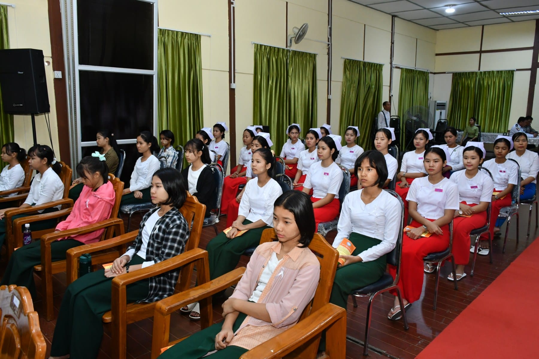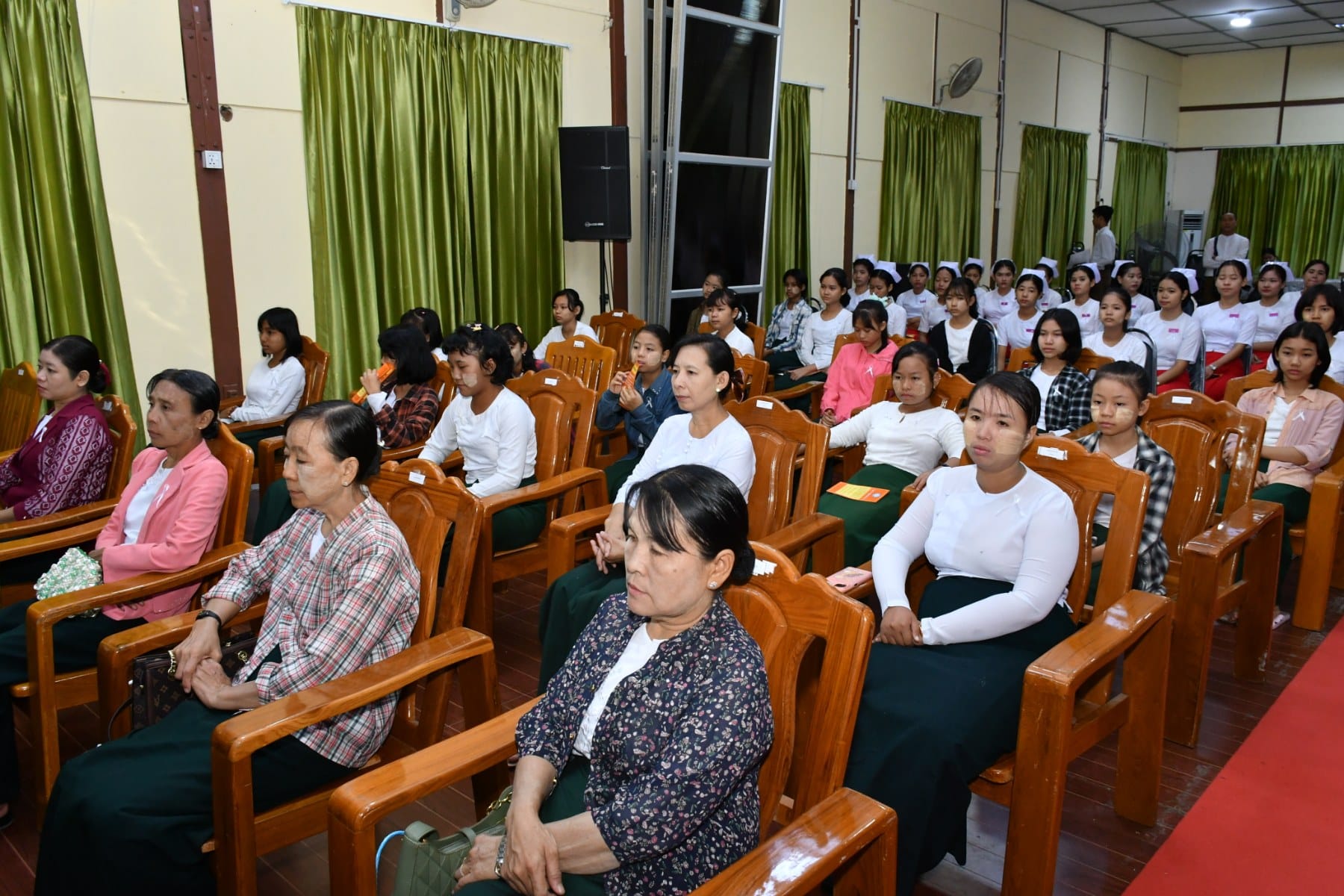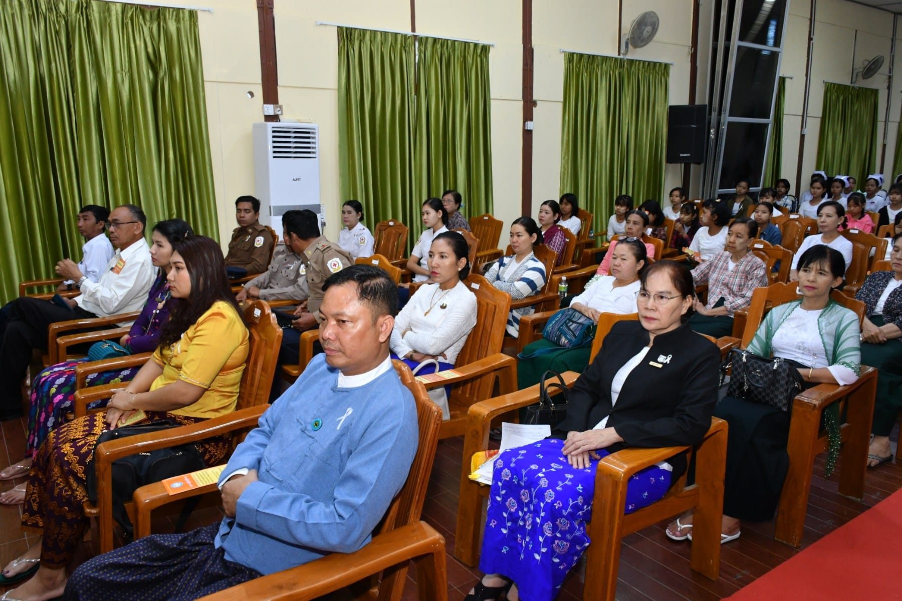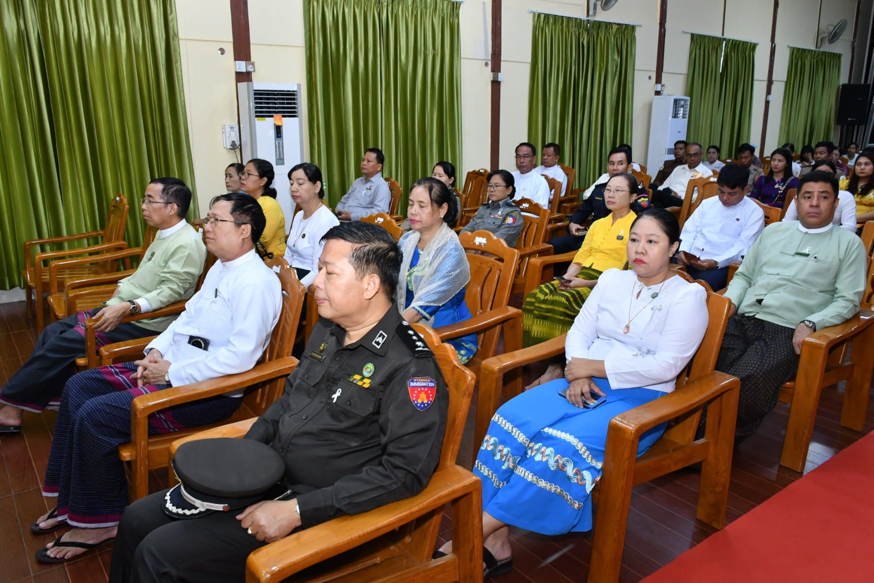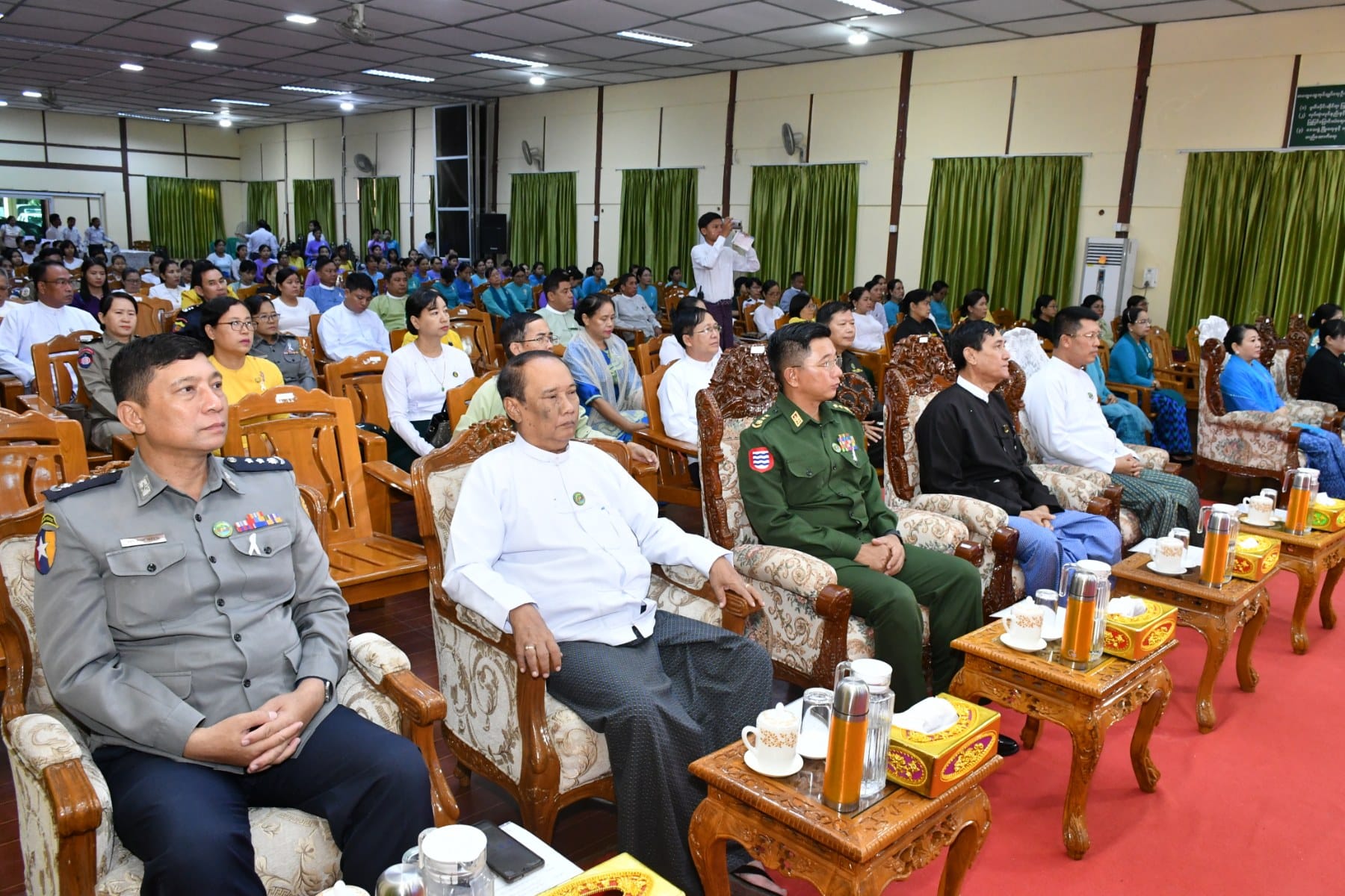အမျိုးသမီးများအပေါ် အကြမ်းဖက်မှုပပျောက်ရေး (၁၆)ရက်တာလှုပ်ရှားမှု အထိမ်းအမှတ်အခမ်းအနားကို ယနေ့နံနက်ပိုင်းက ပုသိမ်မြို့၊ ဧရာရွှေဝါခန်းမတွင် ပြုလုပ်ခဲ့ရာ အခမ်းအနားသို့ တိုင်းဒေသကြီးဝန်ကြီးချုပ် ဦးတင်မောင်ဝင်းနှင့်ဇနီး၊ အစိုးရအဖွဲ့ဝင်ဝန်ကြီးများနှင့်ဇနီးများ၊ ဌာနဆိုင်ရာများနှင့် လူမှုရေးအသင်းအဖွဲ့များ တက်ရောက်ခဲ့ကြသည်။