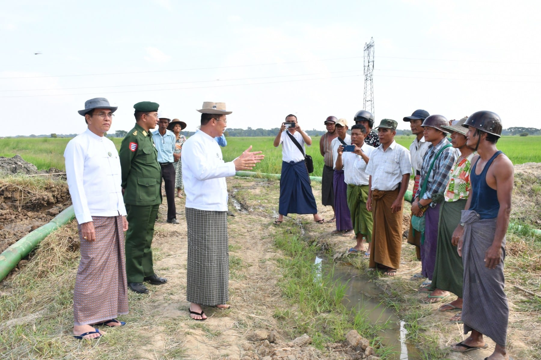 ဧရာဝတီတိုင်းဒေသကြီးအစိုးရအဖွဲ့ ဝန်ကြီးချုပ် ဦးတင်မောင်ဝင်းသည် ဒီဇင်ဘာလ ၇ရက် နေ့ မွန်းလွဲပိုင်းတွင် အစိုးရအဖွဲ့ဝင်များ၊ တိုင်း၊ ခရိုင်၊ မြို့နယ်ဌာနဆိုင်ရာများနှင့်အတူ ကျောင်းကုန်းမြို့နယ်၊ ဂုံမင်းကျေးရွာအုပ်စုတွင် လယ်ဧက ၃၅၀ ဧကအားအကျိုးပြုမည့် ရှင်ပြန်မြောင်းမှ လယ်တီစုရွာဖျားအထိ ကားလမ်းဘေးဝဲယာ မြောင်းတူးဖော်ခြင်းလုပ်ငန်းဆောင်ရွက်နေမှုအားကြည့်ရှုစစ်ဆေးခဲ့သည်။
