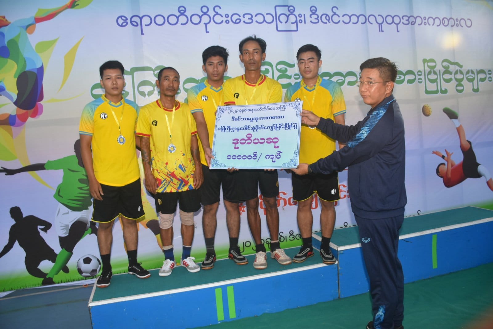 ထို့နောက် ဆုချီးမြှင့်ပွဲအခမ်းအနားကို ဆက်လက်ပြုလုပ်ရာ ဒုတိယဆုရရှိသည့် အသင်းအား တစ်ဦးချင်းဆုတံဆိပ်နှင့် ငွေသားဆုကို လုံခြုံရေးနှင့်နယ်စပ်ရေးရာဝန်ကြီးကလည်းကောင်း၊ ပထမဆုရရှိသည့် အသင်းအား တစ်ဦးချင်းဆုတံဆိပ်နှင့် ငွေသားဆုကို တိုင်းဒေသကြီးဝန်ချုပ်ကလည်းကောင်း ဆုများအသီးသီးချီးမြှင့်ခဲ့ကြကြောင်းသိရသည်။ တိုင်းဒေသကြီး အစိုးရအဖွဲ့အနေဖြင့် ဘောလုံး၊ ဘော်လီဘောပြိုင်ပွဲများကိုလည်း ပြုလုပ်လျက်ရှိကြောင်း သိရသည်။