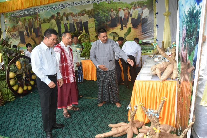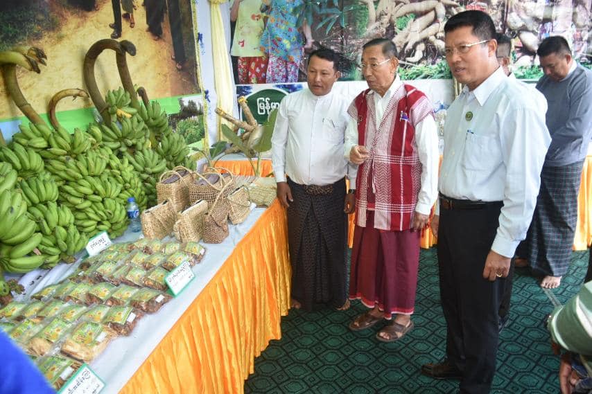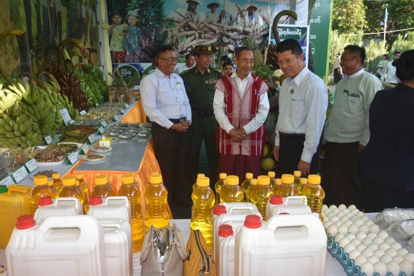 ဦးစွာ နိုင်ငံတော်စီမံအုပ်ချုပ်ရေးကောင်စီအဖွဲ့ဝင် မန်းငြိမ်းမောင် ၊ တိုင်းဒေသကြီး ဝန်ကြီးချုပ်နှင့် အစိုးရအဖွဲ့ဝင် ဝန်ကြီးများသည် GBS ကုမ္ပဏီမှပြသထားသည့် စက်ပစ္စည်းအရောင်းပြခန်း၊ ကျုံပျော်မြို့နယ်မှပြသထားသည့် မြန်မာ့ပီလောပီနံနှင့် ပီလောပီနံ ကော်မှုန့်ပါဝင်သည့် လူသုံးကုန်၊ စားသောက်ကုန်၊ ပီလောပီနံ ပျော့ဖတ်တိရစ္ဆာန်အစာ၊ ပီလောပီနံမှထုတ်လုပ်သောသဘာဝမြေဩဇာ၊ ငှက်ပျောနှင့် ငှက်ပျော်ချည်ဖြင့်ပြုလုပ်သည့် လက်မှုထည်များ၊ ဒေသထွက်ထုတ်ကုန်များပြခန်း၊ ကျောင်းကုန်းမြို့နယ်မှပြသထားသည့် ကြက်အူချောင်း၊ ဝက်အူချောင်း၊ ဆီထွက်ကုန်ပစ္စည်းများ၊ ဆန်နှင့်ထွက်ကုန်ပစ္စည်းများပြခန်း၊ ငါးလုပ်ငန်းဦးစီးဌာန၊ မွေးမြူရေးနှင့်ကုသရေးဦးစီးဌာနပြခန်း၊ ရေကြည်မြို့နယ်မှပြသထားသည့် ဒေသထွက်ကြိမ်၊ ဝါး၊ ဗေဒါ လက်မှုပစ္စည်းများ၊ နုထွေးလက်ဖက်နှင့်ဂျင်းသုပ်လုပ်ငန်းမှ ထုတ်ကုန်ပစ္စည်းများပြခန်းများကို လှည့်လည်ကြည့်ရှုအားပေးခဲ့ပြီး ဒေသထွက်ကုန်ပစ္စည်းများအား တိုးတက်ထုတ်လုပ်နိုင်ရေးနှင့် ပြည်တွင်းဈေးကွက်သာမက ပြည်ပဈေးကွက်အထိ တင်ပို့ရောင်းချနိုင်ရေး မှာကြားခဲ့သည်။