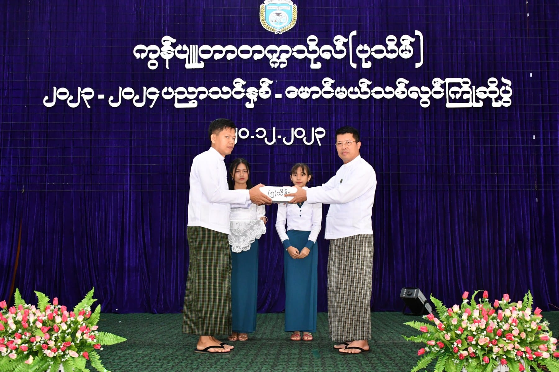 ဆက်လက်၍ တိုင်းဒေသကြီးဝန်ကြီးချုပ်က ကွန်ပျူတာတက္ကသိုလ်(ပုသိမ်)အတွက် ဂုဏ်ပြုထောက်ပံ့ငွေများ ပေးအပ်ချီးမြှင့်ခဲ့ရာ ဒုတိယပါမောက္ခချုပ်က လက်ခံရယူခဲ့ပါသည်။ ထို့နောက် ကွန်ပျူတာတက္ကသိုလ်(ပုသိမ်)ဒုတိယပါမောက္ခချုပ်က ကျေးဇူးတင်စကားပြောကြားခဲ့ပြီး တိုင်းဒေသကြီးဝန်ကြီးချုပ်နှင့် ဧည့်သည်တော်များသည် ကွန်ပျူတာတက္ကသိုလ်(ပုသိမ်)မှ ကျောင်းသား၊ ကျောင်းသူများ၏ တေးသီချင်းများဖြင့် သီဆိုကပြဖျော်ဖြေမှုများကို ကြည့်ရှုအားပေးခဲ့ပါသည်။