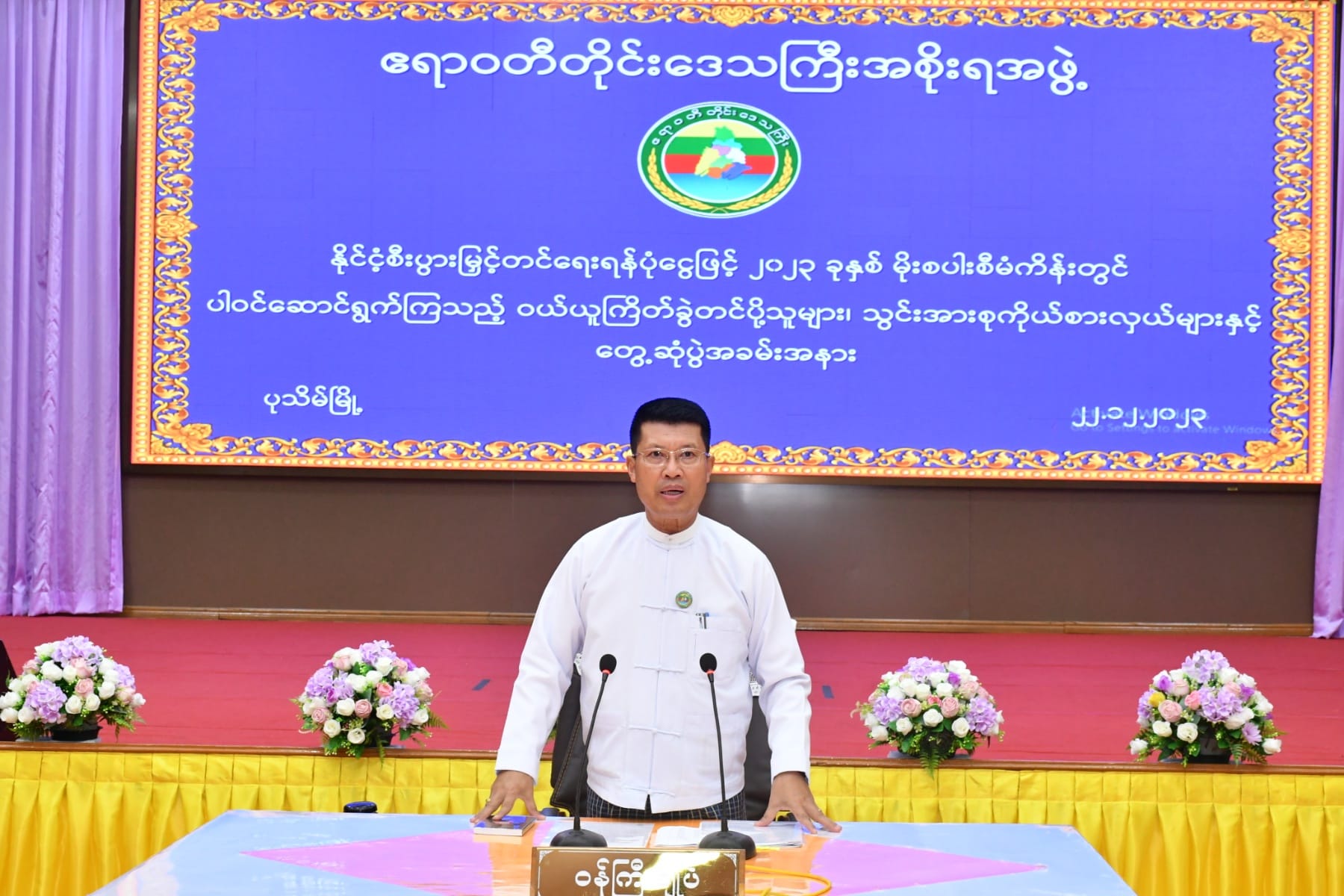 တွေ့ဆုံပွဲအခမ်းအနားတွင် တိုင်းဒေသကြီးဝန်ကြီးချုပ်က“ နိုင်ငံ့စီးပွားမြှင့်တင်ရေး ရန်ပုံငွေ (၈၆)ဘီလီယံဖြင့် ယခင်နှစ်နွေစပါးရာသီမှစ၍ တောင်သူများထံသို့ နှစ်သိန်းနှင့်ညီမျှသည့် သွင်းအားစုများ ထောက်ပံ့ပေးအပ်ခဲ့ပါကြောင်း၊ တောင်သူများထံသို့ နိုင်ငံ့စီးပွားမြှင့်တင်ရေး ရန်ပုံငွေဖြင့် သွင်းအားစုများထောက်ပံ့ပေးအပ်ခြင်းသည် တတိယအကြိမ်သို့ ရောက်ရှိပြီဖြစ်ပါကြောင်း၊ နိုင်ငံ့စီးပွားမြှင့်တင်ရေးရန်ပုံငွေဖြင့်ထောက်ပံ့ပေးခြင်းကြောင်း ဝယ်ယူကြိတ်ခွဲ တင်ပို့သူများ၊ သွင်းအားစုကိုယ်စားလှယ်များနှင့် တောင်သူများအတွက် များစွာအကျိုးရှိသည် ဖြစ်ပါကြောင်း၊ သွင်းအားစုထောက်ပံ့ငွေများကိုလည်း အချိန်မီပြန်လည်ပေးသွင်းကြရန်လိုကြောင်း၊ ကိုဗစ် ၁၉ ရောဂါဖြစ်ပွားသည့်ကာလအတွင်း တိုင်းဒေသကြီးတွင် သွင်းအားစုများ၊ ကုန်ကျစရိတ်ကြီးမြင့်မှုများကြုံတွေ့ခဲ့ရသဖြင့် စိုက်ပျိုးဧကများ လျော့နည်းခဲ့ပါကြောင်း၊ တိုင်းဒေသကြီးသည် နွေစပါးနှင့်မိုးစပါး ဧက(၅၂)သိန်းကျော်စိုက်ပျိုးလျက်ရှိပြီး စိုက်ပျိုးသီးနှံများ ပန်းတိုင်အထွက်နှုန်းရရှိအောင် ဆောင်ရွက်နေသကဲ့သို့ ပဲမျိုးစုံဧက(၁၆) သိန်းကျော် စိုက်ပျိုးလျက်ရှိပါကြောင်း၊ တောင်သူများအနေဖြင့်လည်း အထွက်တိုးမျိုးကောင်းမျိုးသန့်များ ပြောင်းလဲ အသုံးခြင်း၊ စိုက်နည်းစနစ်များပြောင်းလဲစိုက်ပျိုးခြင်း၊ သဘာဝမြေဩဇာများနှင့်ဓါတ်မြေသြဇာများ အချိုးကျသုံးစွဲခြင်းများကိုလည်း ဆောင်ရွက်ရမည်ဖြစ်ပါကြောင်း၊ နွေစပါးစိုက်ပျိုးရာတွင် အောင်ရေရရှိရေးအတွက် ဆောင်ရွက်ပေး လျက်ရှိပါကြောင်း၊ ဆီဖူလုံမှုရှိစေရေးအတွက် ဆီထွက်သီးနှံများကိုလည်းတိုးချဲ့စိုက်ပျိုးလျက်ရှိပါကြောင်း၊ စပါးအထွက်နှုန်းများကိုလည်း စပါး အမျိုးအစားလိုက် စနစ်တကျမှတ်တမ်းထားရှိရန်လိုပါကြောင်းနှင့် ဝယ်ယူကြိတ်ခွဲတင်ပို့သူများ၊ သွင်းအားစုကိုယ်စားလှယ်များကလည်း ပူးပေါင်းဆောင်ရွက်ရန်လိုပါကြောင်း၊ တွေ့ဆုံပွဲသို့ တက်ရောက်လာသူများအနေဖြင့် စိုက်ပျိုးရေး စံပြတိုင်းဒေသကြီးဖြစ်စေရေးအတွက် ဝိုင်းဝန်းဆွေးနွေးပေးကြစေလိုကြောင်း” အမှာစကားပြောကြားသည်။