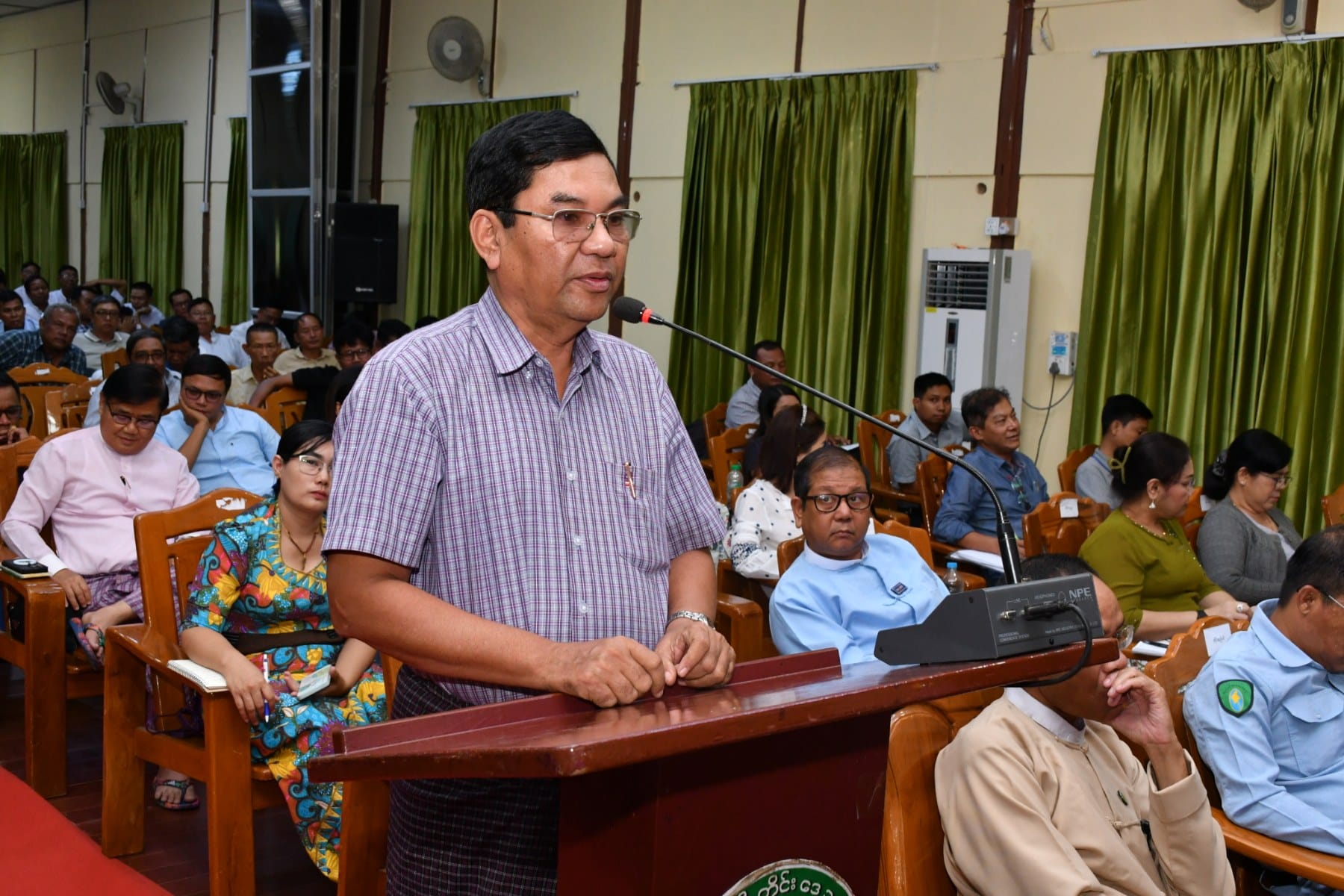 နိုင်ငံ့စီးပွားမြှင့်တင်ရေးရန်ပုံငွေဖြင့် ၂၀၂၃ခုနှစ်၊ မိုးစပါးစီမံကိန်းတွင် ပါဝင်ဆောင်ရွက်ကြ သည့် ဝယ်ယူကြိတ်ခွဲတင်ပို့သူများ၊ သွင်းအားစုကိုယ်စားလှယ်များနှင့် တွေ့ဆုံပွဲအခမ်းအနားကို ယနေ့မွန်းလွဲပိုင်းက ပုသိမ်မြို့၊ ဧရာရွှေဝါခန်းမ၌ပြုလုပ်ရာ တွေ့ဆုံပွဲသို့ တိုင်းဒေသကြီး ဝန်ကြီးချုပ် ဦးတင်မောင်ဝင်း၊ တိုင်းဒေသကြီးအစိုးရအဖွဲ့ဝင်ဝန်ကြီးများ၊ ဌာနဆိုင်ရာများနှင့် ဝယ်ယူကြိတ်ခွဲတင်ပို့သူများ၊ သွင်းအားစုကိုယ်စားလှယ်များ တက်ရောက်ခဲ့ကြသည်။