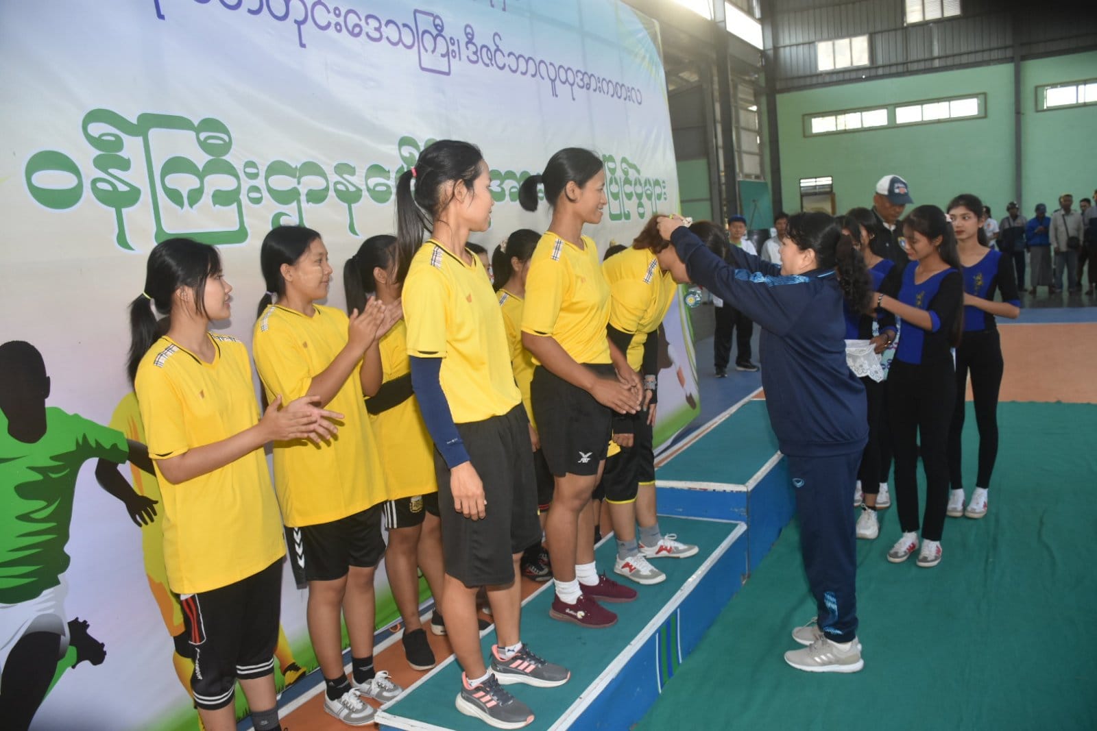 ဆက်လက်၍ တိုင်းဒေသကြီးဝန်ကြီးချုပ်နှင့် ဇနီး၊ အနောက်တောင်တိုင်းစစ်ဌာနချုပ် တိုင်းမှူးနှင့်ဇနီး၊ ပုသိမ် လေတပ်စခန်းဌာနချုပ်မှူးနှင့် ဇနီး၊ အစိုးရအဖွဲ့ဝင် ဝန်ကြီးများနှင့် ဇနီးများသည် ပုသိမ်မြို့၊ ကိုးသိန်းအားကစားကွင်း၌ပြုလုပ်သည့် ဒီဇင်ဘာလူထုအားကစားလ ဌာနပေါင်းစုံ ဘော်လီဘောပြိုင်ပွဲ(အမျိုးသမီး) ဗိုလ်လုပွဲစဉ် ယှဉ်ပြိုင်ကစား နေမှုများကို ကြည့်ရှုအားပေးခဲ့သည်။