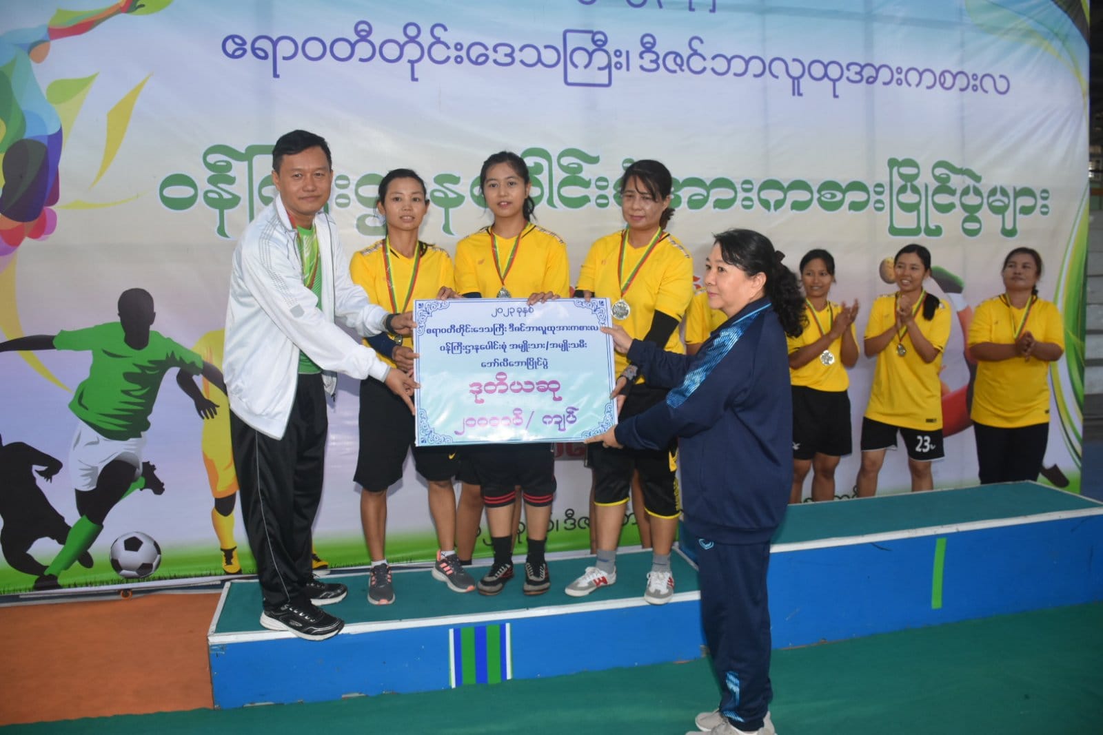 ထို့နောက် ဆုချီးမြှင့်ပွဲအခမ်းအနားကို ဆက်လက်ပြုလုပ်ရာ ဒုတိယဆုရရှိသည့် တိုင်းဒေသကြီးလူမှုရေးရာဝန်ကြီးဌာနအသင်းအား တစ်ဦးချင်းဆုတံဆိပ်နှင့်ငွေသားဆုကို တိုင်းဒေသကြီး ဝန်ကြီးချုပ်၏ ဇနီးကလည်းကောင်း၊ ပထမဆုရရှိသည့် တိုင်းဒေသကြီးလုံခြုံရေးနှင့်နယ်စပ်ရေးရာဝန်ကြီးဌာနအသင်းအား တစ်ဦးချင်းဆုတံဆိပ်နှင့် ငွေသားဆုကို တိုင်းဒေသကြီးဝန်ချုပ်ကလည်းကောင်း ဆုများချီးမြှင့်ခဲ့ကြပြီး လုံခြုံရေးနှင့်နယ်စပ်ရေးဝန်ကြီးနှင့် မီးသတ်ဦးစီးဌာန၊ တိုင်းဒေသကြီးဦးစီးမှူးတို့က ပထမဆုရရှိသည့်အသင်းအား ဂုဏ်ပြုချီးမြှင့်ငွေများ ထပ်မံချီးမြှင့်ခဲ့ကြသည်။