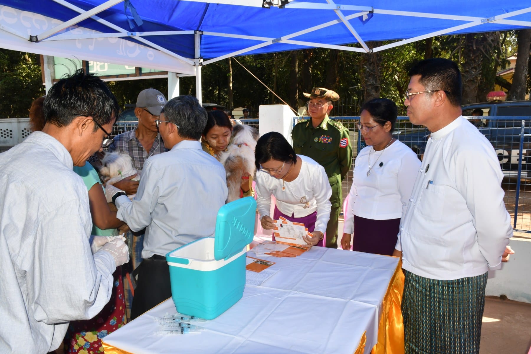 ထို့နောက် တိုင်းဒေသကြီးဝန်ကြီးချုပ်နှင့်အဖွဲ့သည် မြောင်းမြမြို့၊ မြစန္ဒာရပ်ကွက်အုပ်ချုပ်ရေးမှူးရုံး၌ မွေးမြူရေးနှင့်ကုသရေးဦးစီးဌာနမှ မြို့ပေါ်ရပ်ကွက်များရှိ အိမ်မွေးတိရိစ္ဆာန်ခွေးများအား ခွေးရူးရောဂါ ကာကွယ်ဆေးများထိုးနှံပေးနေမှုများကို ကြည့်ရှုအားပေးခဲ့ပြီး အိမ်မွေးတိရိစ္ဆာန် ခွေး၊ ကြောင်များကို ခွေးရူးရောဂါ၏အန္တရာယ်မှကာကွယ်ရန်အတွက် ကာကွယ်ဆေးထိုးနှံခြင်းလုပ်ငန်းကို ကျယ်ကျယ်ပြန့်ပြန့်အသိပညာပေး ဆောင်ရွက်ကြရန် မှာကြားခဲ့ပါသည်
