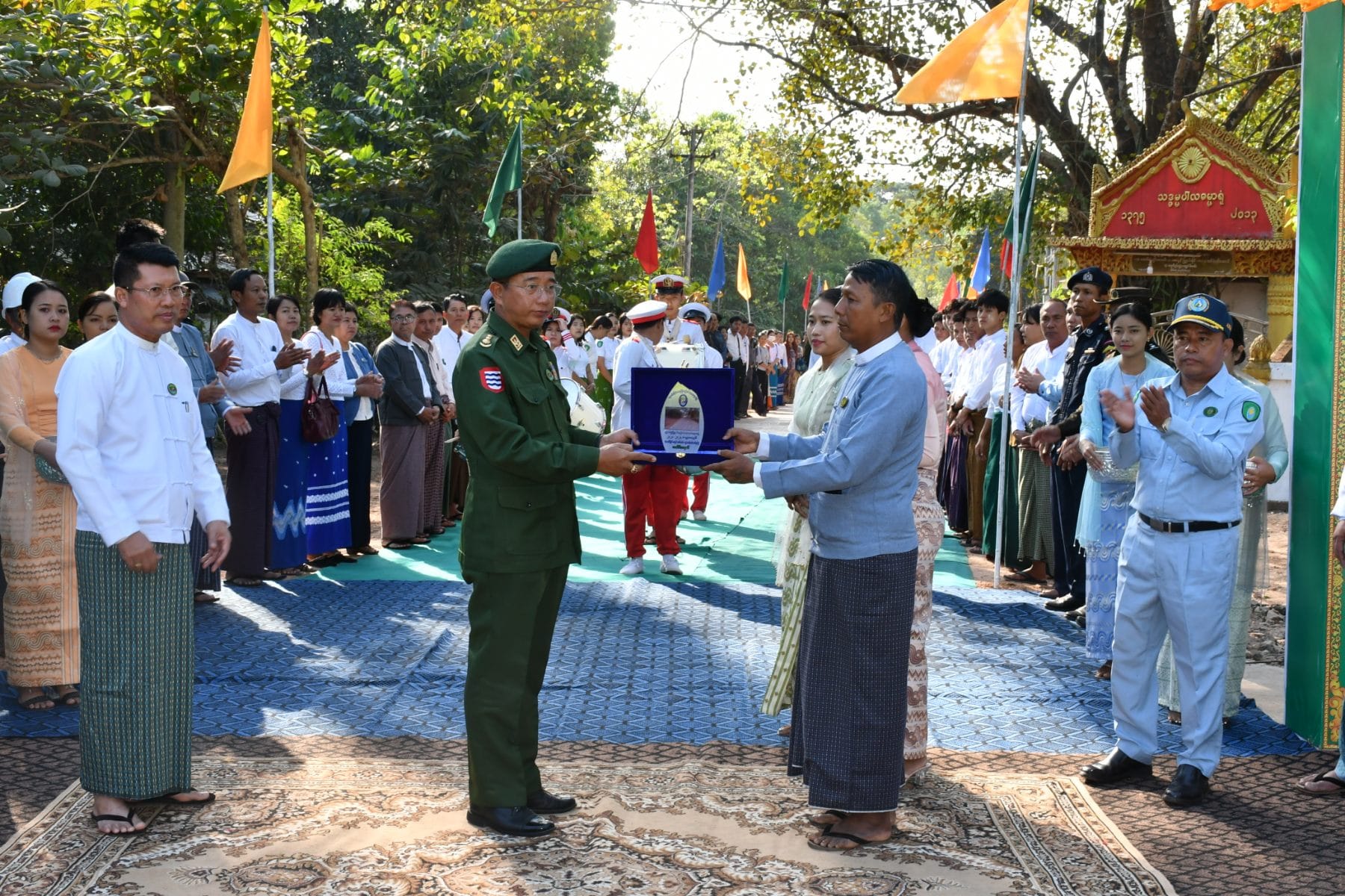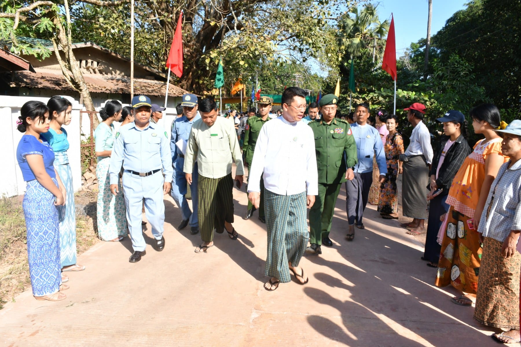 ထို့နောက် တိုင်းဒေသကြီးဝန်ကြီးချုပ်၊ လုံခြုံရေးနှင့်နယ်စပ်ရေးရာဝန်ကြီးထံသို့ တိုင်းဒေသကြီးစည်ပင်သာယာရေးအဖွဲ့ ခေတ္တညွှန်ကြားရေးမှူးနှင့် မြို့နယ်စည်ပင်သာယာရေးကော်မတီဥက္ကဋ္ဌတို့က ကွန်ကရစ်လမ်းသစ်ဖွင့်ပွဲ အထိမ်းအမှတ် အမှတ်တရလက်ဆောင်အား ပေးအပ်ခဲ့ပြီး တိုင်းဒေသကြီး ဝန်ကြီးချုပ်နှင့် တာဝန်ရှိသူများသည် ကွန်ကရစ်လမ်းသစ်အား လှည့်လည်ကြည့်ရှုစစ်ဆေးခဲ့သည်။