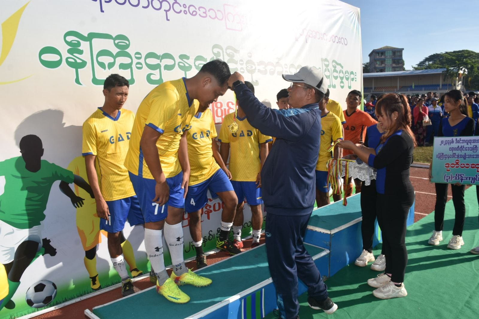 တိုင်းဒေသကြီးဝန်ကြီးချုပ်နှင့် ဇနီး၊ အစိုးရအဖွဲ့ဝင် ဝန်ကြီးများနှင့် ဇနီးများ၊ ဌာနဆိုင်ရာများသည် ပုသိမ်မြို့၊ ကိုးသိန်းအားကစားကွင်းတွင်ပြုလုပ်သည့် ဒီဇင်ဘာလူထုအားကစားလ ဌာနပေါင်းစုံ ဘောလုံးပြိုင်ပွဲ ဗိုလ်လုပွဲစဉ်အဖြစ် ဧရာဝတီတိုင်းဒေသကြီးအထွေထွေအုပ်ချုပ်ရေးဦးစီးဌာနအသင်းနှင့်လုံခြုံရေးနှင့်နယ်စပ်ရေးရာဝန်ကြီးဌာနအသင်းတို့ ယှဉ်ပြိုင်ကစား နေမှုများကို ကြည့်ရှုအားပေးခဲ့သည်။
