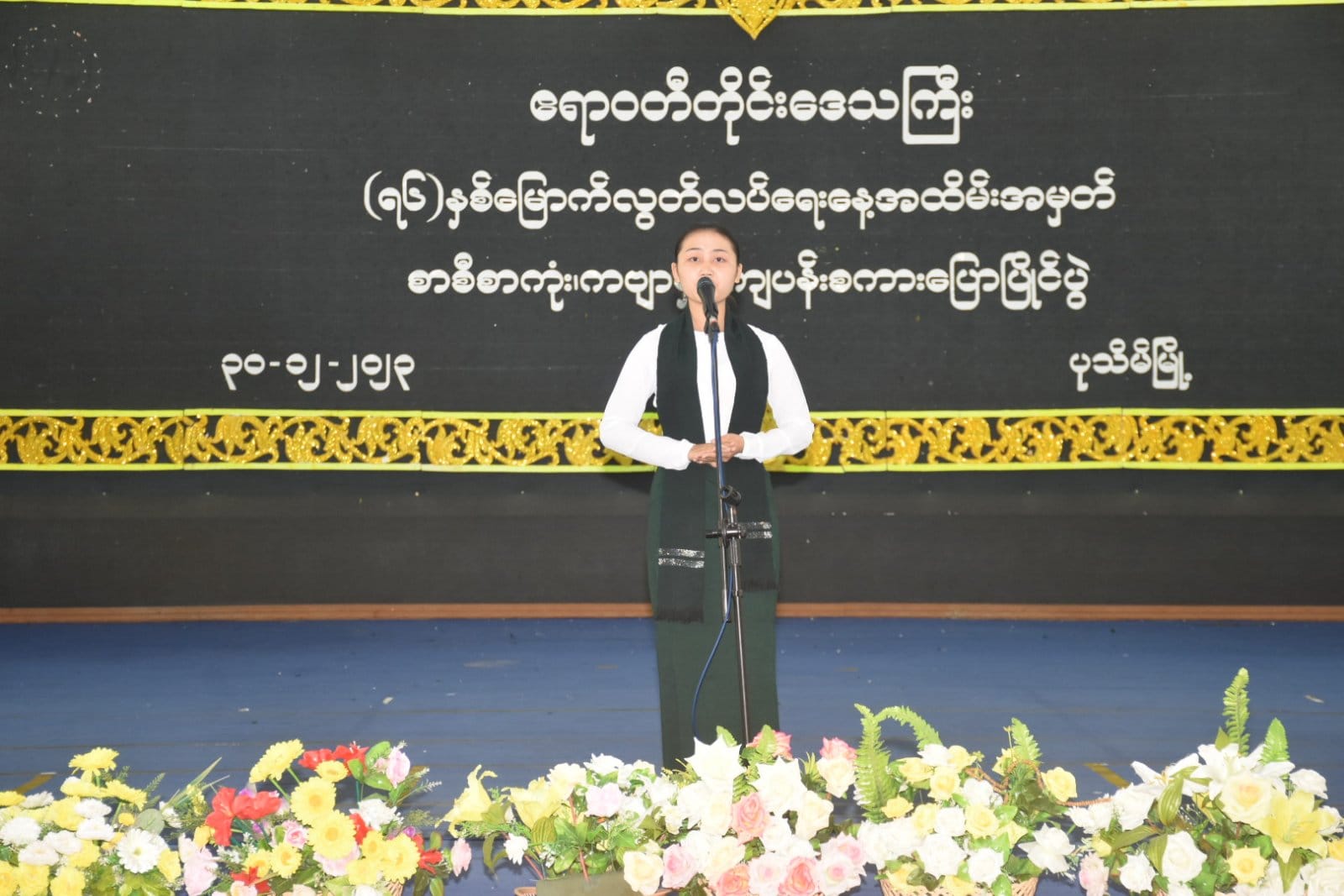 ယင်းနောက် တိုင်းဒေသကြီး ဝန်ကြီးချုပ်နှင့်အဖွဲ့သည် ပုသိမ်မြို့၊ အမှတ်(၁)အခြေခံပညာအထက်တန်းကျောင်း၊ ရတနာတန်ဆောင်ခန်းမ၌ ပြုလုပ်သည့် (၇၆)နှစ်မြောက်လွတ်လပ်ရေးနေ့အထိမ်းအမှတ် (အထက်တန်းအဆင့်) စာစီစာကုံး၊ ကဗျာနှင့် ကျပန်းစကားပြောပြိုင်ပွဲ တွင် ကျောင်းသား၊ ကျောင်းသူများ ပါဝင်ယှဉ်ပြိုင်နေမှုများကို ကြည့်ရှုအားပေးခဲ့ပါသည်။