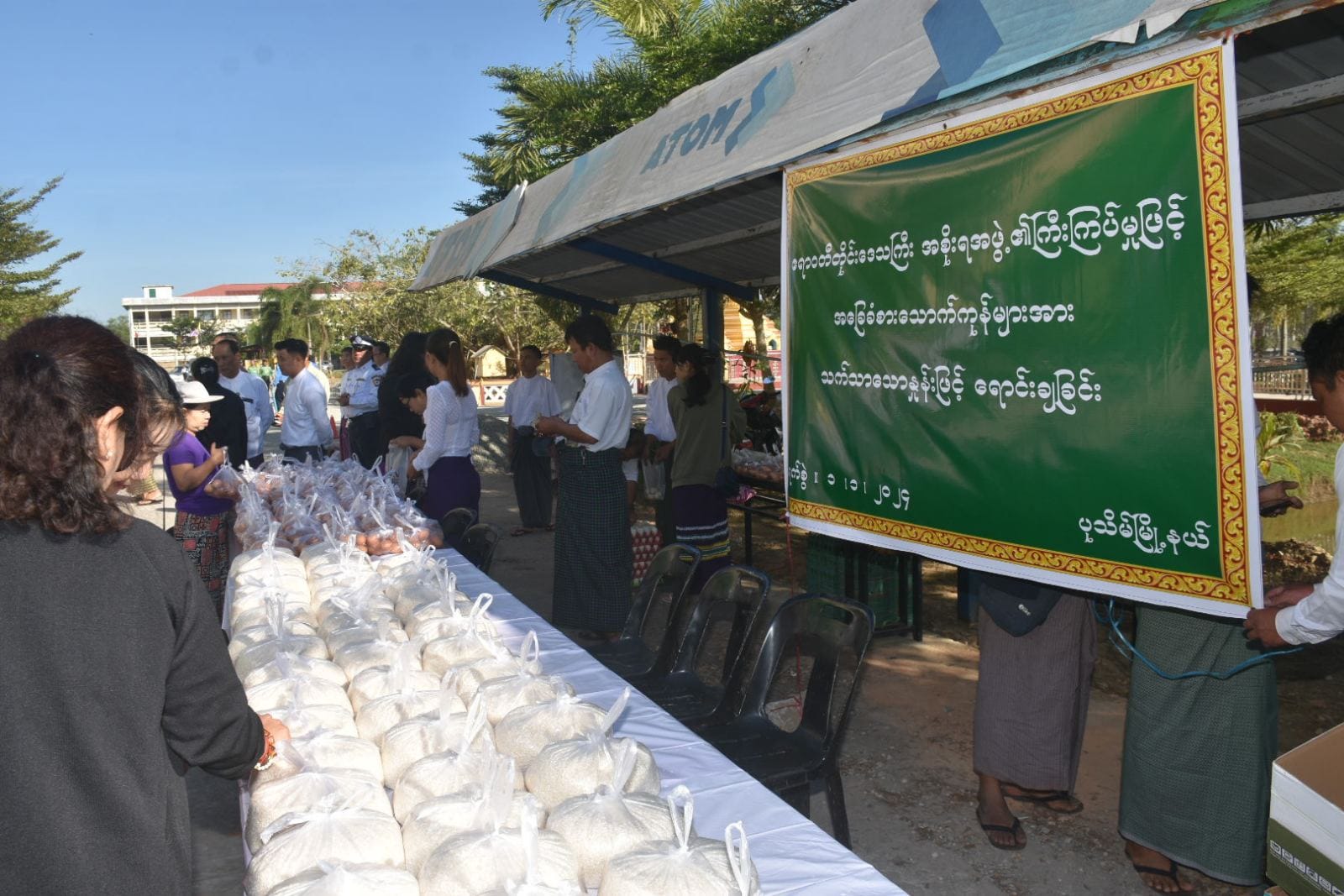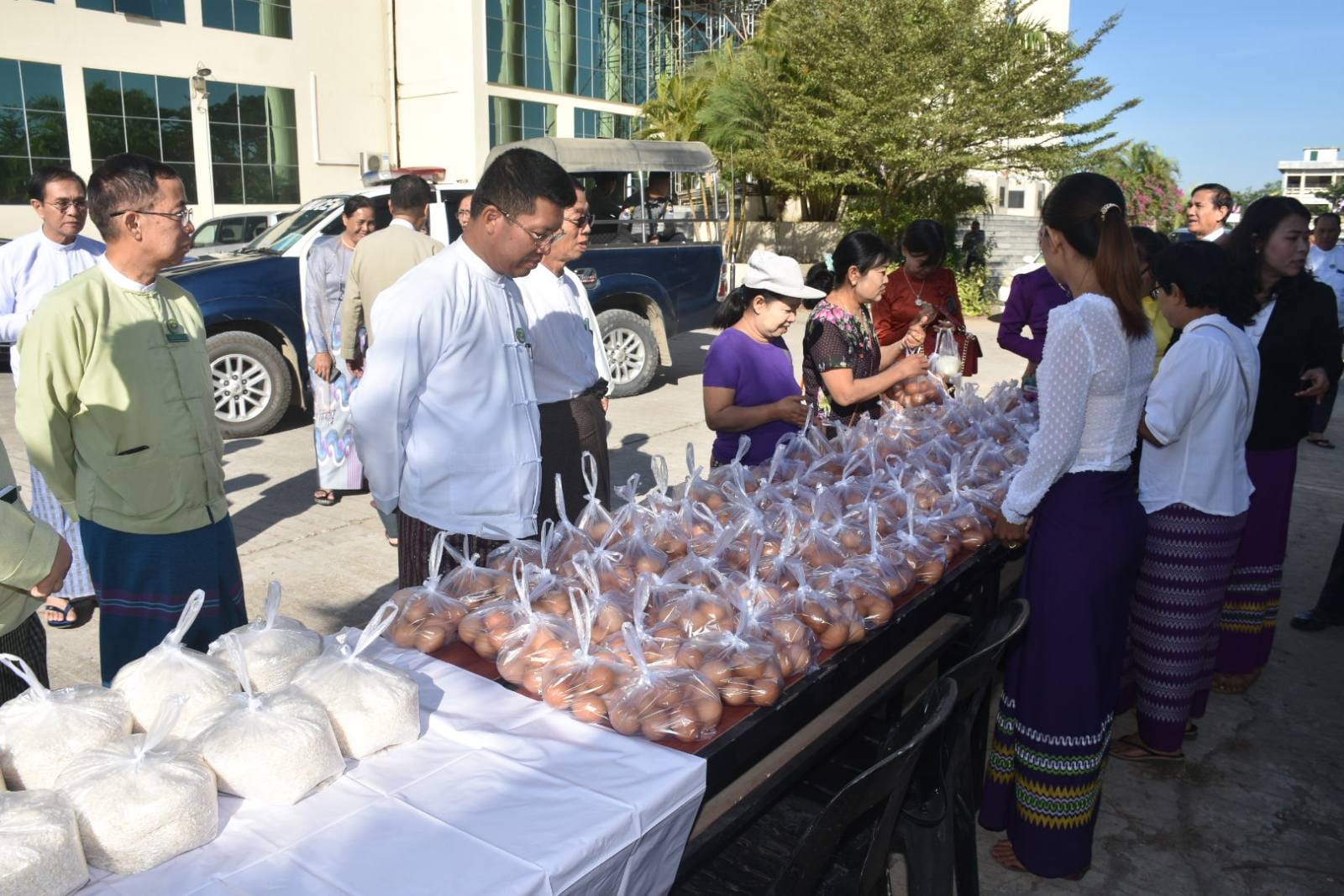 ထို့နောက် တိုင်းဒေသကြီးဝန်ကြီးချုပ်နှင့်အဖွဲ့သည် ဧရာဝတီတိုင်းဒေသကြီးအစိုးရအဖွဲ့၏ လမ်းညွှန်မှုဖြင့် ခရိုင်စီမံအုပ်ချုပ်ရေးအဖွဲ့နှင့် မြို့နယ်စီမံအုပ်ချုပ်ရေးအဖွဲ့မှကြီးကြပ်၍ မြို့နယ်ဆန်စက်ပိုင်အသင်း၊ မြို့နယ်ဆန်ကုန်သည်များ အသင်းတို့မှ ဆန်တစ်ပြည်လျှင် (၂၆၀၀)ကျပ်နှုန်းဖြင့်လည်းကောင်း၊ မွေးမြူရေးနှင့်ကုသရေးဦးစီးဌာနမှ ကြက်ဥ (၁၀)လုံးလျှင် (၂၂၀၀)ကျပ်နှုန်းဖြင့်လည်းကောင်း၊ ဘဲဥ (၁၀)လုံးလျှင် (၂၈၀၀) ကျပ်နှုန်းဖြင့် လည်းကောင်း၊ မြန်မာနိုင်ငံဆီကုန်သည်နှင့် ဆီလုပ်ငန်းရှင်များအသင်း အစီအစဉ်ဖြင့် ပုသိမ်ခရိုင်ဆီကုန်သည်နှင့် ဆီလုပ်ငန်းရှင်များအသင်းတို့မှ စားအုန်းဆီ ၁ ပိသာ ၅၅၀၀ ကျပ်နှုန်းဖြင့် တစ်ဦးလျှင် ဆီ(၅၀)သားနှုန်းဖြင့်လည်းကောင်း ပုသိမ်တက္ကသိုလ်အတွင်းရှိ ဝန်ထမ်းများအား ရောင်းချပေးနေ မှုများကို ကြည့်ရှုစစ်ဆေးခဲ့ပြီး ဝန်ထမ်းများဝယ်ယူရာ တွင်စနစ်တကျ ရှိစေရေး၊ ဆန်၊ ဆီ စသည့် အခြေခံစားကုန်များအား သက်သာသောဈေးနှုန်းများဖြင့် ရောင်းချပေးနိုင်ရေး ဌာနဆိုင်ရာများ၊ လုပ်ငန်းရှင်များ ပူးပေါင်းဆောင်ရွက်ကြရန်မှာကြားခဲ့သည်။