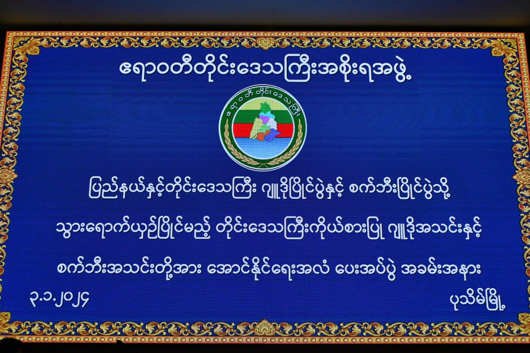 ပြည်နယ်နှင့်တိုင်းဒေသကြီး ဂျုဒိုပြိုင်ပွဲနှင့် စက်ဘီးပြိုင်ပွဲသို့ ဝင်ရောက်ယှဉ်ပြိုင်မည့် တိုင်းဒေသကြီးကိုယ်စားပြု ဂျုဒိုအသင်းနှင့် စက်ဘီးအသင်းတို့အားအောင်နိုင်ရေးအလံပေးအပ်ပွဲ အခမ်းအနားကို ယနေ့မွန်းလွဲပိုင်းက တိုင်းဒေသကြီးအစိုးရအဖွဲ့ရုံး ၊ အစည်းအဝေး ခန်းမ(၁)တွင် ပြုလုပ်ခဲ့သည်။
