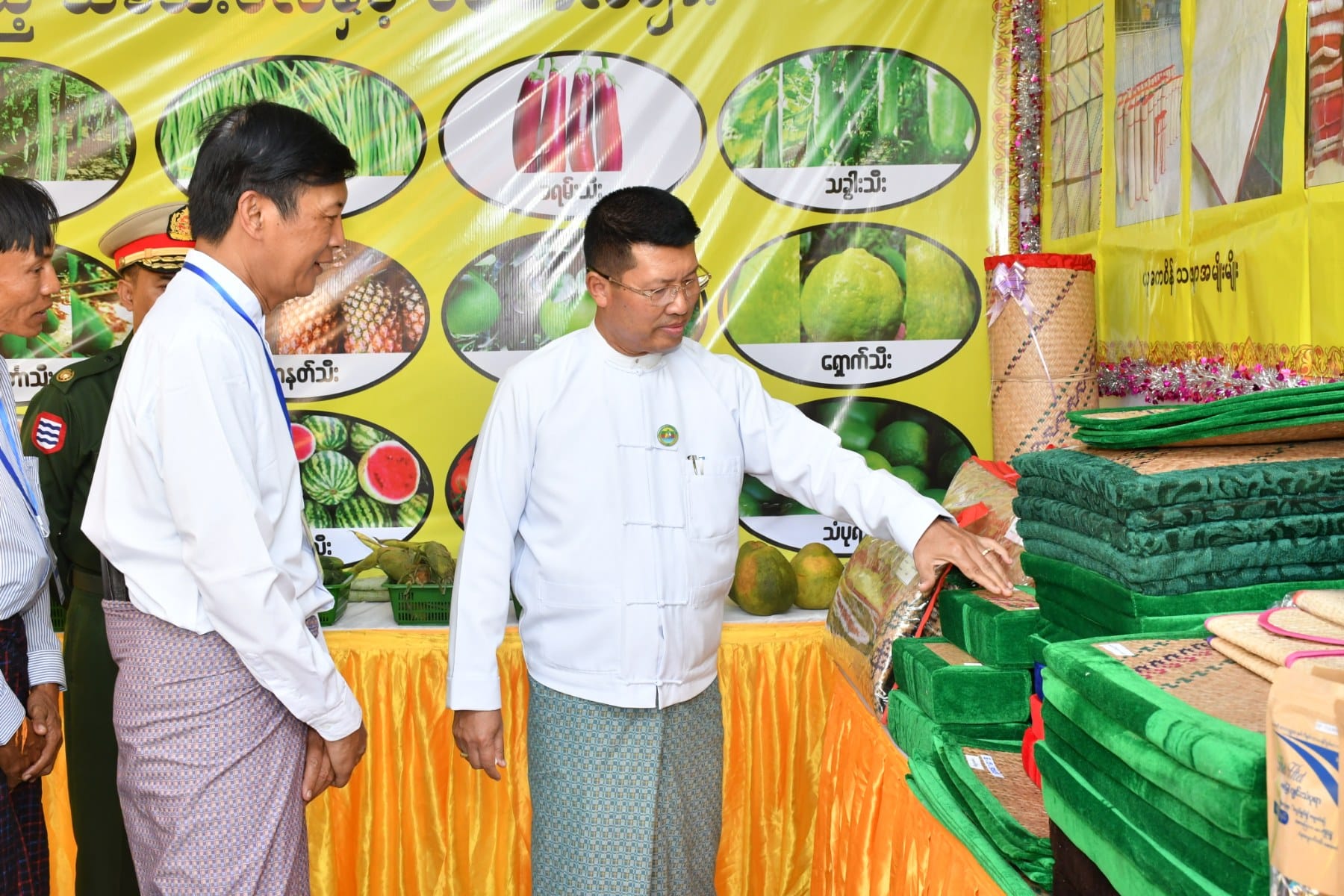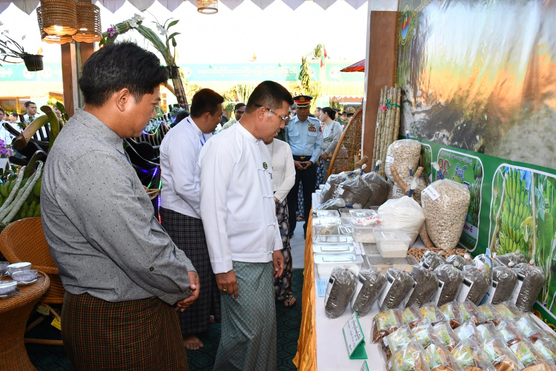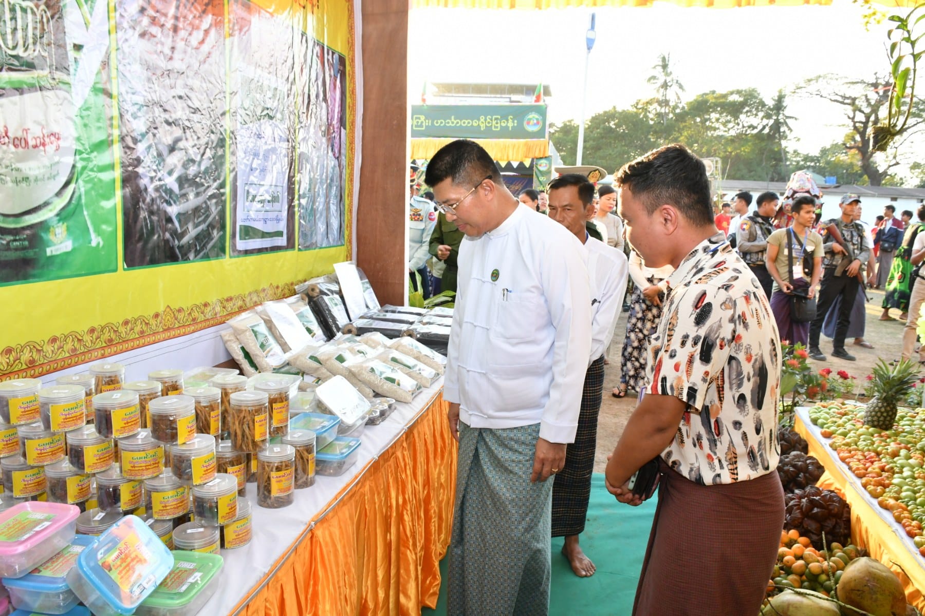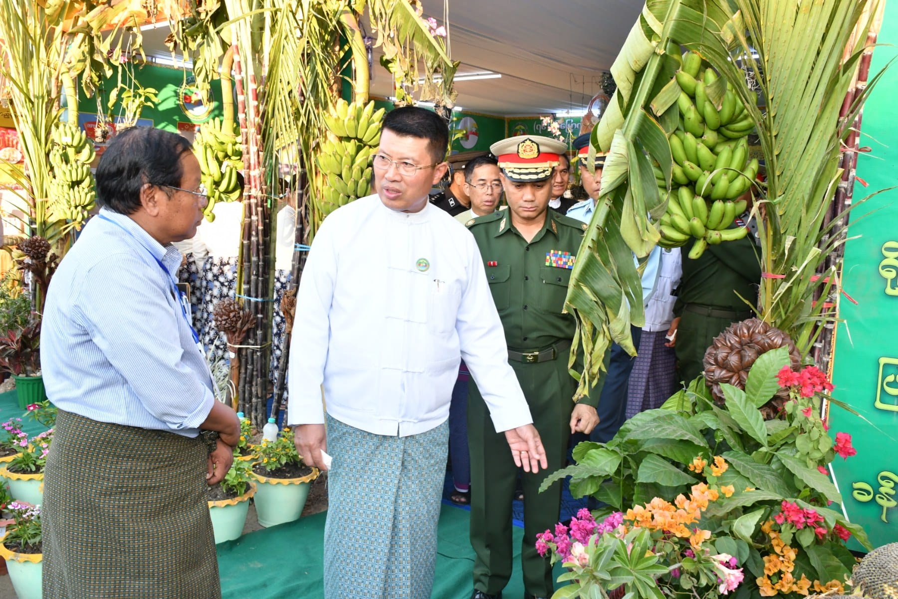 ဦးစွာ (၇၆)နှစ်မြောက် လွတ်လပ်ရေးနေ့အထိမ်းအမှတ် ပြခန်းများအား တိုင်းဒေသကြီးဝန်ကြီးချုပ်၊ အနောက်တောင်တိုင်းစစ်ဌာနချုပ်တိုင်းမှူးနှင့် လုံခြုံရေးနှင့် နယ်စပ်ရေးရာဝန်ကြီးတို့က ဖဲကြိုးဖြတ်ဖွင့်လှစ်ပေးပြီး စုပေါင်းမှတ်တမ်းတင်ဓာတ်ပုံများ ရိုက်ကူးခဲ့ကြသည်။ ယင်းနောက် ဝန်ကြီးချုပ်နှင့် ဧည့်သည်တော်များသည် ခရိုင်ရှစ်ခရိုင်မှ ခင်းကျင်းပြသထားသည့် သစ်သီးဝလံ၊ ပန်းမန်နှင့် MSME ဒေသထွက်ကုန်ပြခန်းများအား လှည့်လည်ကြည့်ရှုစစ်ဆေးခဲ့ပြီး ခရိုင်အလိုက် စိုက်ပျိုးမွေးမြူရေးကိုအခြေခံသည့် ဒေသထွက်ကုန်များပိုမိုထုတ်လုပ်စေရေး၊ စားသောက်ကုန်များကိုလည်း ပြည်တွင်းဈေးကွက်သာမက ပြည်ပစျေးကွက်များအထိ တင်ပို့ရောင်းချနိုင်စေရေး၊ ထုတ်ပိုးမှုပိုမိုသေသပ်ကောင်းမွန် စေရေးနှင့် ထုတ်လုပ်မှုစနစ်များအဆင့်မြှင့်တင်နိုင်ရေး ကြိုးစားဆောင်ရွက်ကြရန် မှာကြားခဲ့သည်။