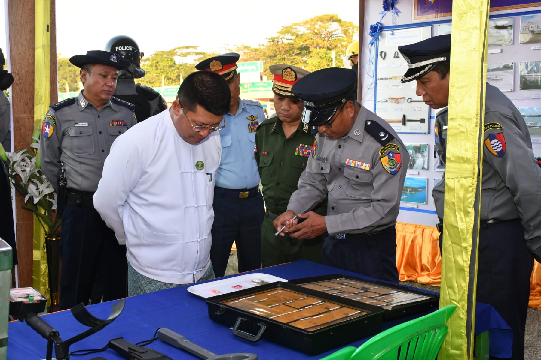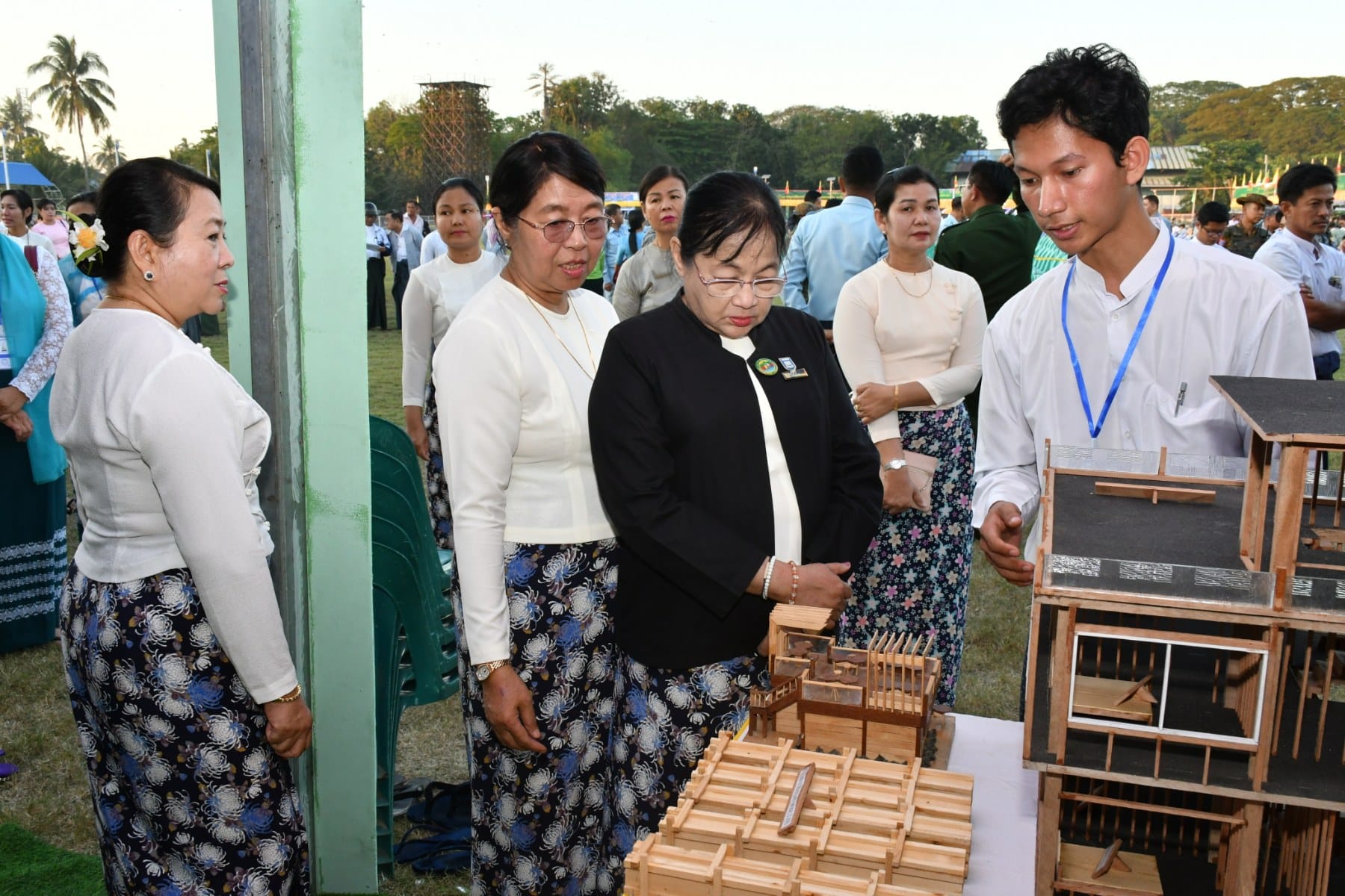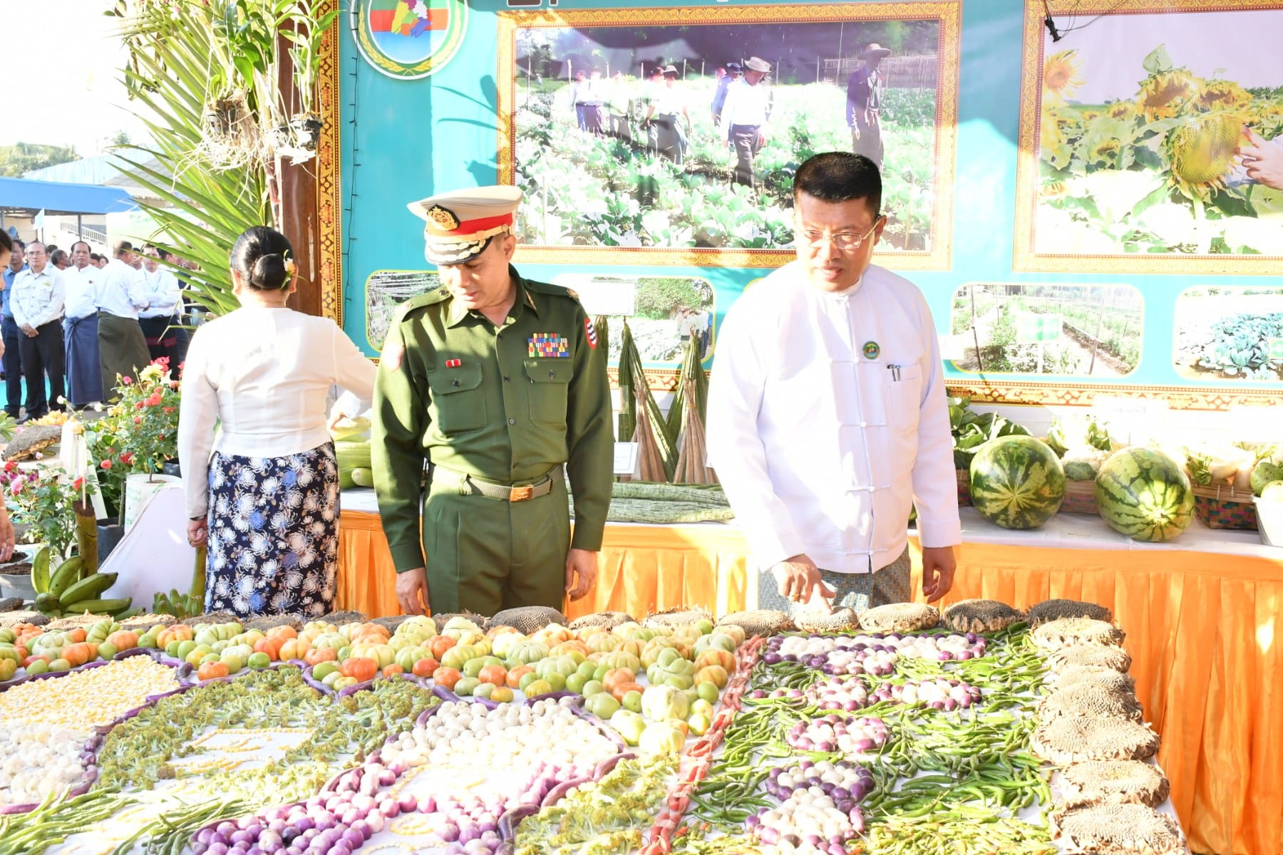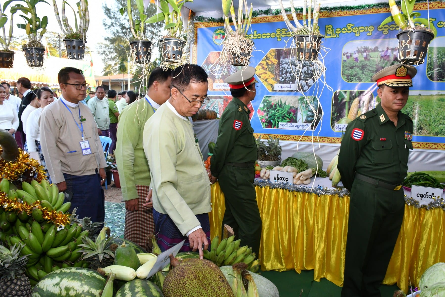 ဦးစွာ (၇၆)နှစ်မြောက် လွတ်လပ်ရေးနေ့အထိမ်းအမှတ် ပြခန်းများအား တိုင်းဒေသကြီးဝန်ကြီးချုပ်၊ အနောက်တောင်တိုင်းစစ်ဌာနချုပ်တိုင်းမှူးနှင့် လုံခြုံရေးနှင့် နယ်စပ်ရေးရာဝန်ကြီးတို့က ဖဲကြိုးဖြတ်ဖွင့်လှစ်ပေးပြီး စုပေါင်းမှတ်တမ်းတင်ဓာတ်ပုံများ ရိုက်ကူးခဲ့ကြသည်။ ယင်းနောက် ဝန်ကြီးချုပ်နှင့် ဧည့်သည်တော်များသည် ခရိုင်ရှစ်ခရိုင်မှ ခင်းကျင်းပြသထားသည့် သစ်သီးဝလံ၊ ပန်းမန်နှင့် MSME ဒေသထွက်ကုန်ပြခန်းများအား လှည့်လည်ကြည့်ရှုစစ်ဆေးခဲ့ပြီး ခရိုင်အလိုက် စိုက်ပျိုးမွေးမြူရေးကိုအခြေခံသည့် ဒေသထွက်ကုန်များပိုမိုထုတ်လုပ်စေရေး၊ စားသောက်ကုန်များကိုလည်း ပြည်တွင်းဈေးကွက်သာမက ပြည်ပစျေးကွက်များအထိ တင်ပို့ရောင်းချနိုင်စေရေး၊ ထုတ်ပိုးမှုပိုမိုသေသပ်ကောင်းမွန် စေရေးနှင့် ထုတ်လုပ်မှုစနစ်များအဆင့်မြှင့်တင်နိုင်ရေး ကြိုးစားဆောင်ရွက်ကြရန် မှာကြားခဲ့သည်။