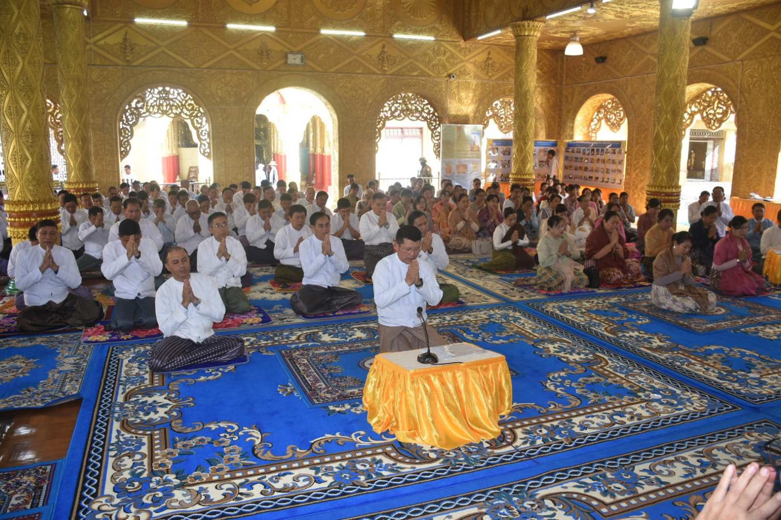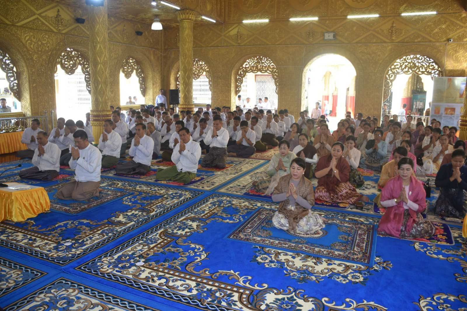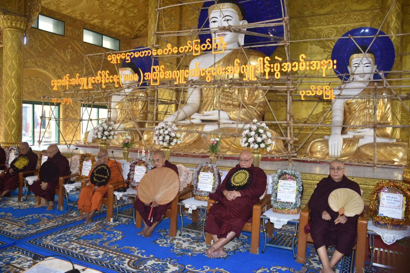 ဦးစွာ “နမောတဿ” သုံးကြိမ်ရွတ်ဆို ဘုရားကန်တော့၍ အခမ်းအနားအားဖွင့်လှစ်ခဲ့ပြီး နိုင်ငံတော်ဩဝါဒါစရိယ၊ ပုသိမ်မြို့၊ ညောင်ပင်သာပရိယတ္တိစာသင်တိုက် ဦးစီးပဓာနနာယက ဆရာတော် (အဘိဓဇမဟာရဋ္ဌဂုရု၊ အဘိဓဇအဂ္ဂမဟာသဒ္ဓမ္မဇောတိက၊ အဂ္ဂမဟာပဏ္ဍိတ) ဘဒ္ဒန္တဝိဿုတ မဟာထေရ်မြတ်ထံမှ ဧည့်ပရိသတ်များကငါးပါးသီလ ခံယူဆောက်တည်ခဲ့ကြပြီး တိုင်းဒေသကြီးဝန်ကြီးချုပ်က သာသနာရေးဆိုင်ရာကိစ္စများအား တင်ပြလျှောက်ထားခဲ့ပြီးနောက် တိုင်းဒေသကြီးဝန်ကြီးချုပ်နှင့်ဇနီး၊ အနောက်တောင်တိုင်းစစ်ဌာနချုပ် တိုင်းမှူးနှင့်ဇနီး၊ ပုသိမ်လေတပ်စခန်းဌာနချုပ်မှူးနှင့် ဇနီး၊ အစိုးရအဖွဲ့ဝင် ဝန်ကြီးများက ဆရာတော်သံဃာတော် အရှင်သူမြတ်မျာအား လှူဖွယ်ဝတ္ထုပစ္စည်းများ ဆက်ကပ်လှူဒါန်းခဲ့သည်။