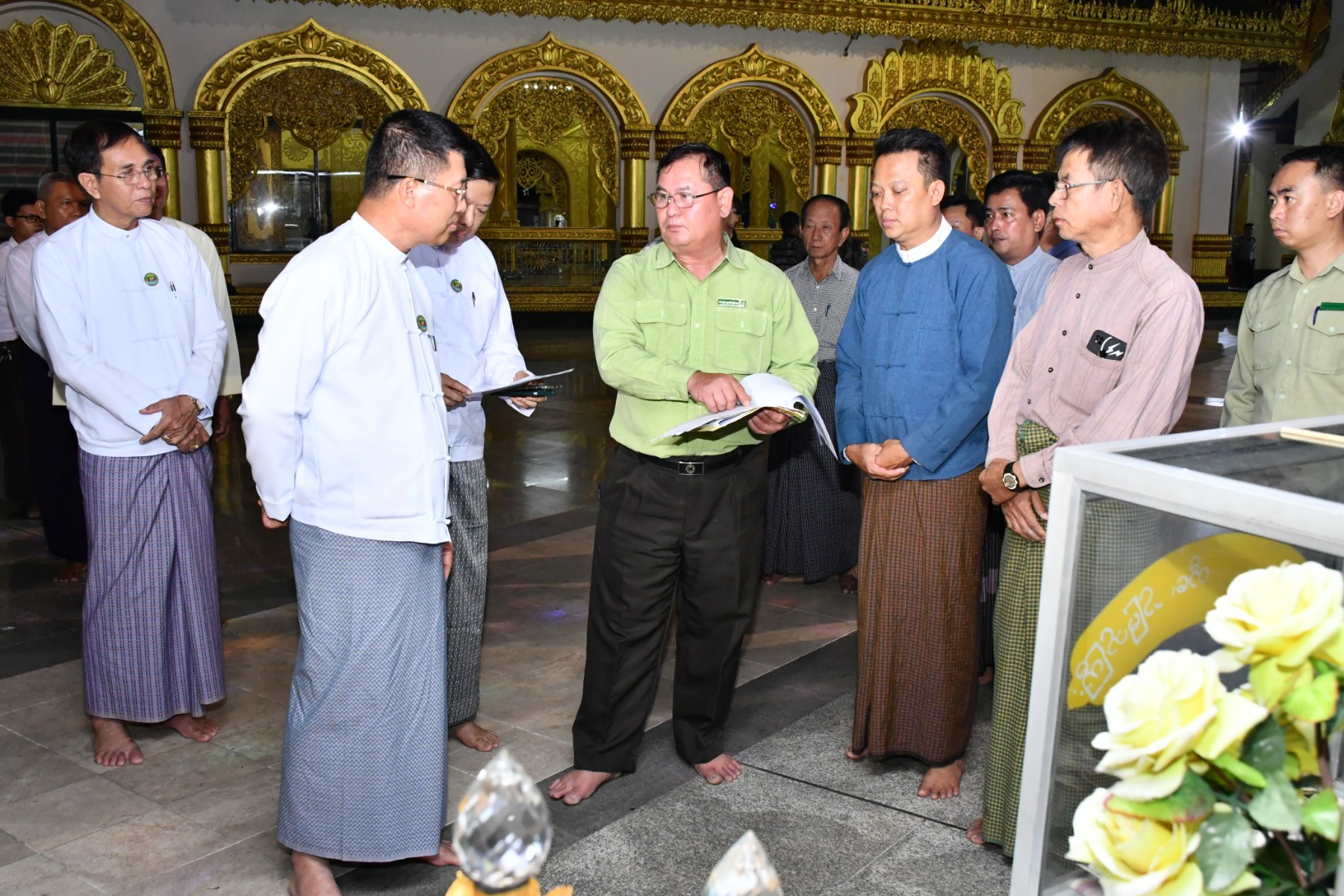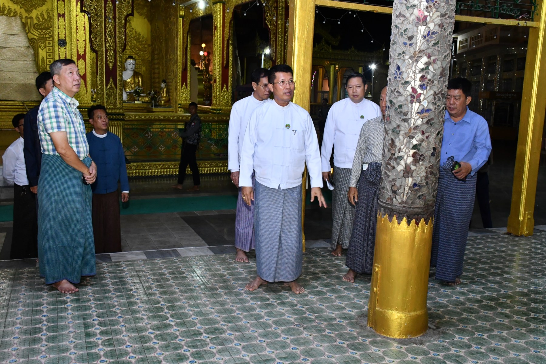ဧရာဝတီတိုင်းဒေသကြီးဝန်ကြီးချုပ် ဦးတင်မောင်ဝင်းသည် အစိုးရအဖွဲ့ဝင် ဝန်ကြီးများ၊ တိုင်း ခရိုင်၊ မြို့နယ်ဌာနဆိုင်ရာများနှင့်အတူ ဇန်နဝါရီလ ၂၆ရက်နေ့ ညနေပိုင်းတွင် ပုသိမ်မြို့ကျက်သရေဆောင် သမိုင်းဝင် ရွှေမုဌောမဟာစေတီတော်မြတ်ကြီးနှင့် အရံစေတီတော်များ၊ ဆင်းတုတော်များ လုံးတော်ပြည့်ရွှေသင်္ကန်းကပ်လှူနိုင်ရေး ပြင်ဆင်ဆောင်ရွက်နေမှုများအား ကြည့်ရှုစစ်ဆေးခဲ့သည်။