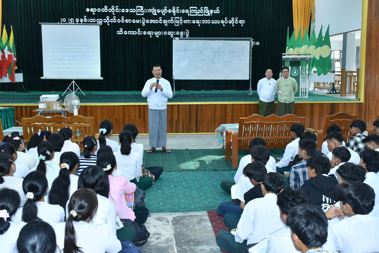 ဆက်လက်၍ တိုင်းဒေသကြီးဝန်ကြီးချုပ်နှင့်အဖွဲ့သည် ကျုံပျော်မြို့အမှတ်(၁)အခြေခံပညာအထက်တန်း ကျောင်းတွင် တက္ကသိုလ်ဝင်စာမေးပွဲအောင်ချက်မြင့်မားရေး ဘာသာရပ်ဆိုင်ရာသိကောင်းစရာများအား ပုသိမ်တက္ကသိုလ်မှ ပါမောက္ခများကဓာတုဗေဒ၊ ရူပဗေဒနှင့် ဇီဝဗေဒဘာသာရပ်များသင်ကြားပို့ချနေမှုများကို သွားရောက်ကြည့်ရှုအားပေးခဲ့ပြီး တက္ကသိုလ်ဝင်စာမေးပွဲဖြေဆိုမည့် ကျောင်းသား၊ ကျောင်းသူများအတွက် များစွာအထောက်အကူပြုမည်ဖြစ်သဖြင့် အလေးထား လိုက်နာဆောင်ရွက်ရန် ဆွေးနွေးပေးသည့်ဘာသာရပ်များအလိုက် မရှင်းလင်းသည်များအားကောင်းမွန်စွာသ ေဘာပေါက်နားလည်စေရေး မေးမြန်းဆွေးနွေးကြရန်နှင့် တက္ကသိုလ်ဝင်စာမေးပွဲ အောင်ချက်မြင့်မားရေးအတွက် တိုင်းဒေသကြီး၊ ခရိုင်၊ မြို့နယ်ပညာ ရေးမှူးများ၊ အုပ်ချုပ်ရေးအဖွဲ့များ၊ ဆရာ၊ ဆရာမများ၊ မိဘများပူးပေါင်း၍ ဝိုင်းဝန်းဆောင်ရွက်စေရေးတို့ကိုမှာကြားခဲ့ပြီး ချီးမြှင့်ငွေများပေးအပ်ခဲ့သည်။ ထို့အတူ ရေကြည်မြို့၊ အခြေခံပညာအထက်တန်းကျောင်း၊ တေဇာသီရိခန်းမတွင် အင်္ဂလိပ်စာဘာသာရပ်သင်ကြားပို့ချနေမှုများအား သွားရောက်ကြည့်ရှုအားပေးခဲ့ပြီး ဆွေးနွေးပေးသည့်ဘာသာရပ်များအား သေချာစွာမှတ်သားလိုက်နာဆောင်ရွက်ရန်၊ မရှင်းလင်းသည်များအားကောင်းမွန်စွာသဘောပေါက်နားလည်စေရေး မေးမြန်းဆွေးနွေးကြရန်နှင့် တက္ကသိုလ်ဝင်စာမေးပွဲ အောင်မြင်စွာ ဖြေဆိုနိုင်စေရေး ကြိုးစားဆောင်ရွက်ရန်မှာကြားခဲ့ပြီး ချီးမြှင့်ငွေများပေးအပ်ခဲ့သည်။ ၂၀၂၅ခုနှစ်၊ တက္ကသိုလ်ဝင်စာမေးပွဲ အောင်ချက်မြင့်မားရေးအတွက် ဆွေးနွေးပို့ချခြင်း များကို ပုသိမ်တက္ကသိုလ်၊ ဟင်္သာတတက္ကသိုလ်၊ မအူပင်ပင်တက္ကသိုလ်များမှ ဆရာ၊ ဆရာမ များက တိုင်းဒေသကြီးအတွင်းရှိ မြို့နယ်(၂၆)မြို့နယ်၌ ဇန်နဝါရီလ(၂၁)ရက်နေ့မှ စတင်၍ ဖေဖော်ဝါရီလ (၇ ) ရက်နေ့အထိ ပို့ချသွားမည်ဖြစ်ကြောင်းသိရသည်။ ဆက်လက်၍ တိုင်းဒေသကြီး ဝန်ကြီးချုပ်နှင့်အဖွဲ့သည် သာပေါင်းမြို့နယ်၊ ဂုန်မင်းကျေးရွာရှိ တောင်သူ ဦးတေဇာ၏ လယ်မြေတွင် ရေကျနောက်စိုက် GW-11 မျိုးစပါး ပထမသီးနှံစိုက်ပျိုးထားရှိမှုနှင့် ဂုန်မင်းကွင်း မြောင်းမကြီးနှင့်လက်တန်မြောင်းများအား နှစ်အလိုက်လျာထားတူးဖော်ပေးသဖြင့်ဒုတိယသီးနှံ နွေစပါးများ စိုက်ပျိုးဖြစ်ထွန်းအောင်မြင်နေသည်များကိုကြည့်ရှုအားပေးခဲ့ပြီး စိုက်ပျိုးရေများလုံလောက်စွာရရှိပြီဖြစ်၍ ဒုတိယသီးနှံများပိုမိုတိုးတက်စိုက်ပျိုးရန်၊ မြောင်ဘေးတာ ဘောင်များတွင်သီးနှံများစိုက်ပျိုးကြရန်၊ တစ်နိုင်တစ်ပိုင် ဘဲမွေးမြူရေးလုပ်ငန်းများဆောင်ရွက်ကြရန်နှင့် သီးထပ်စွမ်းအားများတိုးတက်စိုက်ပျိုးနိုင်ရေးဆောင်ရွက်ကြရန်မှာကြ