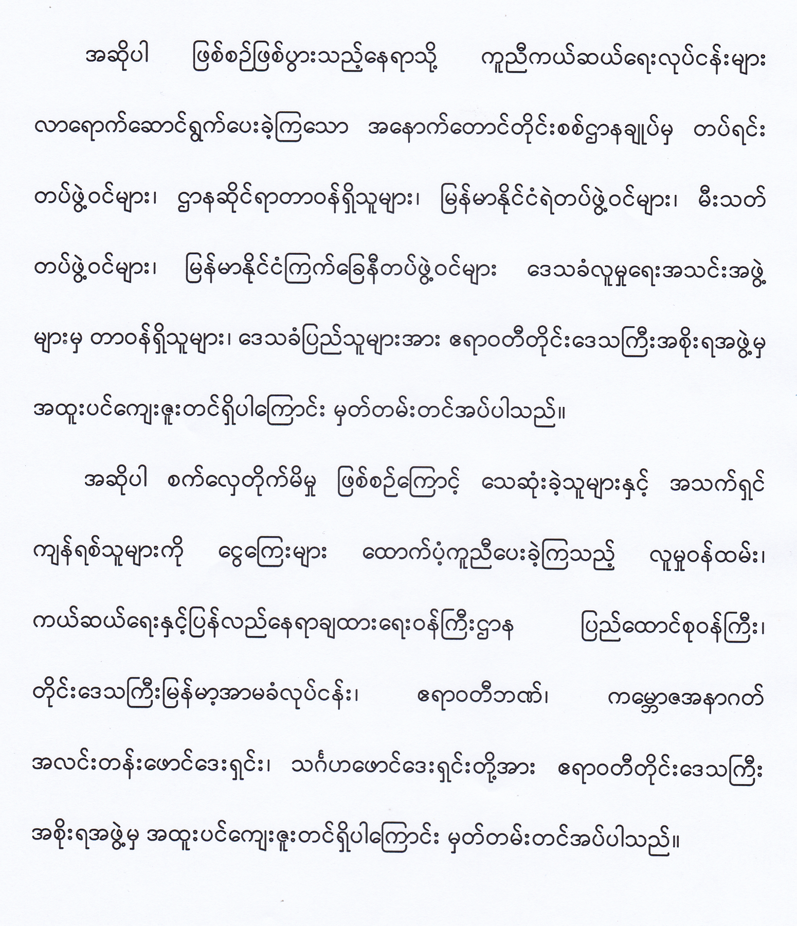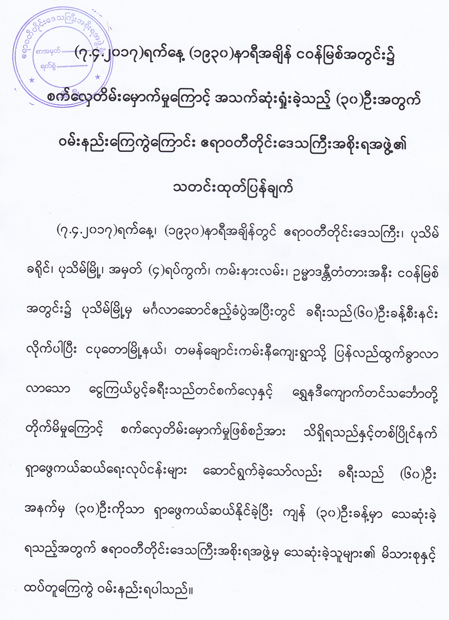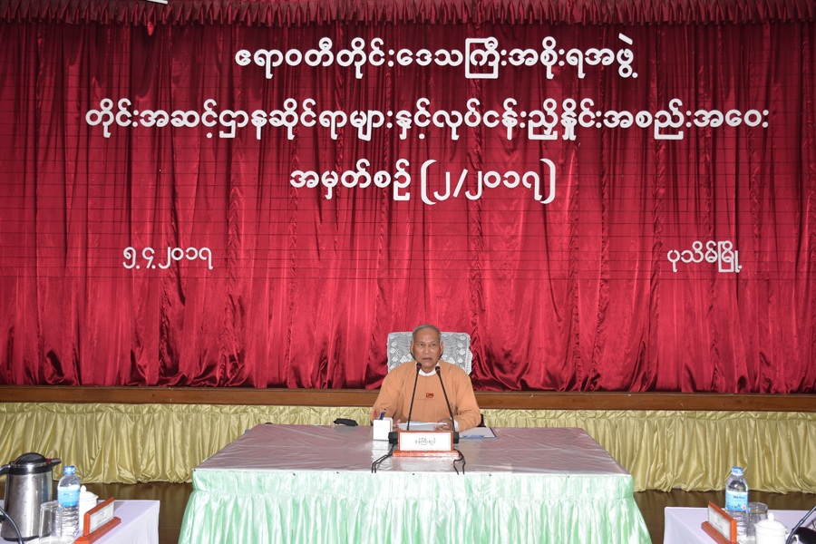 ဧရာဝတီတိုင်းဒေသကြီးအစိုးရအဖွဲ့ အတွင်းရေးမှူး ဦးသန်းဆွေဝင်းသည် အခြေခံအိမ်တွင်းမှုသင်တန်းအမှတ်စဉ် (၃)နှင့် အဆင့်မြင့်စက်ချုပ်သင်တန်း အမှတ်စဉ် (၂)သင်တန်းဆင်းပွဲ အခမ်းအနားတက်ရောက်