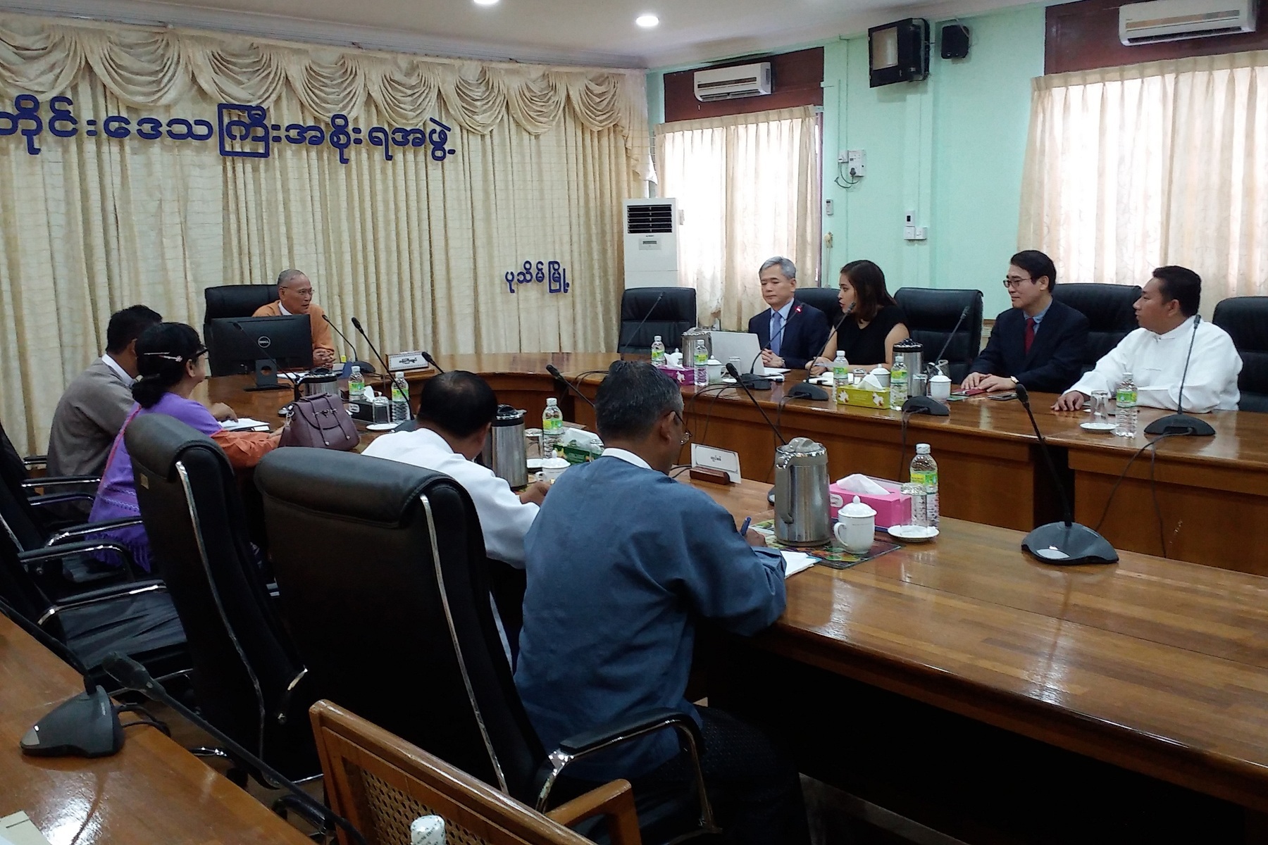 ဧရာဝတီတိုင်းဒေသကြီးအစိုးရအဖွဲ့ဝင် လျှပ်စစ်၊ စွမ်းအင်၊ စက်မှုလက်မှုနှင့်လမ်းပန်းဆက်သွယ်ရေးဝန်ကြီး ဦးဝင်းဌေးသည် Fujita Co.,Ltd မှတာဝန်ရှိသူများအား လက်ခံတွေ့ဆုံ