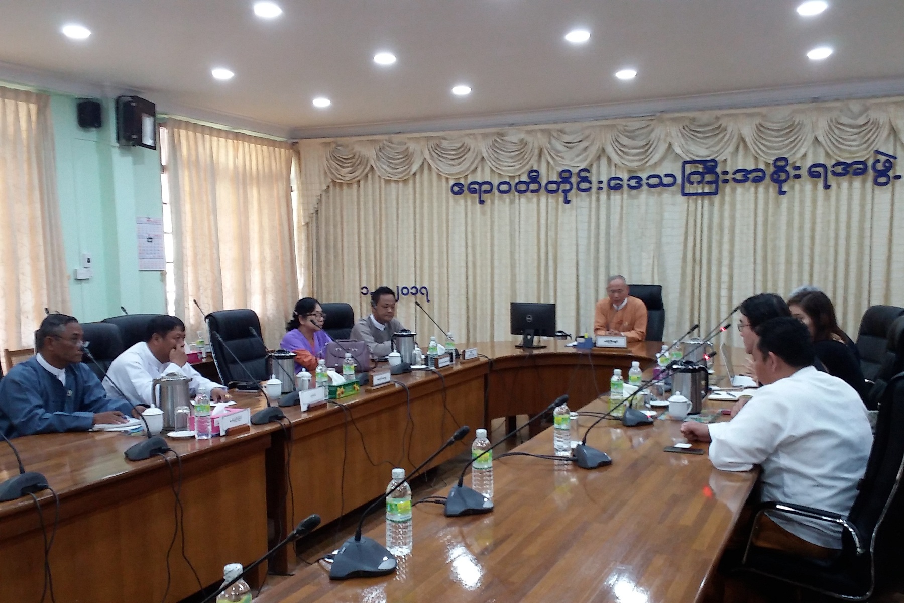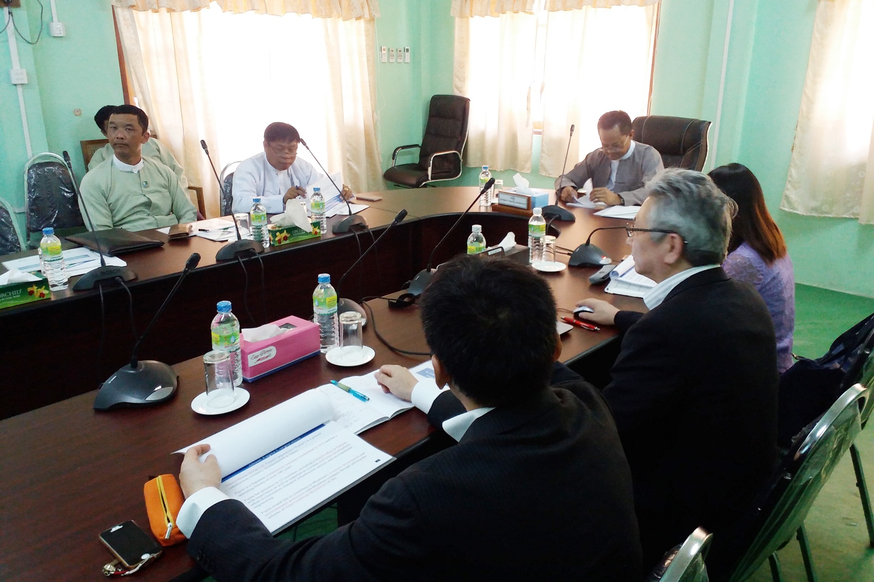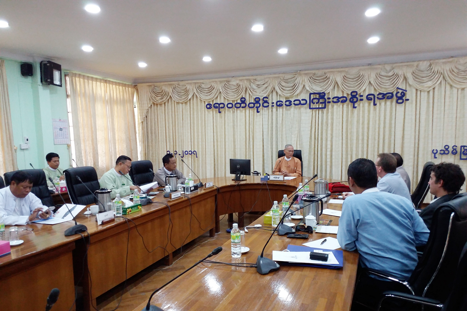 ဧရာဝတီတိုင်းဒေသကြီးအစိုးရအဖွဲ့ဝင် လျှပ်စစ်၊ စွမ်းအင်၊ စက်မှုလက်မှုနှင့်လမ်းပန်းဆက်သွယ်ရေးဝန်ကြီး ဦးဝင်းဌေးသည် (၁.၃.၂၀၁၇)ရက်နေ့တွင် တိုင်းဒေသကြီးအဆင့် တာဝန်ရှိဌာနဆိုင်ရာများနှင့်အတူ ဧရာဝတီတိုင်းဒေသကြီးအစိုးရအဖွဲ့ရုံး အစည်းအဝေးခန်းမ (၂)၌ Fujita Co.,Ltd တာဝန်ရှိသူများအား စပါးခွံမှ လျှပ်စစ်ဓာတ်အားစက်ရုံတည်ဆောက်ရန်ကိစ္စနှင့်ပတ်သက်၍ လာရောက်ဆွေးနွေးမှုအား လက်ခံတွေ့ဆုံခဲ့ပါသည်။